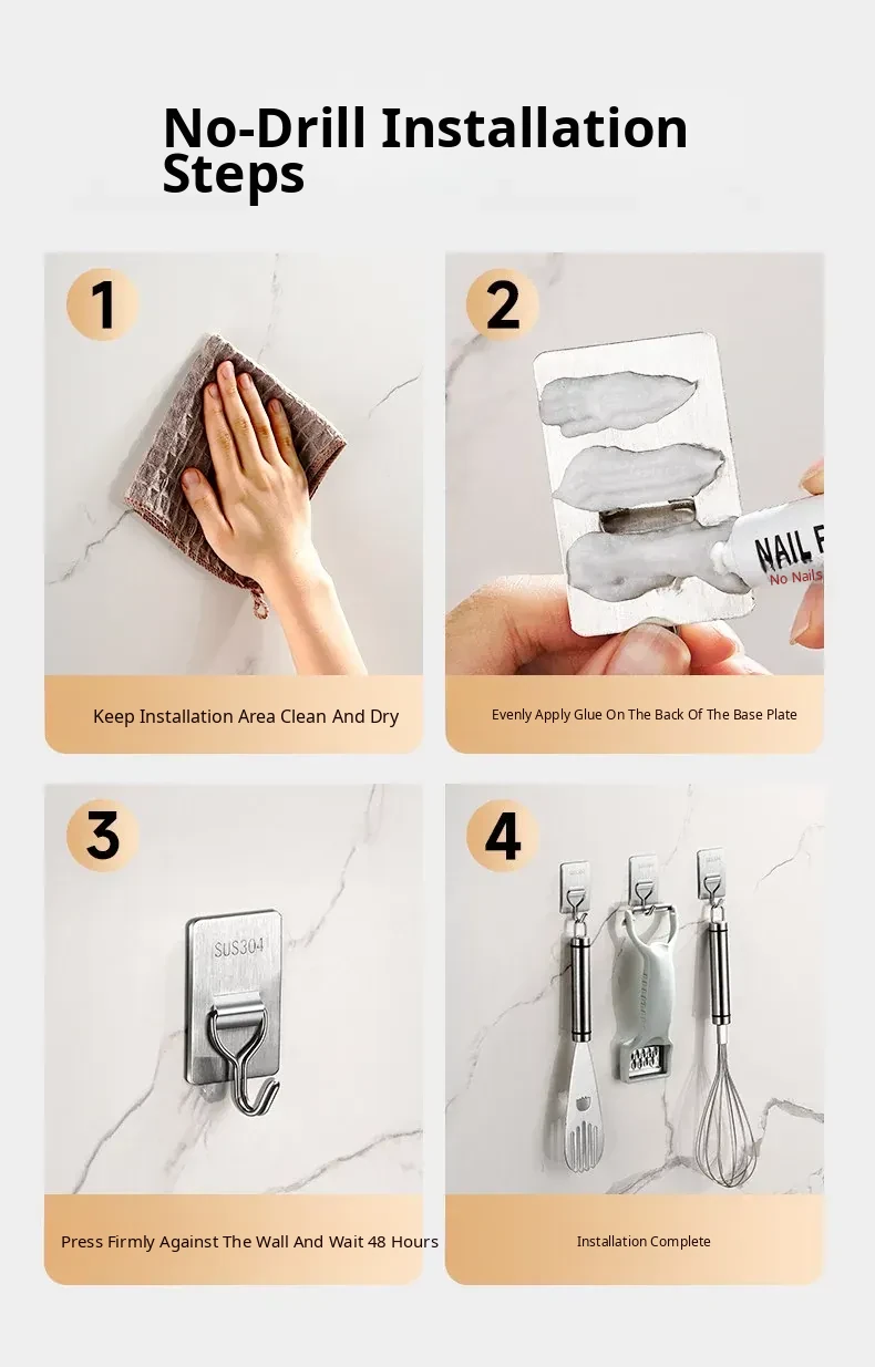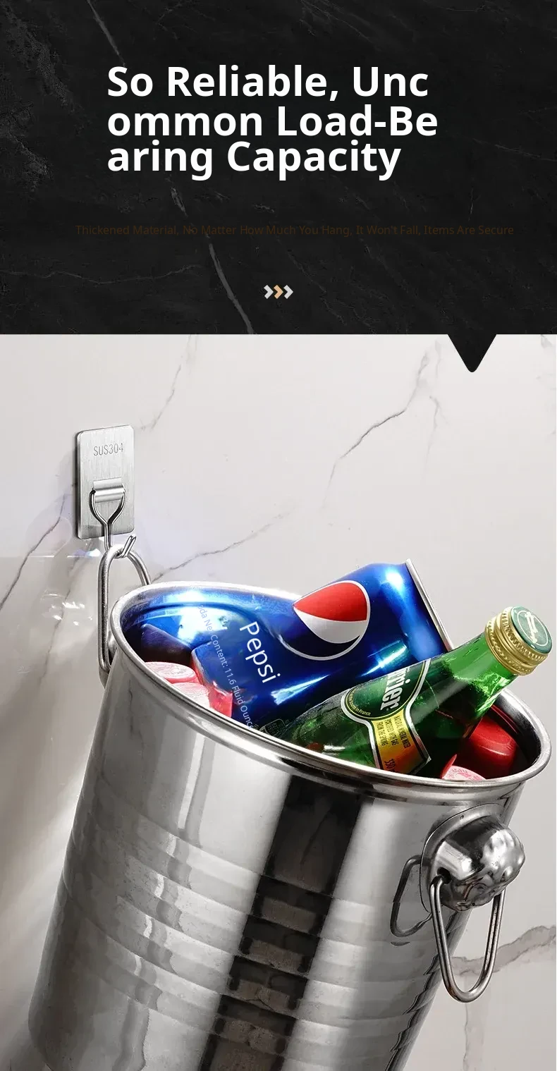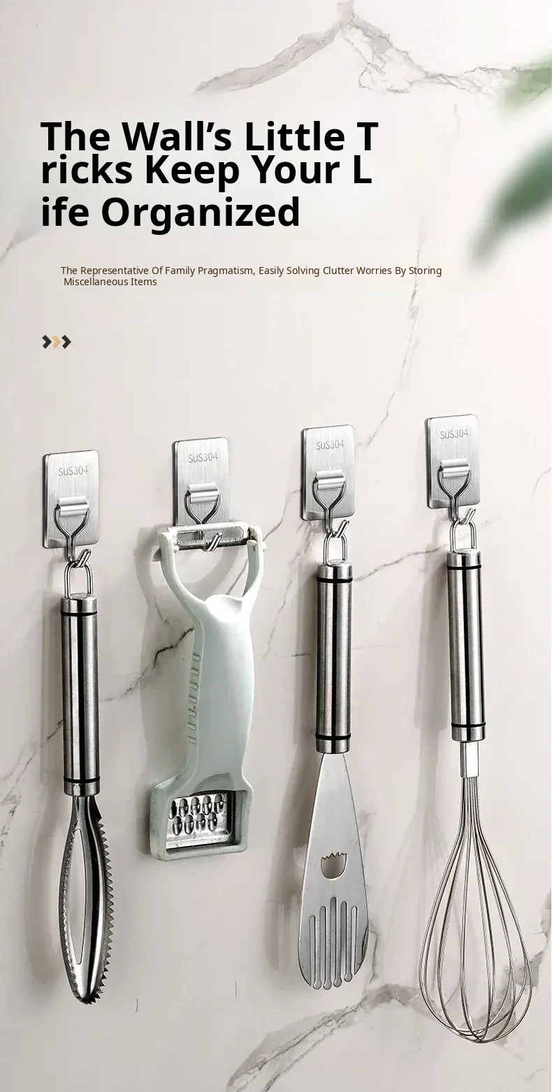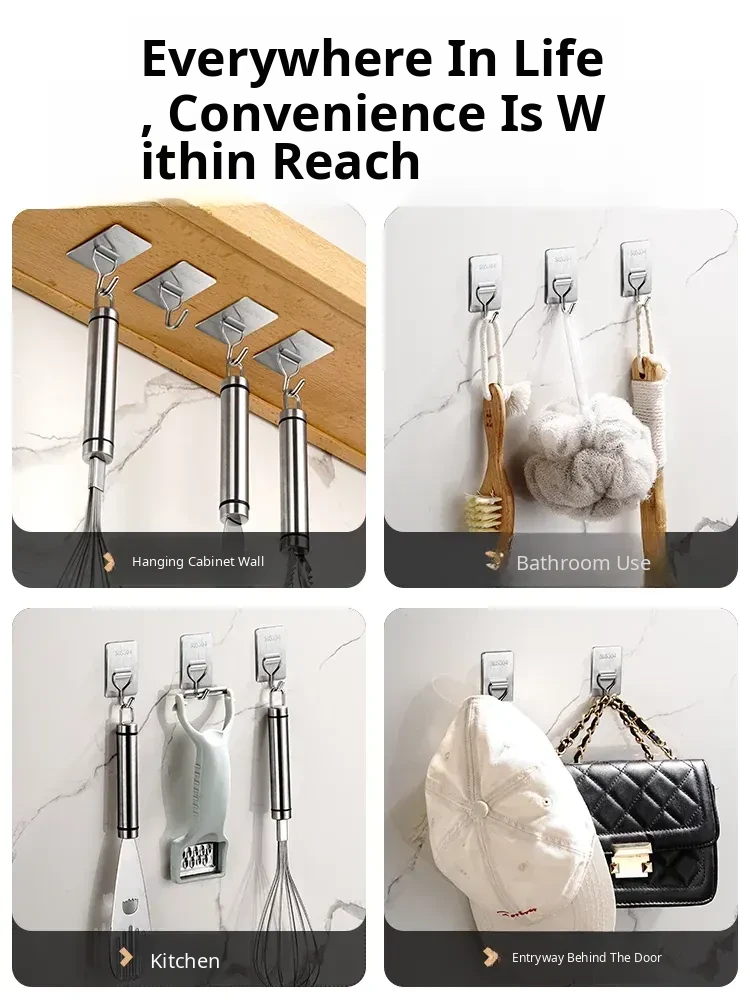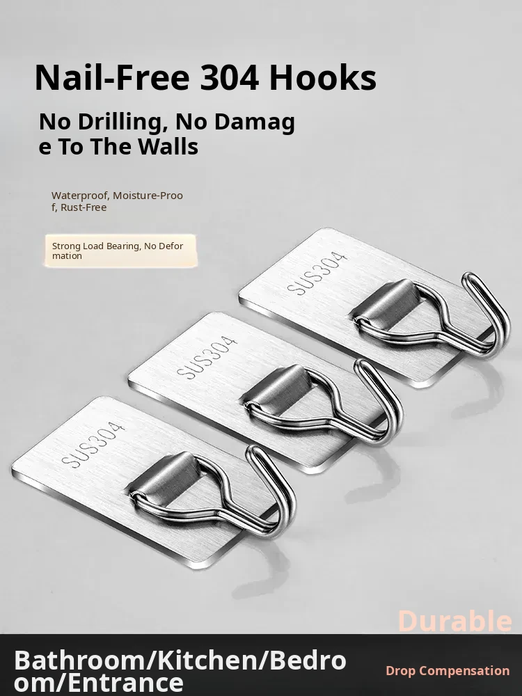 Heavy-Duty No-Drill Stainless Steel Adhesive Hooks - Strong, Damage-Free, Perfect for Kitchen Doors, Bathroom Walls, and Dorm Rooms