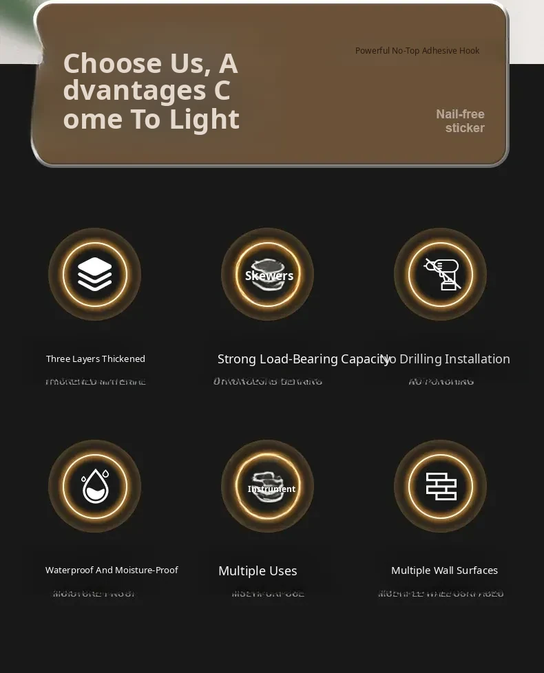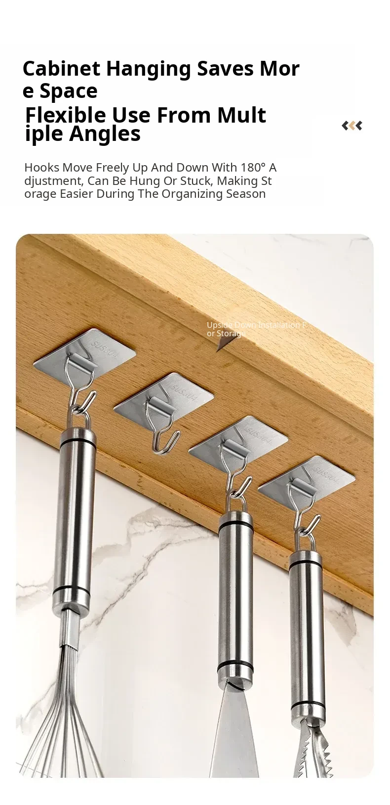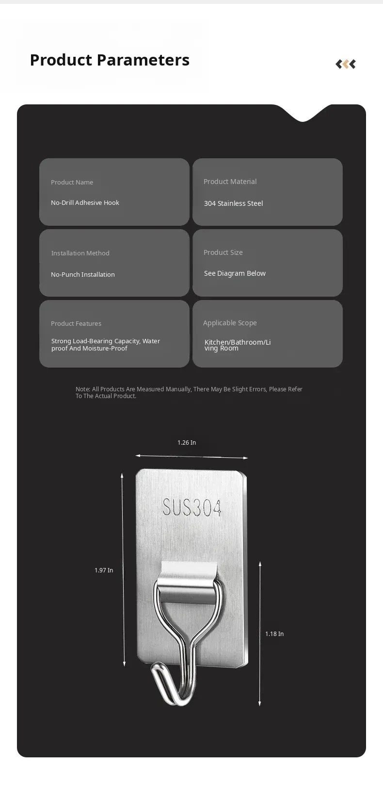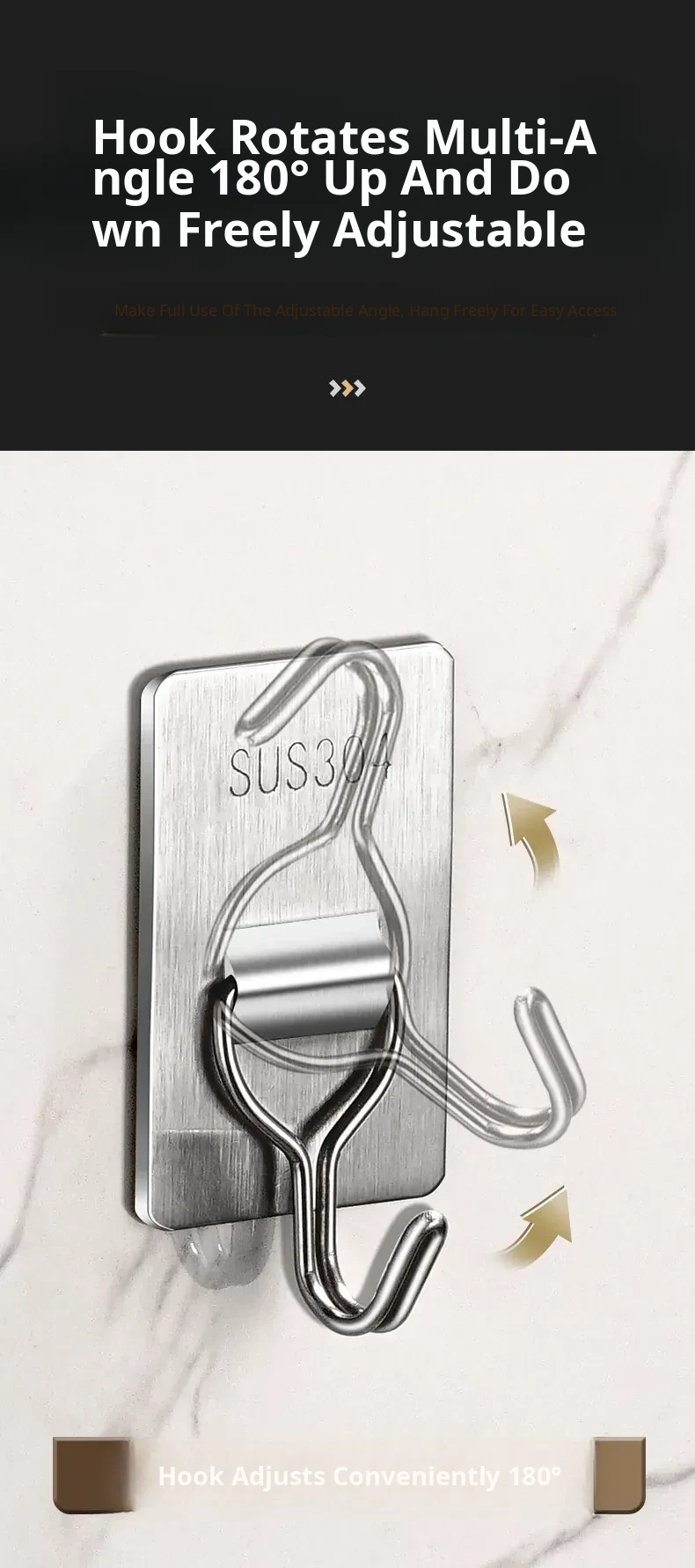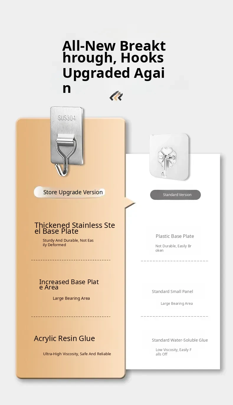 Heavy-Duty No-Drill Stainless Steel Adhesive Hooks - Strong, Damage-Free, Perfect for Kitchen Doors, Bathroom Walls, and Dorm Rooms
