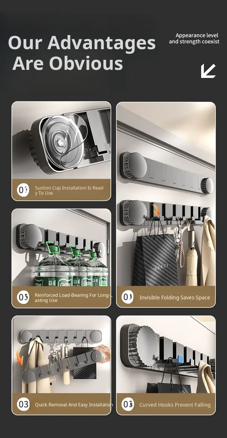Heavy-Duty Suction Cup Hooks for Bathroom - No Drill Adhesive Wall Storage Rack for Towels and Clothes - Perfect for Entryway Organization