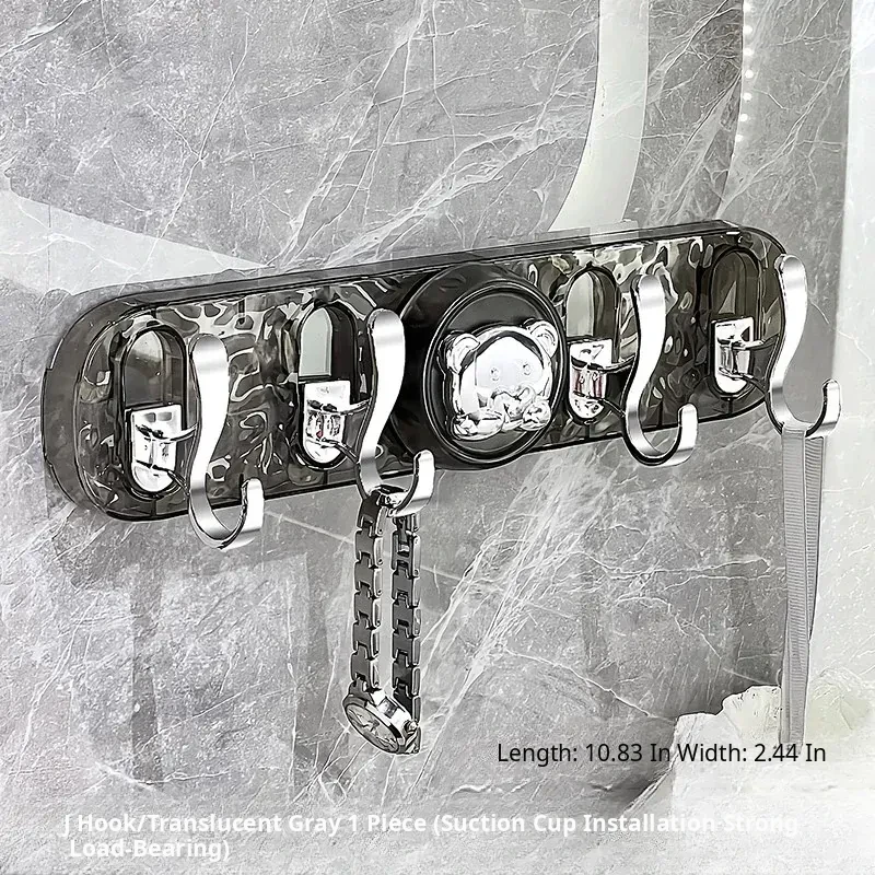 Transparent Gray-Suction Cup J-Shaped Hook [1 Pack]