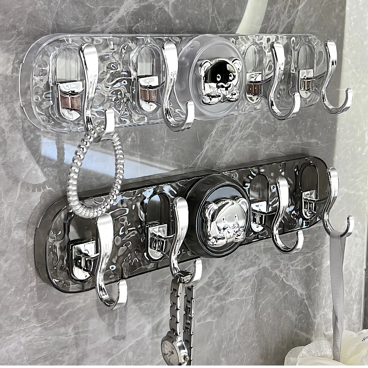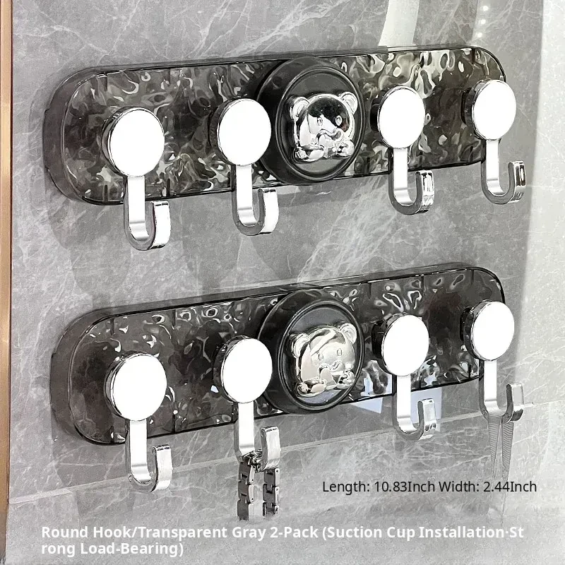 Transparent Gray-Suction Cup High and Low Hooks [2 Pack]