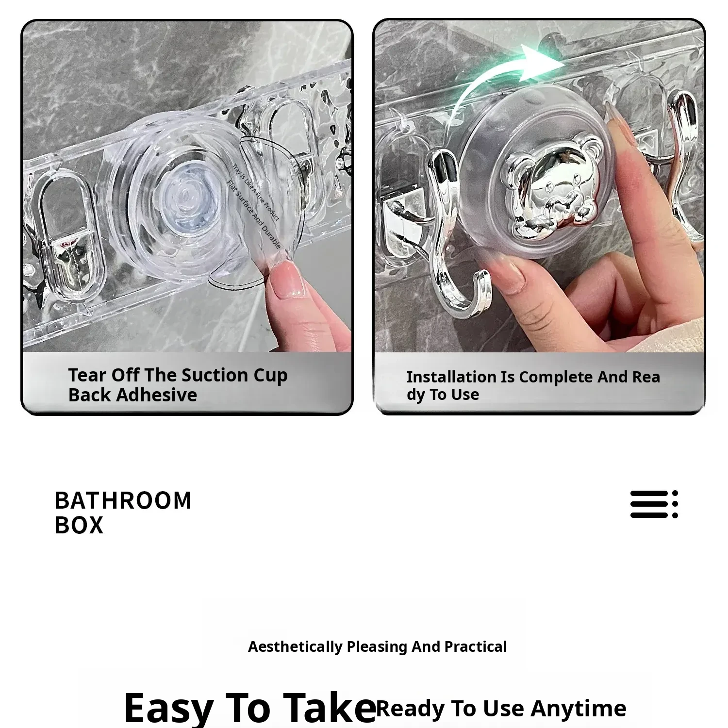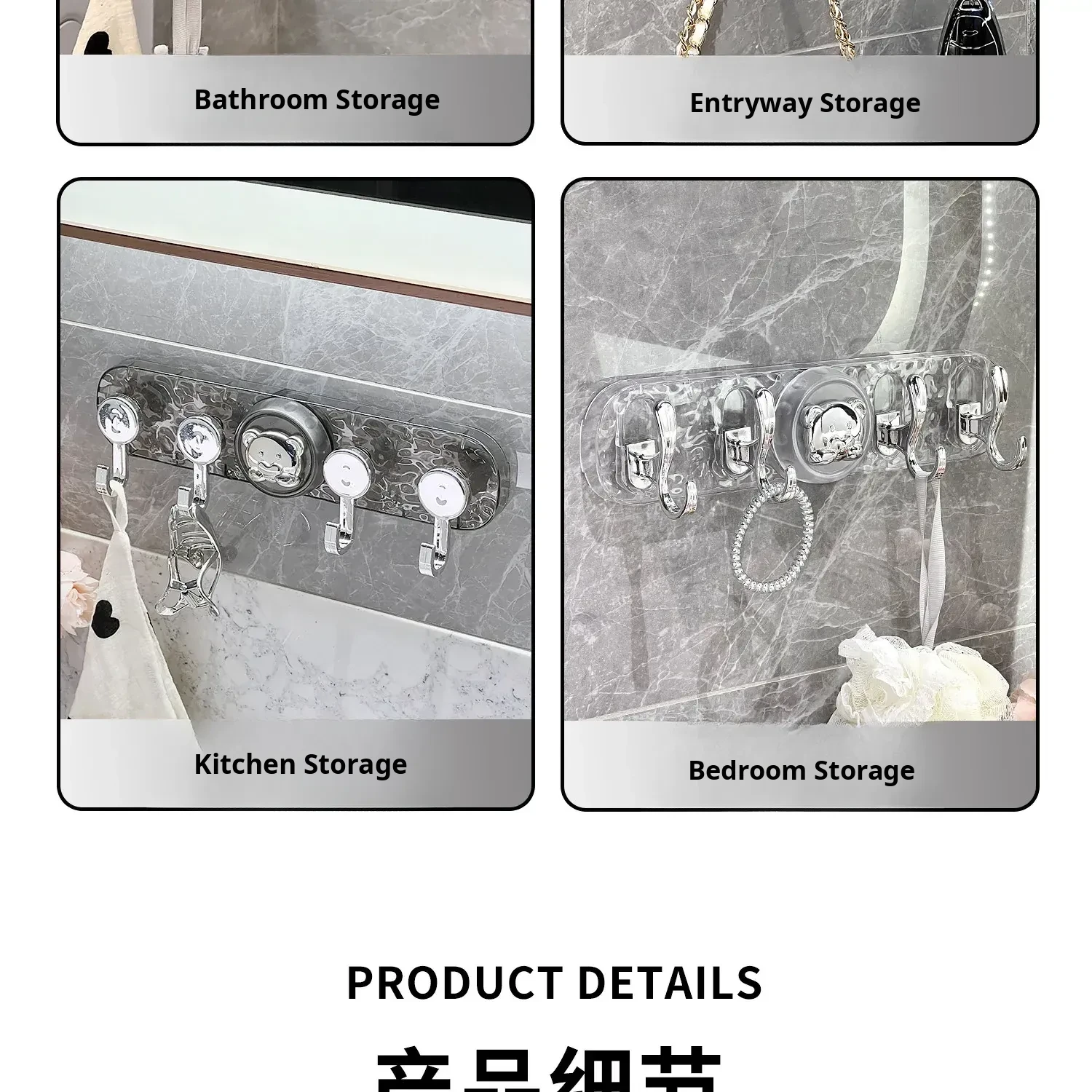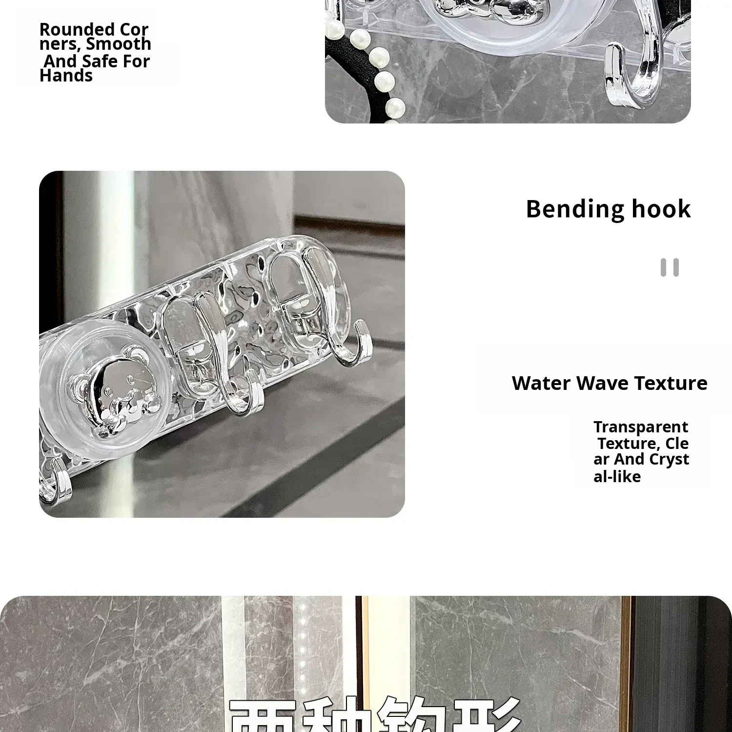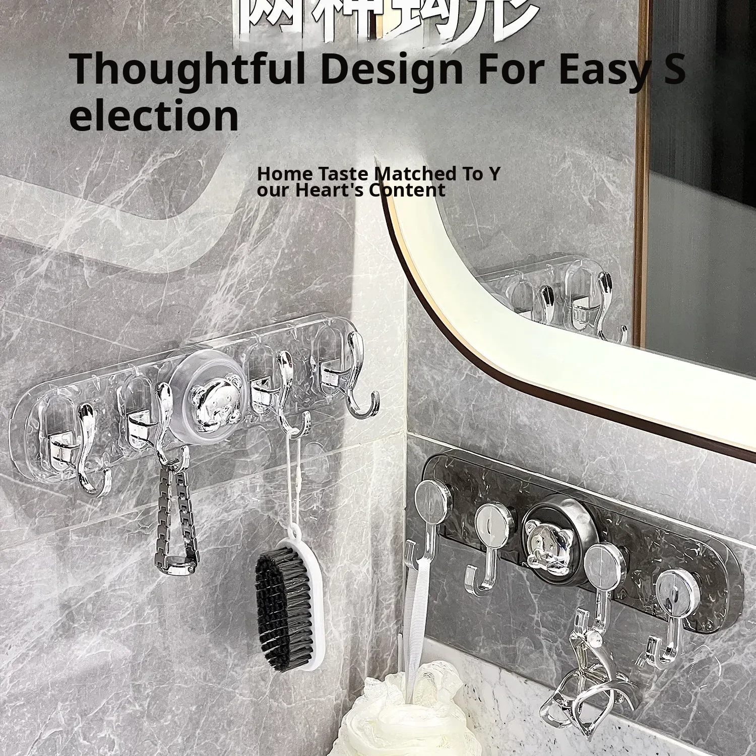 Transparent Color-Suction Cup High and Low Hook [2 Pack]