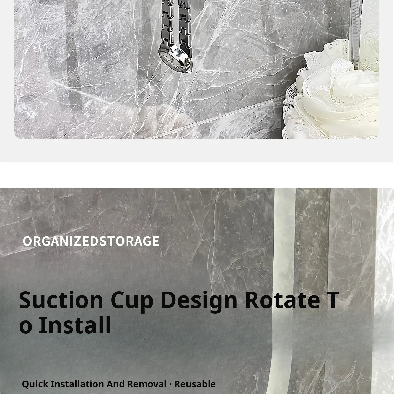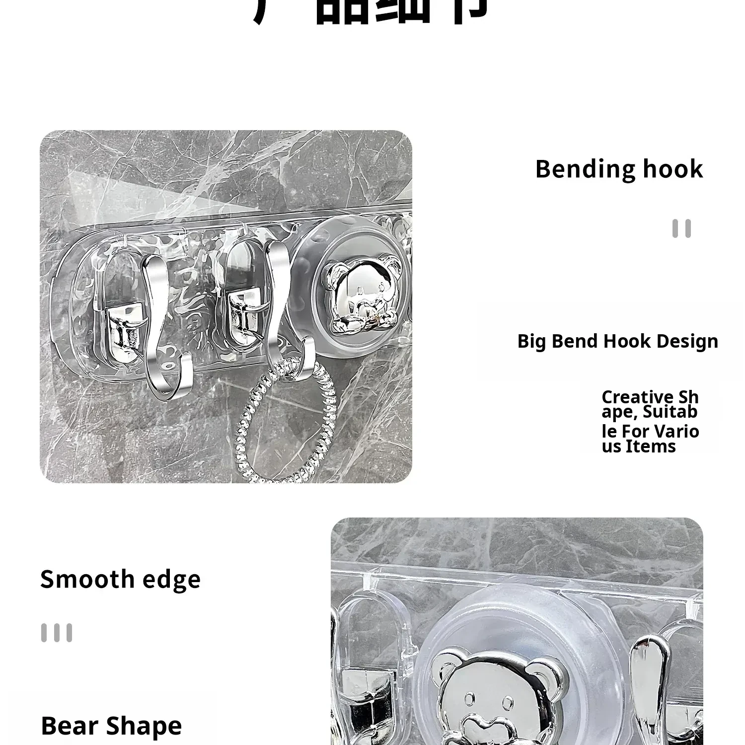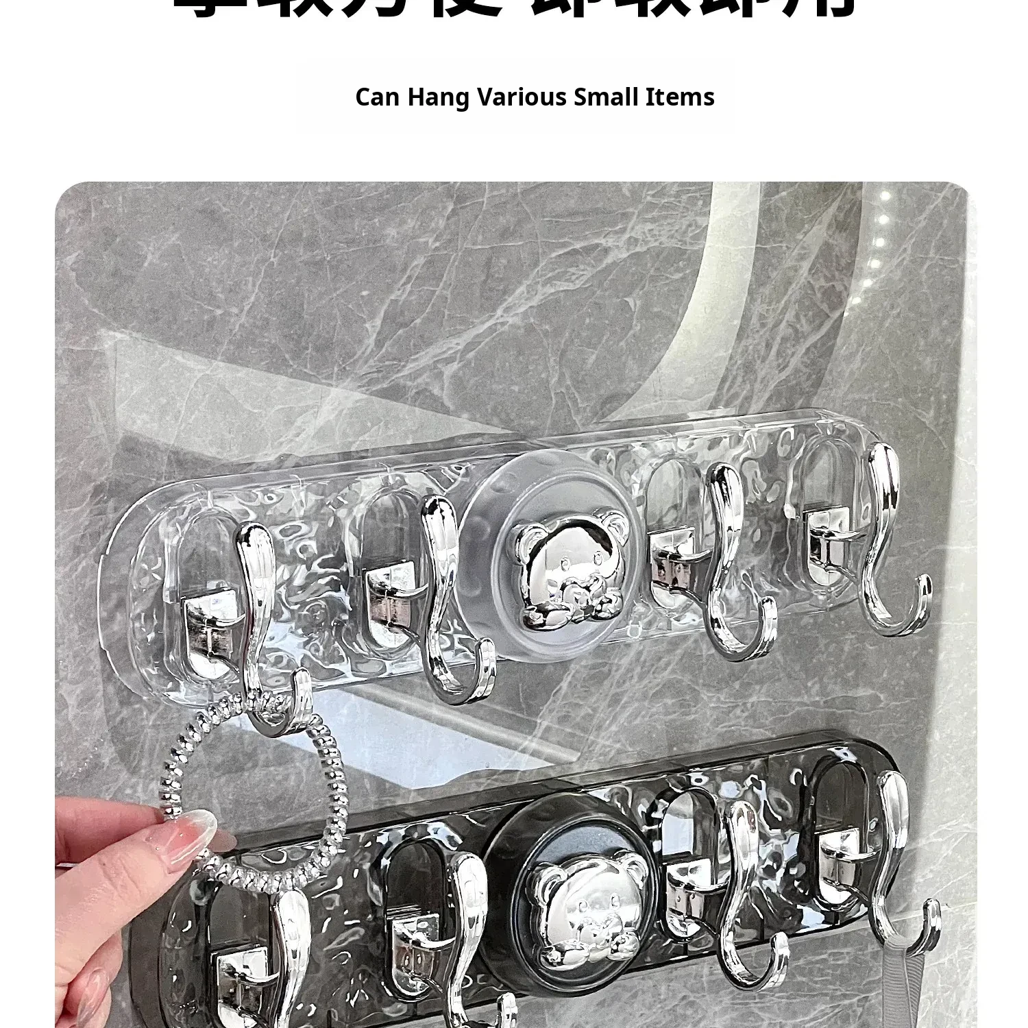 Transparent Gray-Suction Cup High and Low Hook [1 Pack]