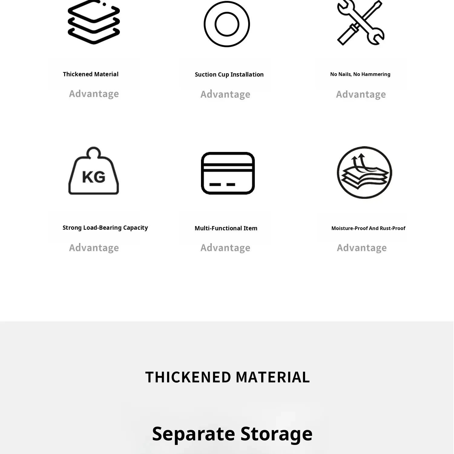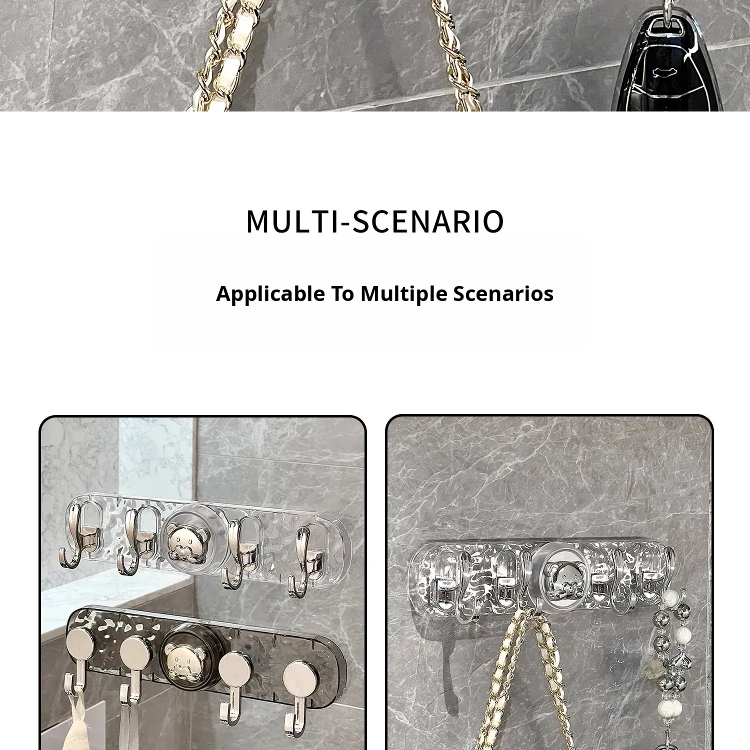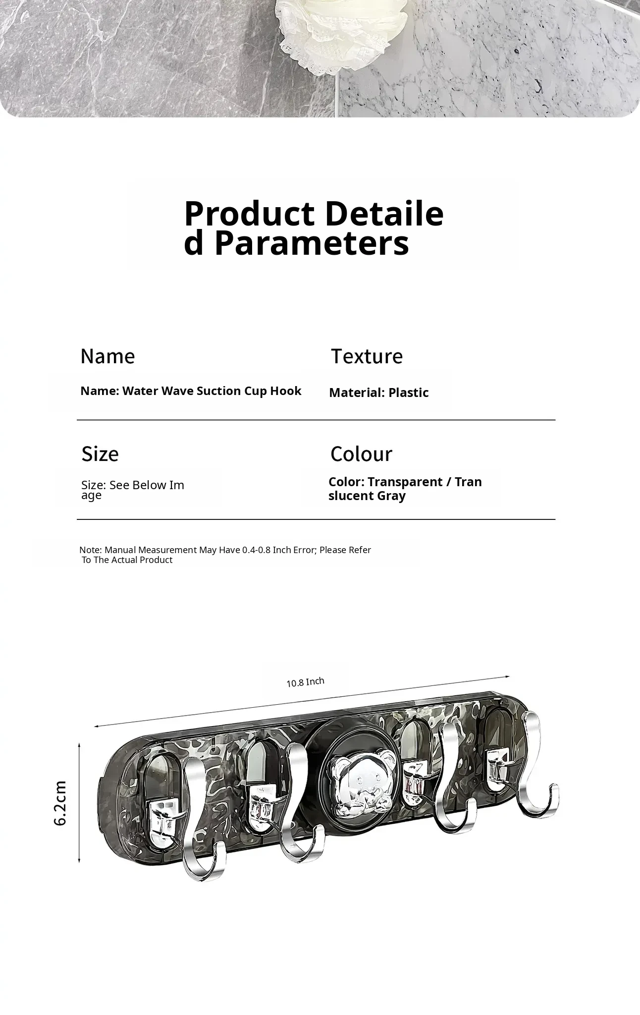 Transparent Gray-Suction Cup High and Low Hook [1 Pack]