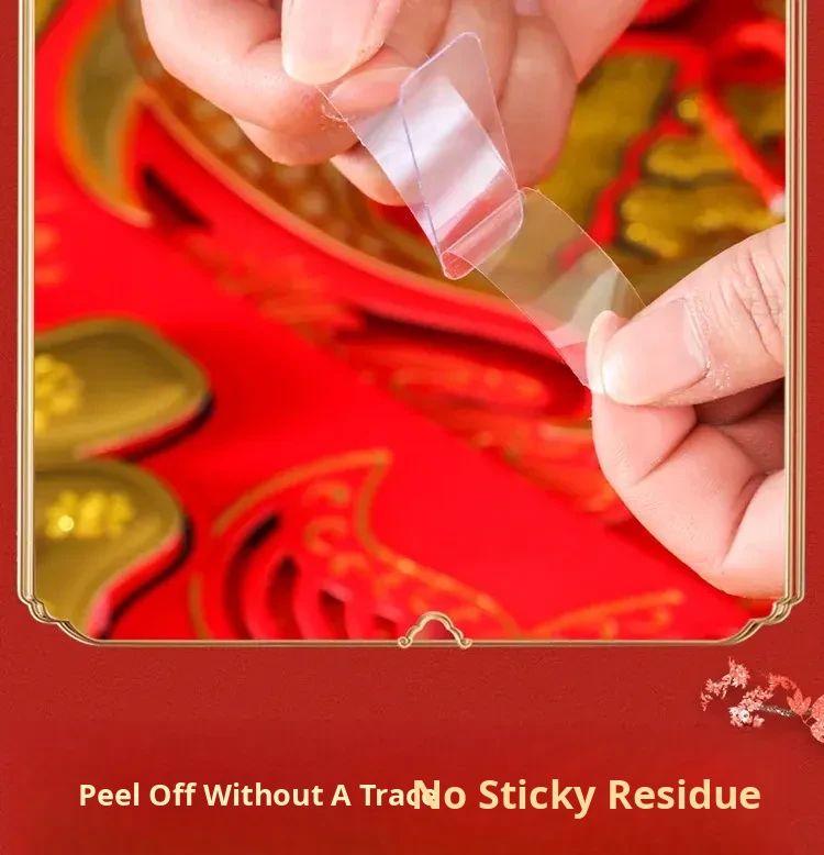 High-Strength Nano Transparent Double-Sided Tape for Home Use - No Trace, High Adhesion, Perfect for Spring Festival Couplets and Decorations