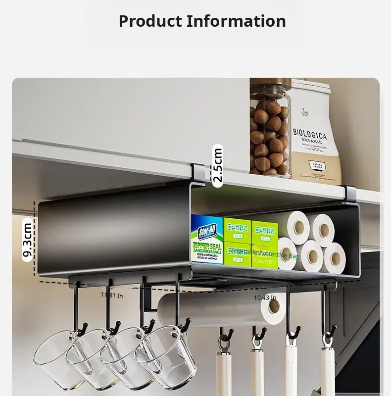 Gun Gray [11.81in] Cabinet Hanging Storage Rack + Hook