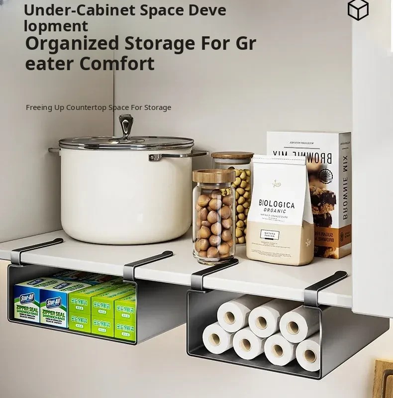 Kitchen Cabinet Door Organizer Rack - Multi-Layer Hanging Basket for Cabinets, Perfect for Storing Cling Film and Bags, Space-Saving Solution for Your Kitchen!