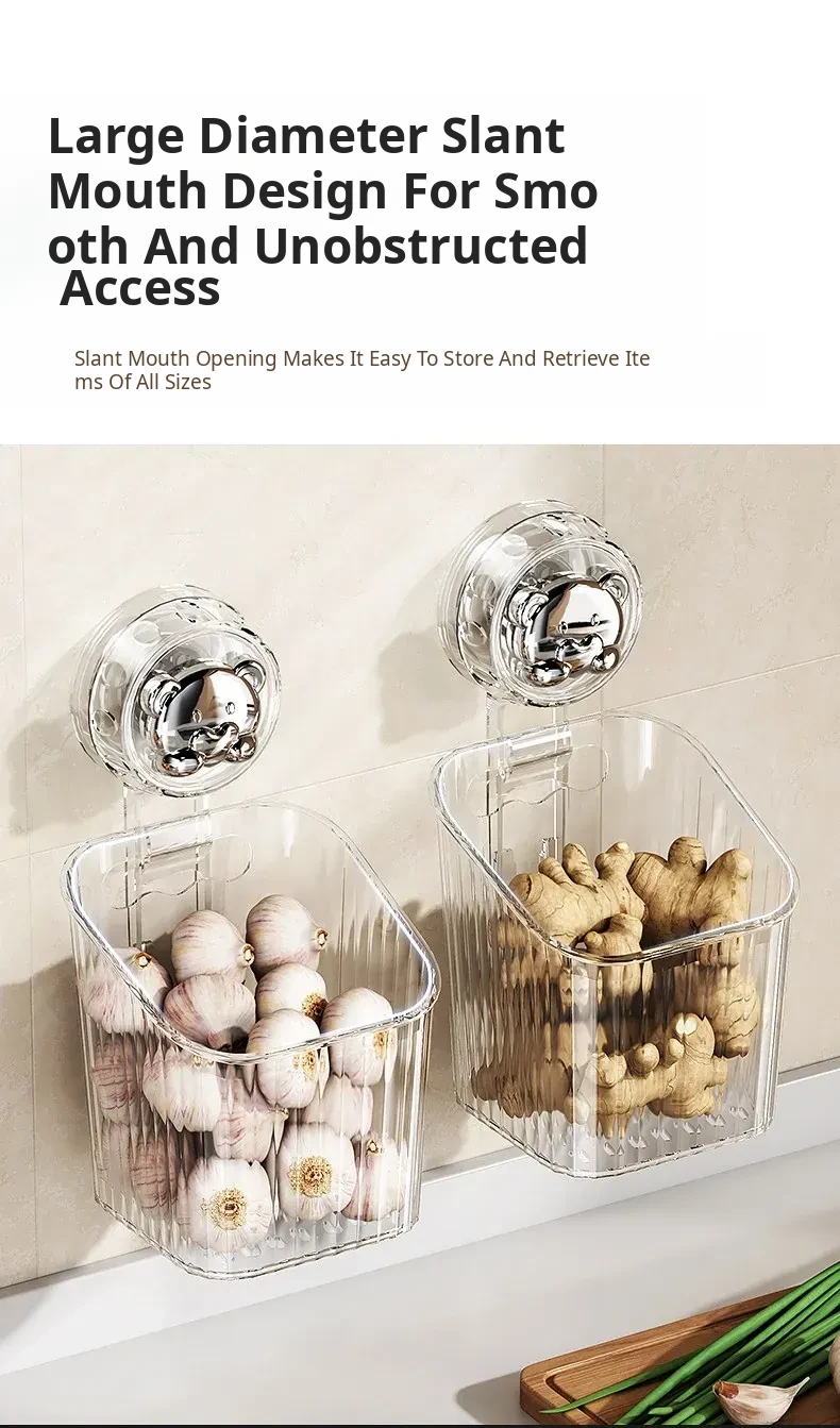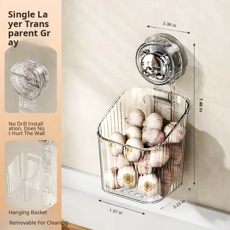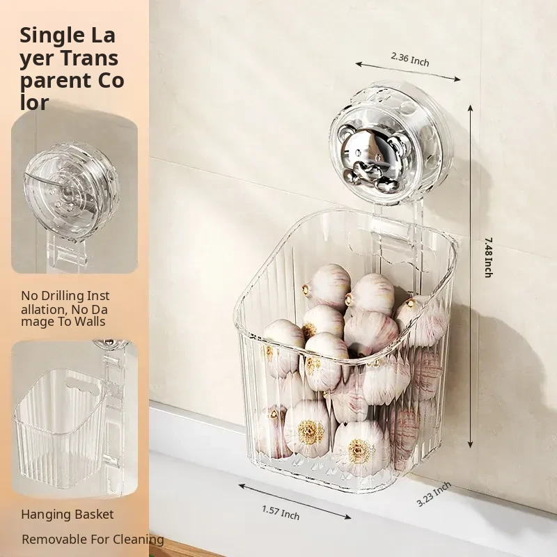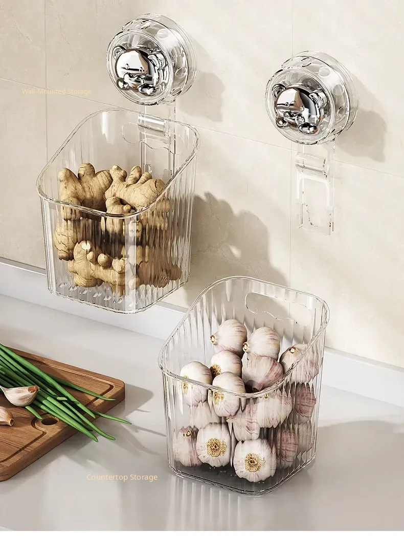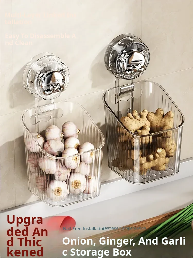Kitchen Garlic Ginger Onion Storage Box - Suction Cup Organizer for Easy Access, No Drilling Required, Perfect for Storing Ginger and Garlic, Convenient Hanging Basket