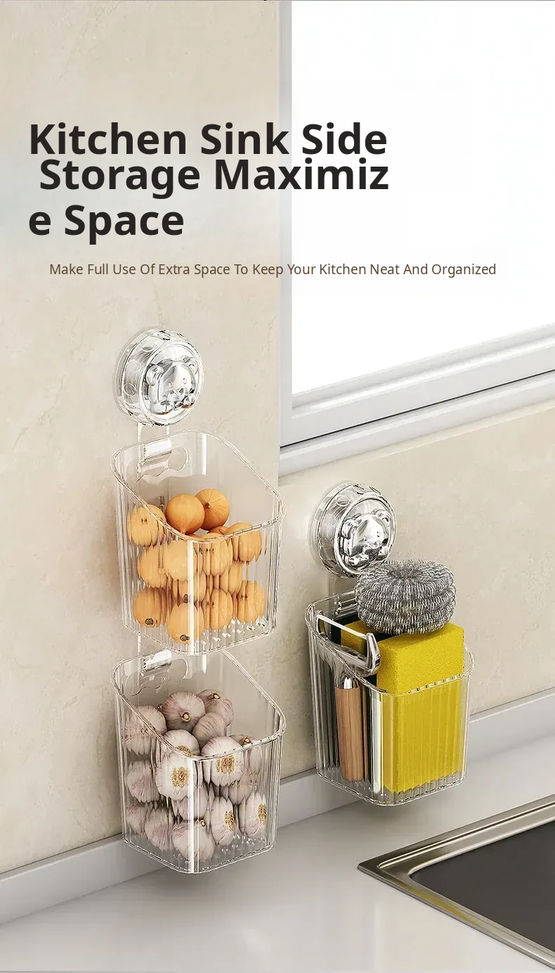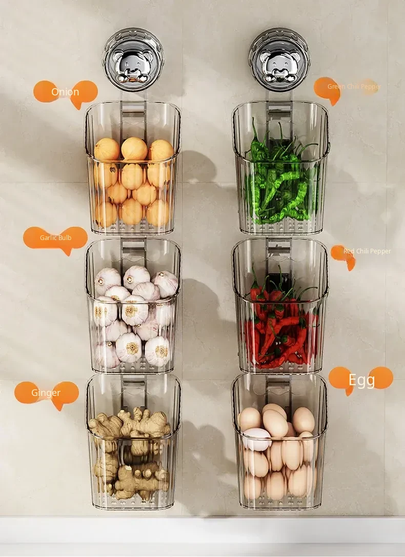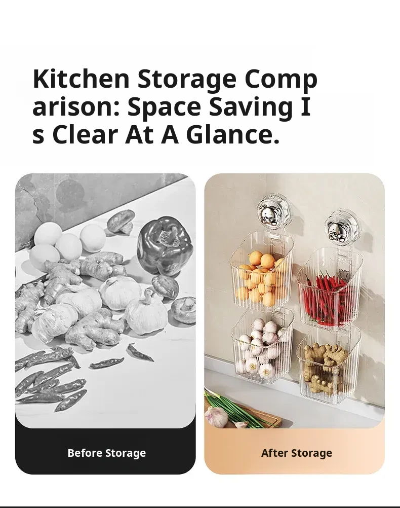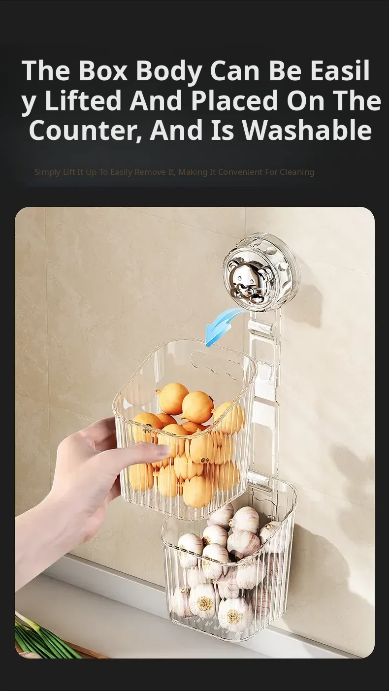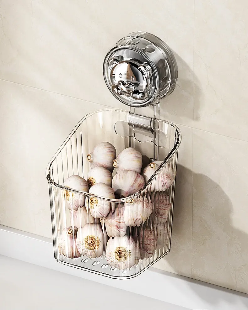 Kitchen Garlic Ginger Onion Storage Box - Suction Cup Organizer for Easy Access, No Drilling Required, Perfect for Storing Ginger and Garlic, Convenient Hanging Basket