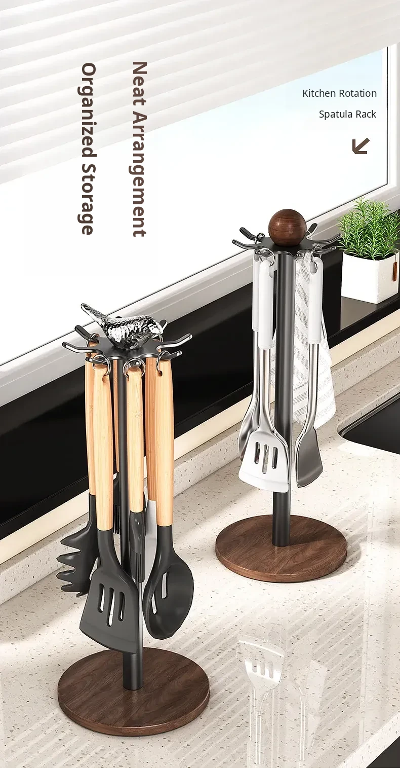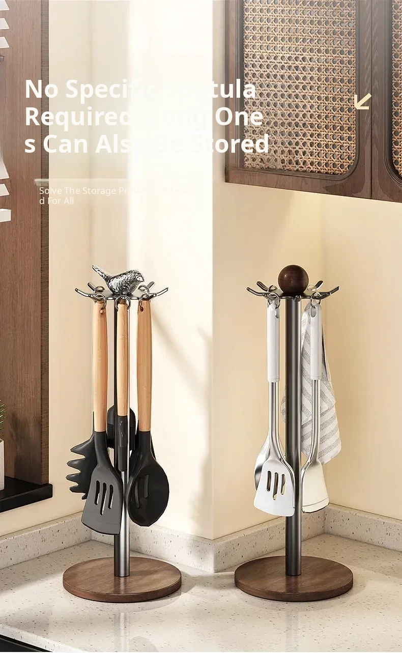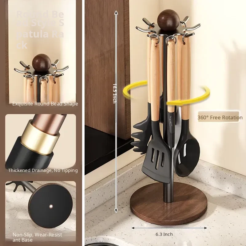 Medieval Round Beads ● 8 Hook Spatula Holder [360 ° Rotating Storage]