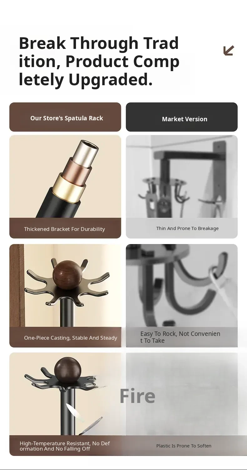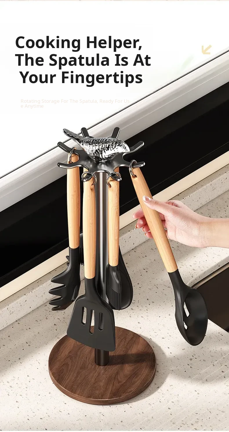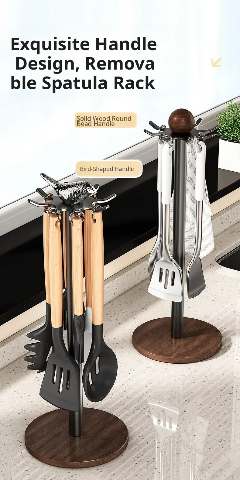 Medieval Round Beads ● 8 Hook Spatula Holder [360 ° Rotating Storage]