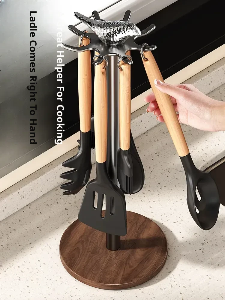 Used Bird●8 Hook Spatula Holder [360°Rotating Storage]