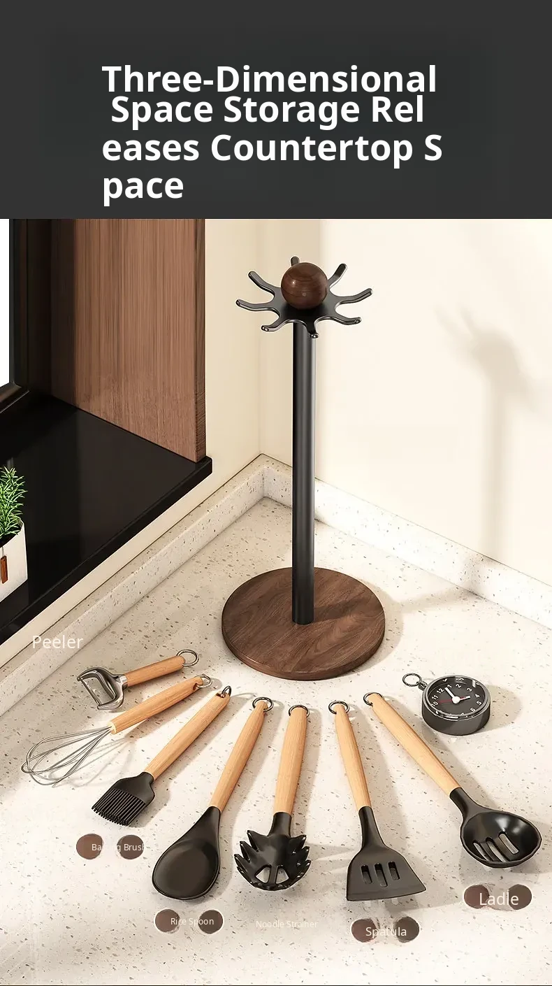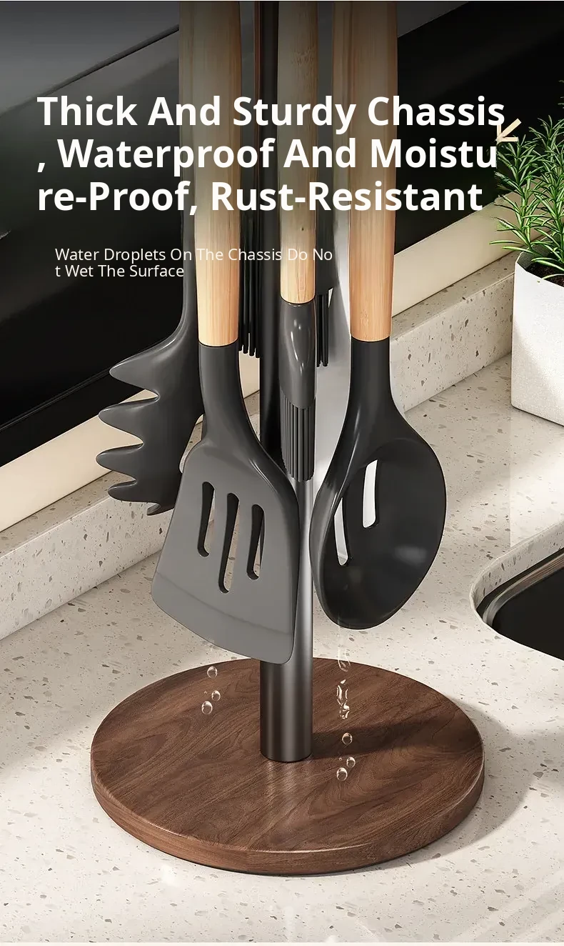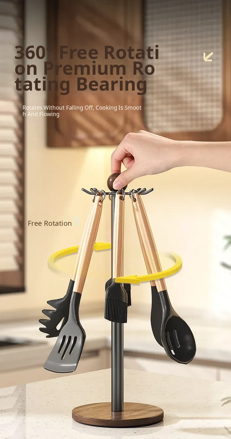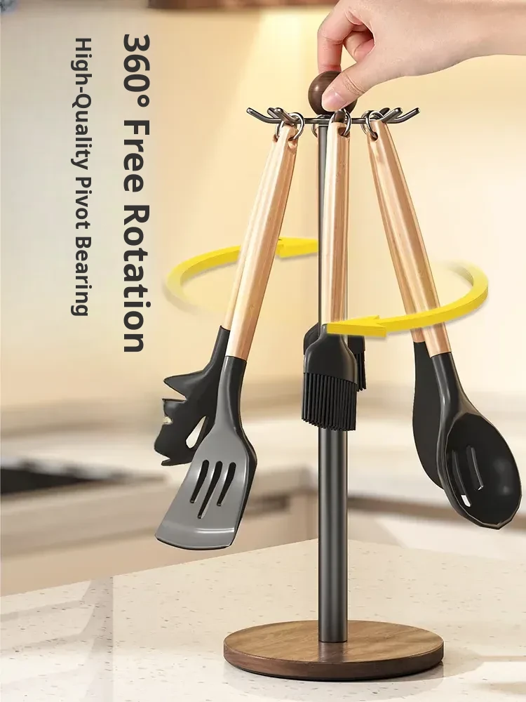 Kitchen Rotating Hook Rack for Utensils - Space-Saving Holder for Spoons, Spatulas, and Ladles - Stylish and Functional Countertop Organizer for Home Chefs
