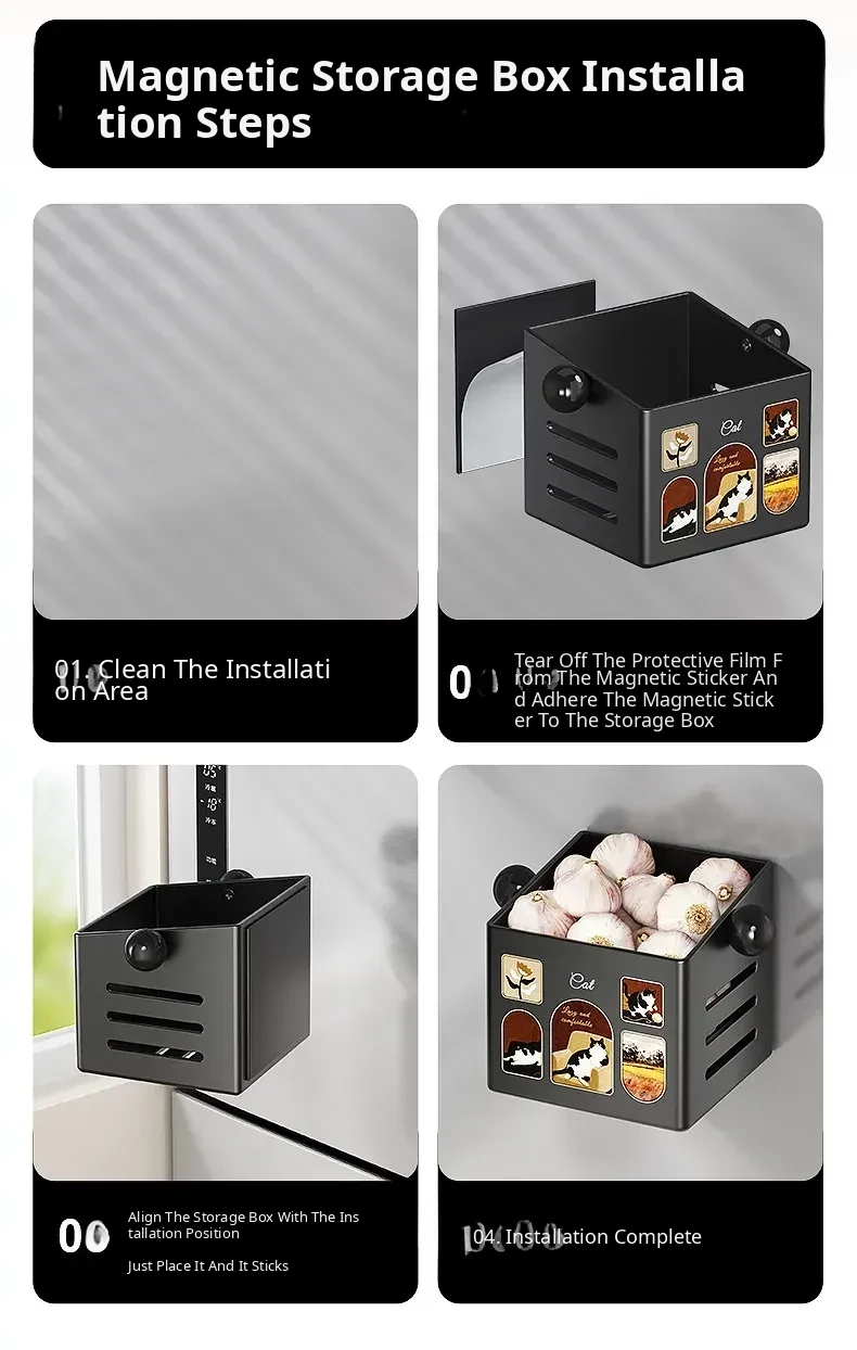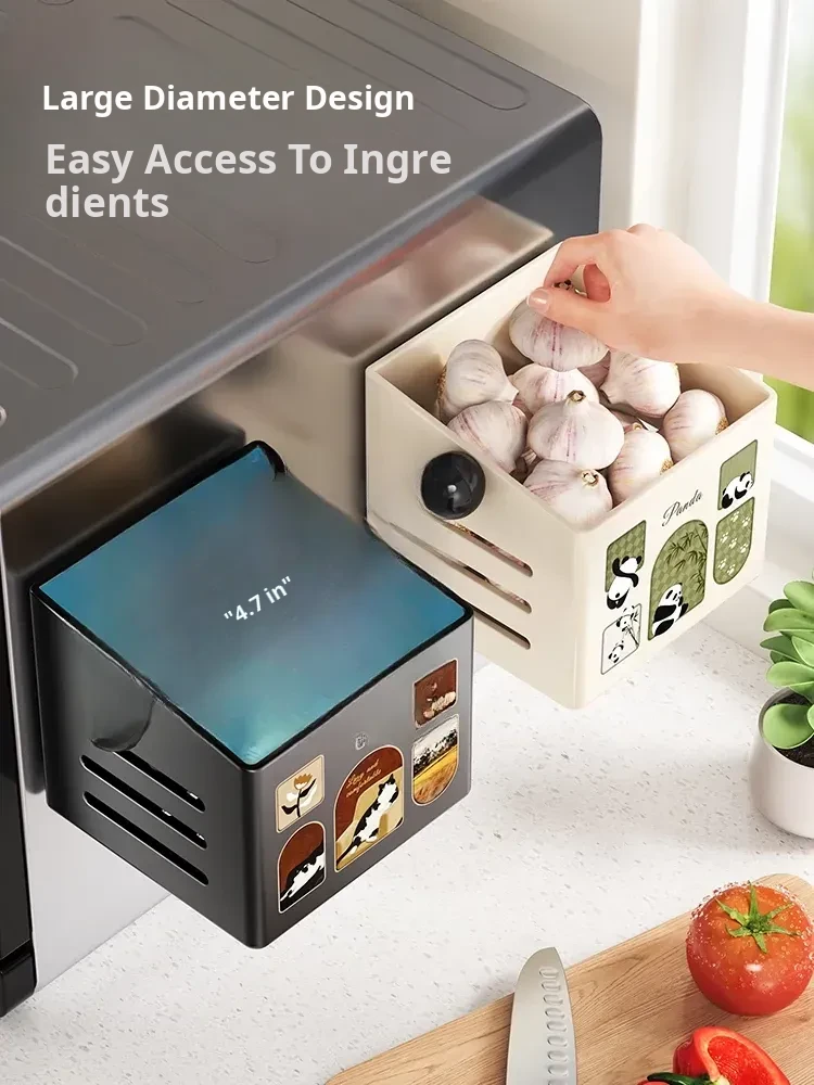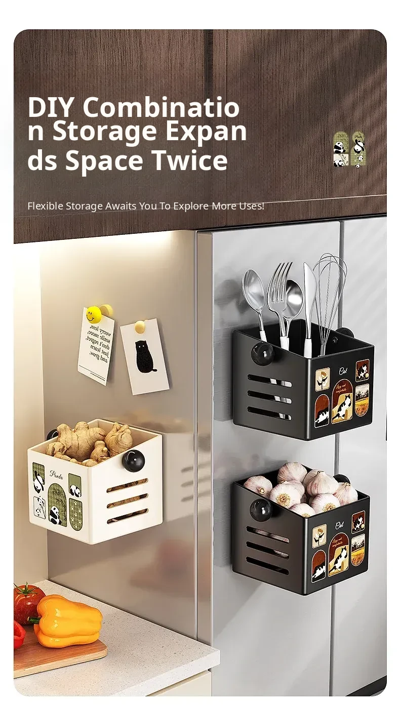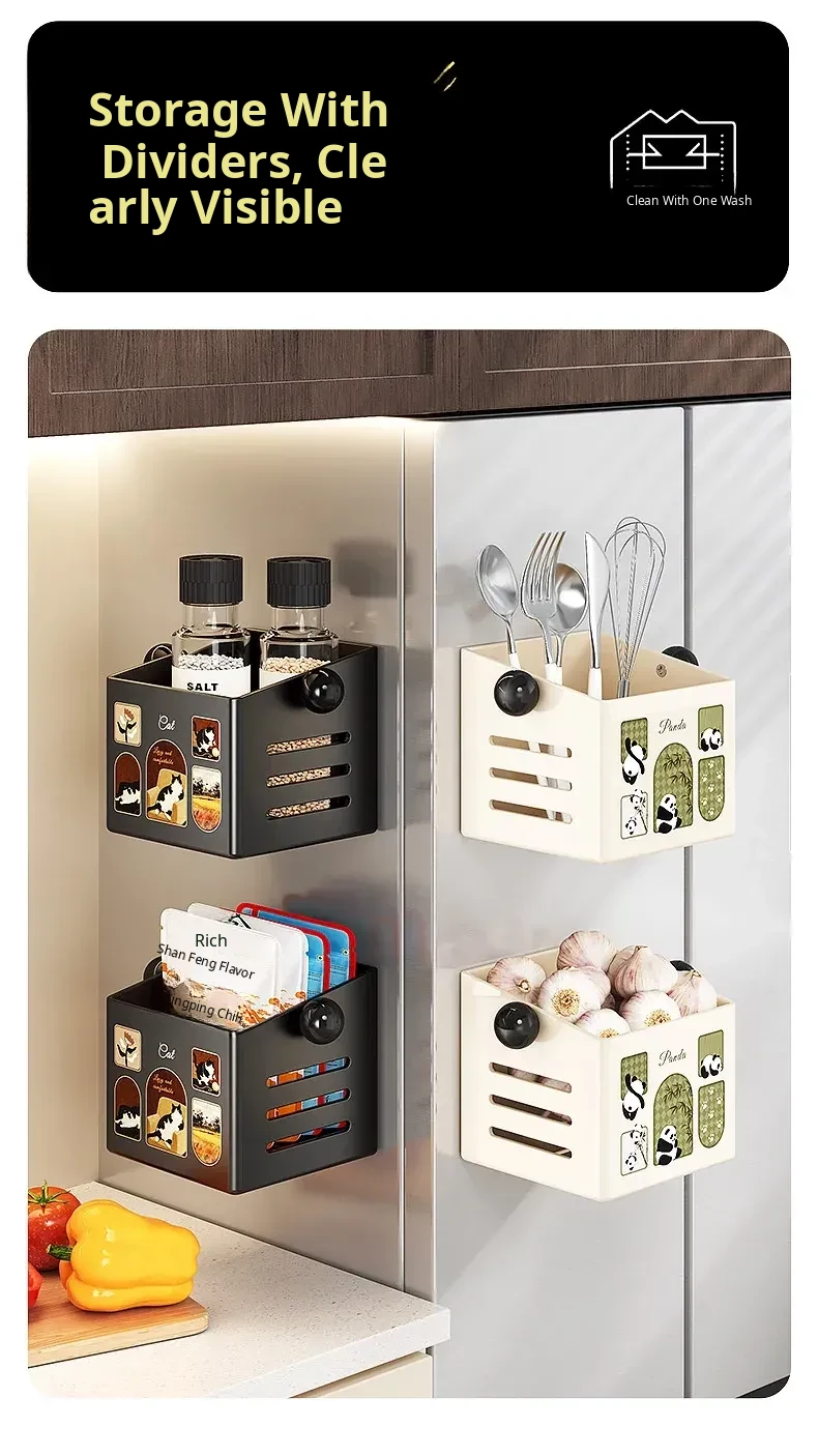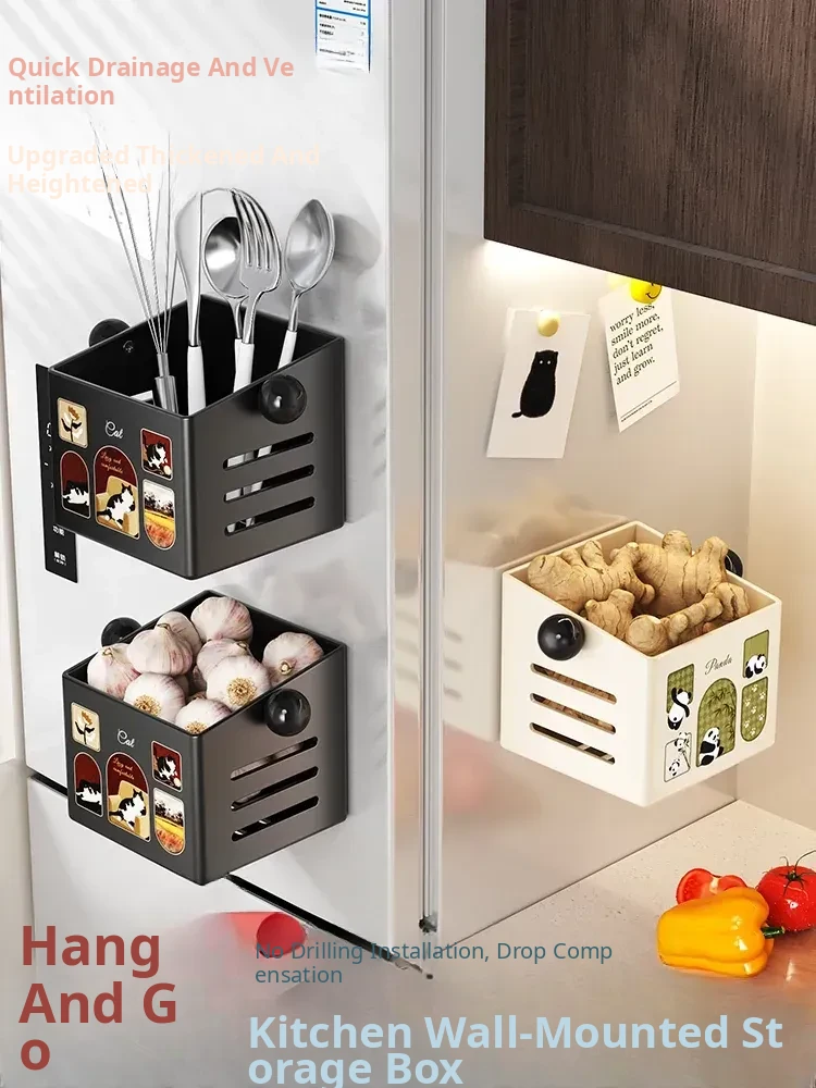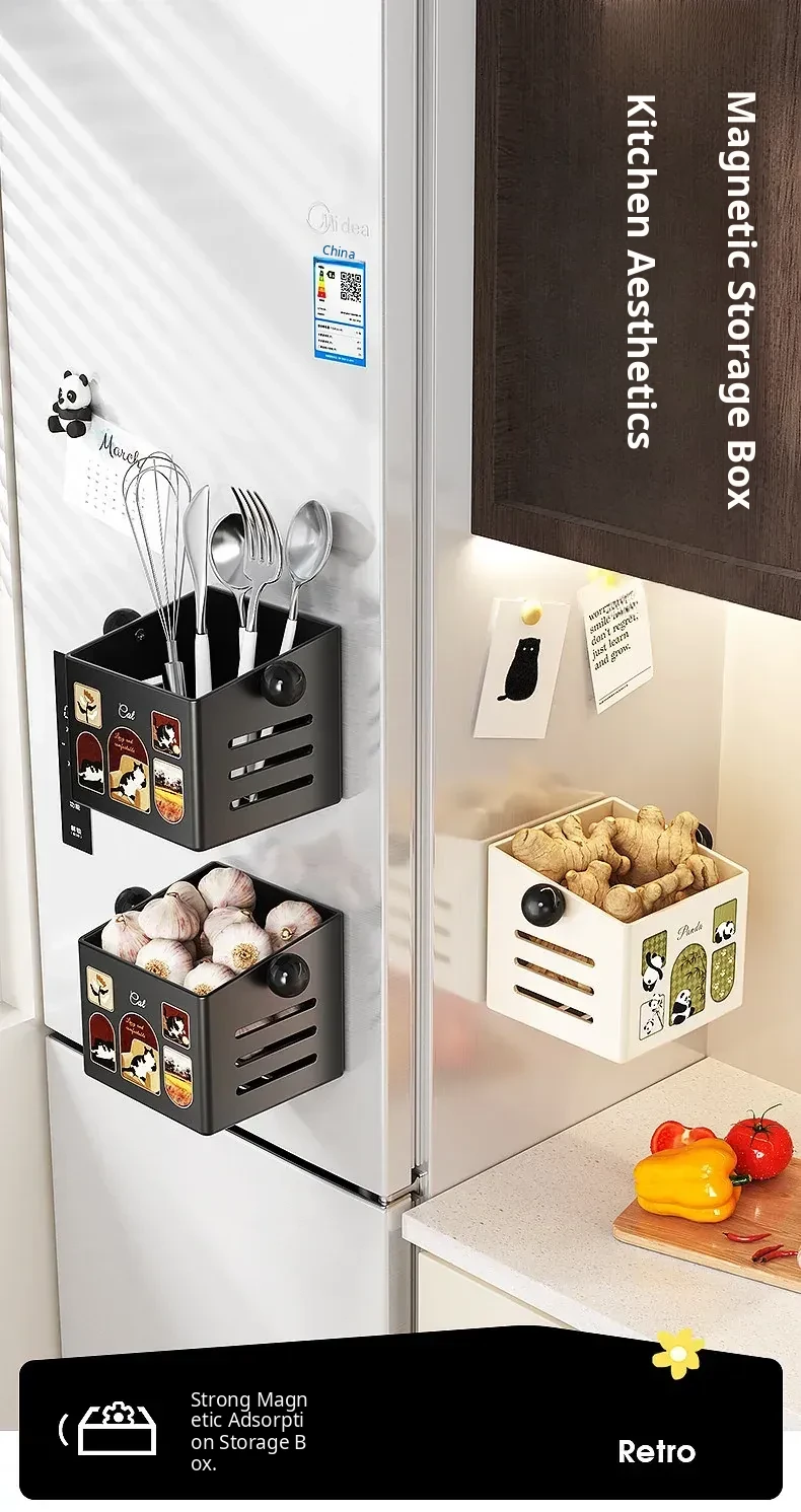 Magnetic Refrigerator Storage Rack with Side Organizer Box - No Drill Wall-Mounted Holder for Spoons, Miscellaneous Items, and Garlic, Ginger, Green Onion Storage Solution! Perfect for Maximizing Space in Your Kitchen!