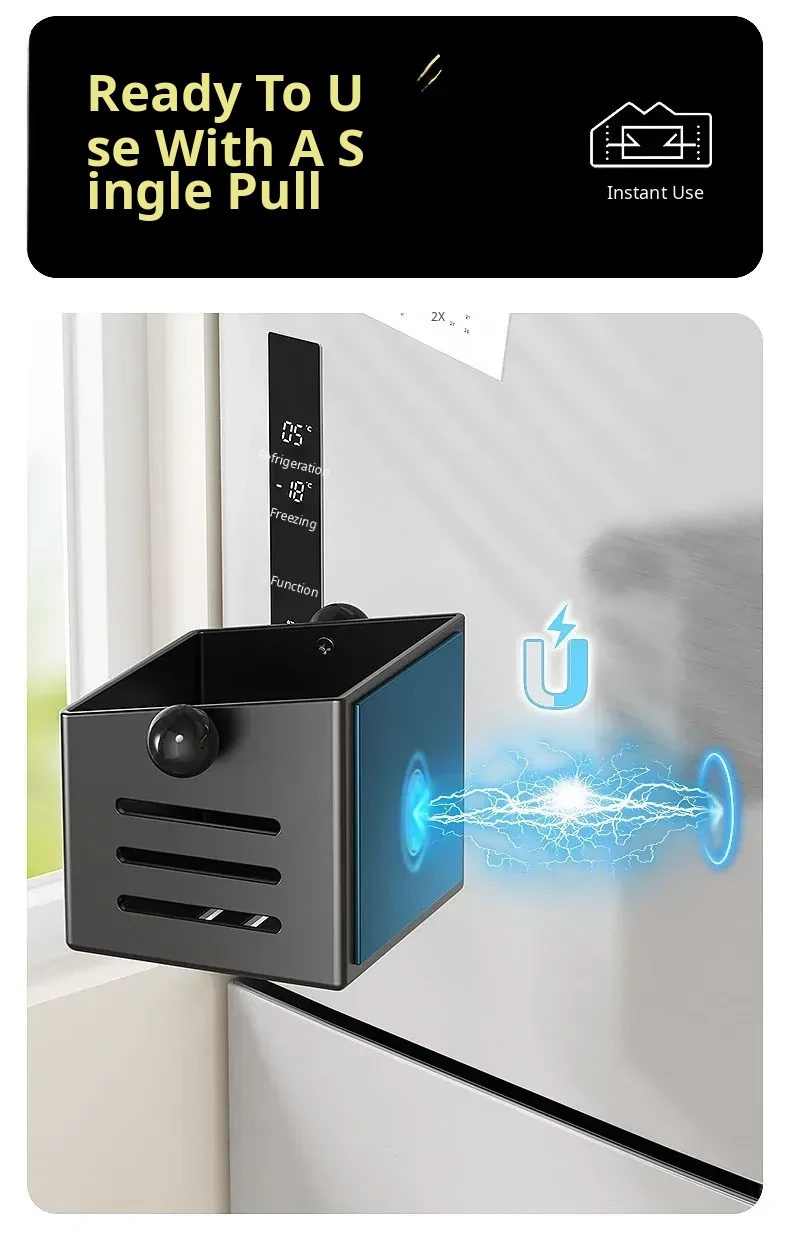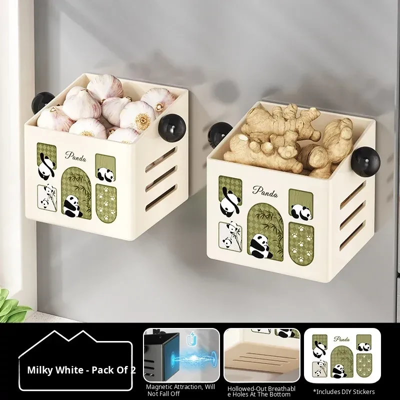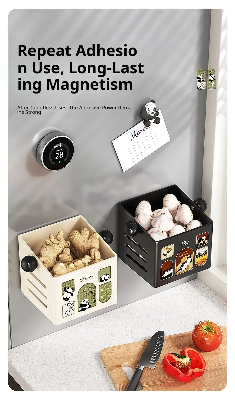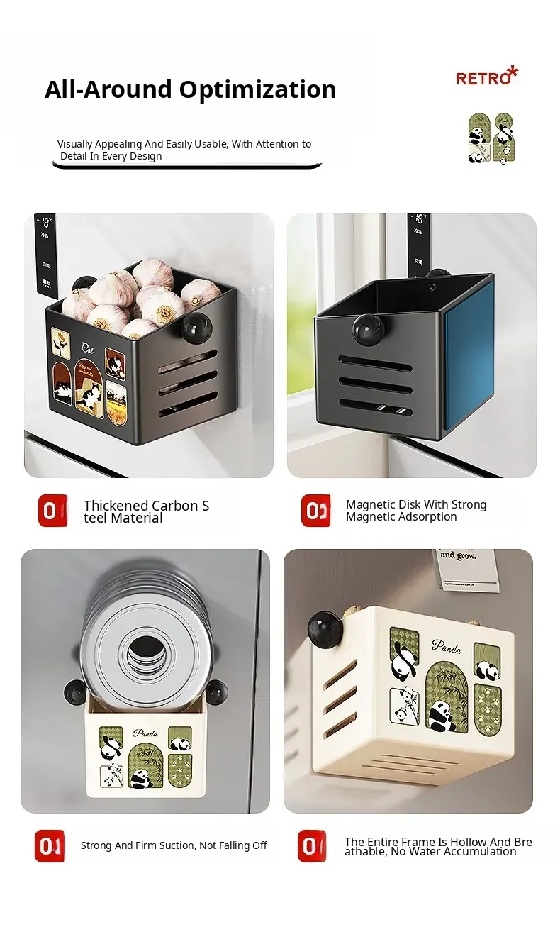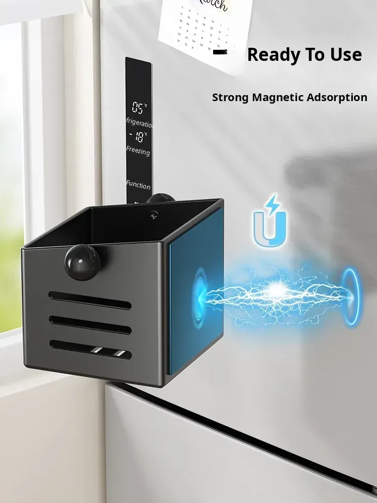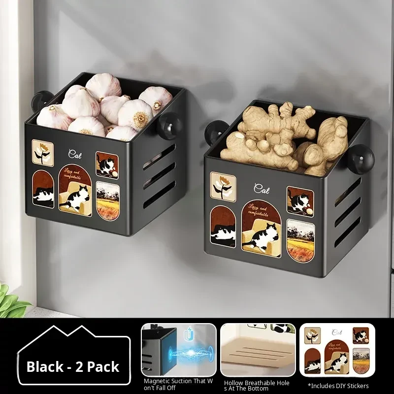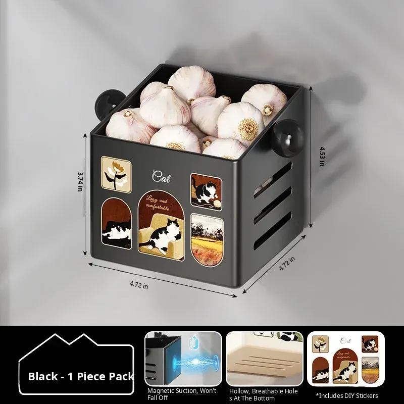Magnetic Refrigerator Storage Rack with Side Organizer Box - No Drill Wall-Mounted Holder for Spoons, Miscellaneous Items, and Garlic, Ginger, Green Onion Storage Solution! Perfect for Maximizing Space in Your Kitchen!