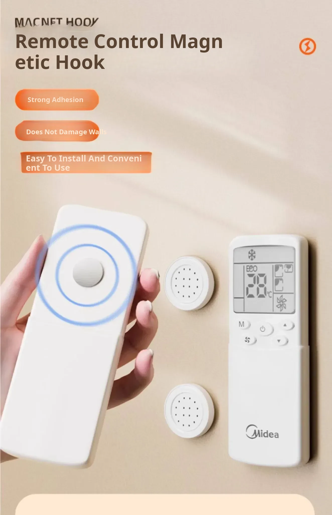 Magnetic Wall-Mounted Remote Control Holder for TV and Air Conditioner - No Drill Strong Suction Cup Hook for Easy Storage and Organization