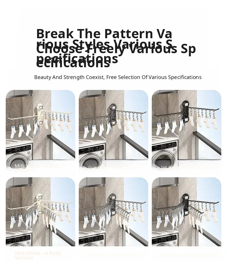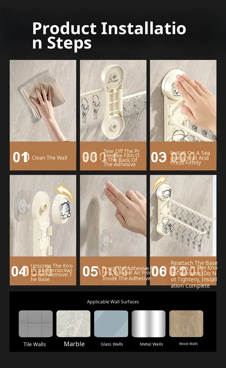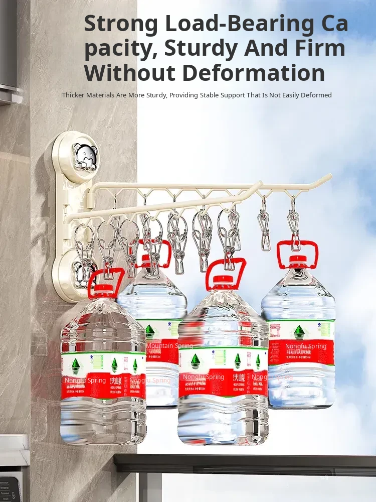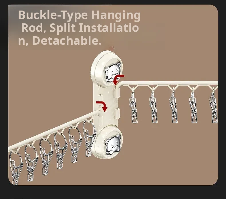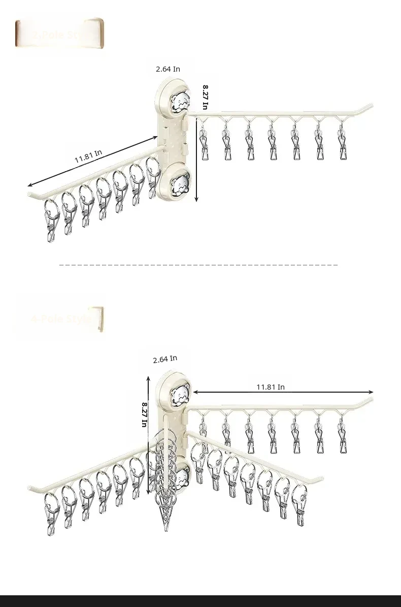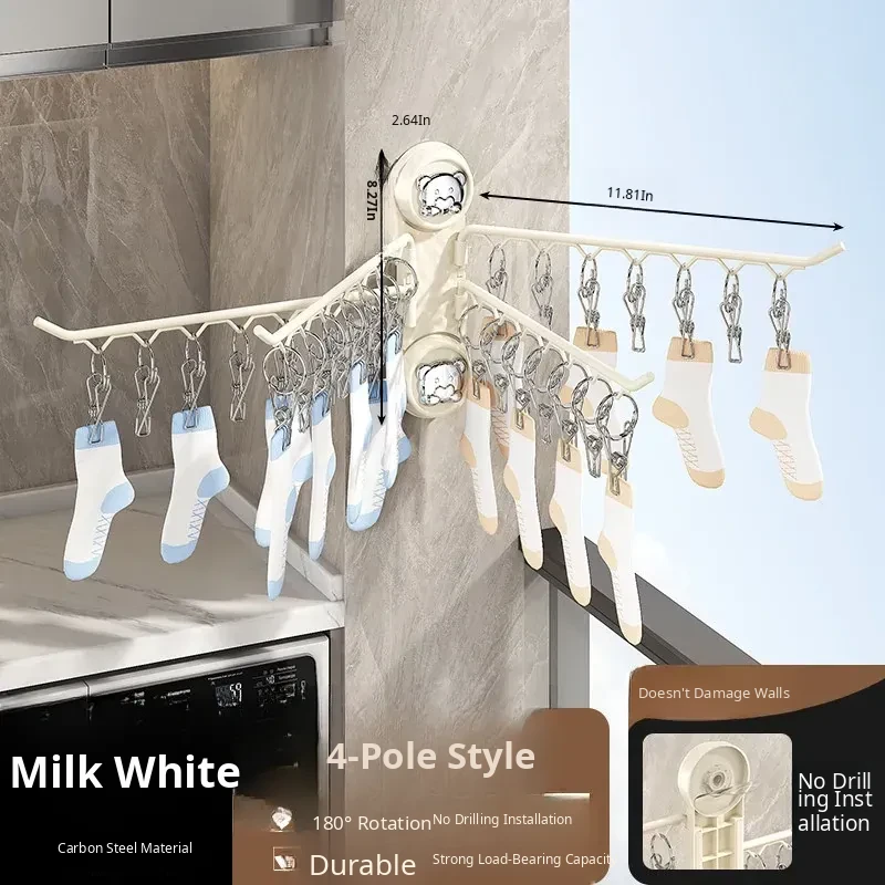 [Milk White] Suction Cup Drying Rack-4 Poles●28 Clips