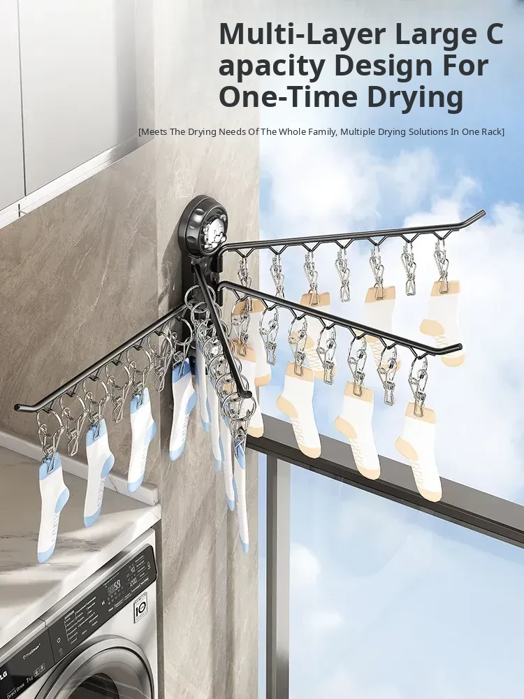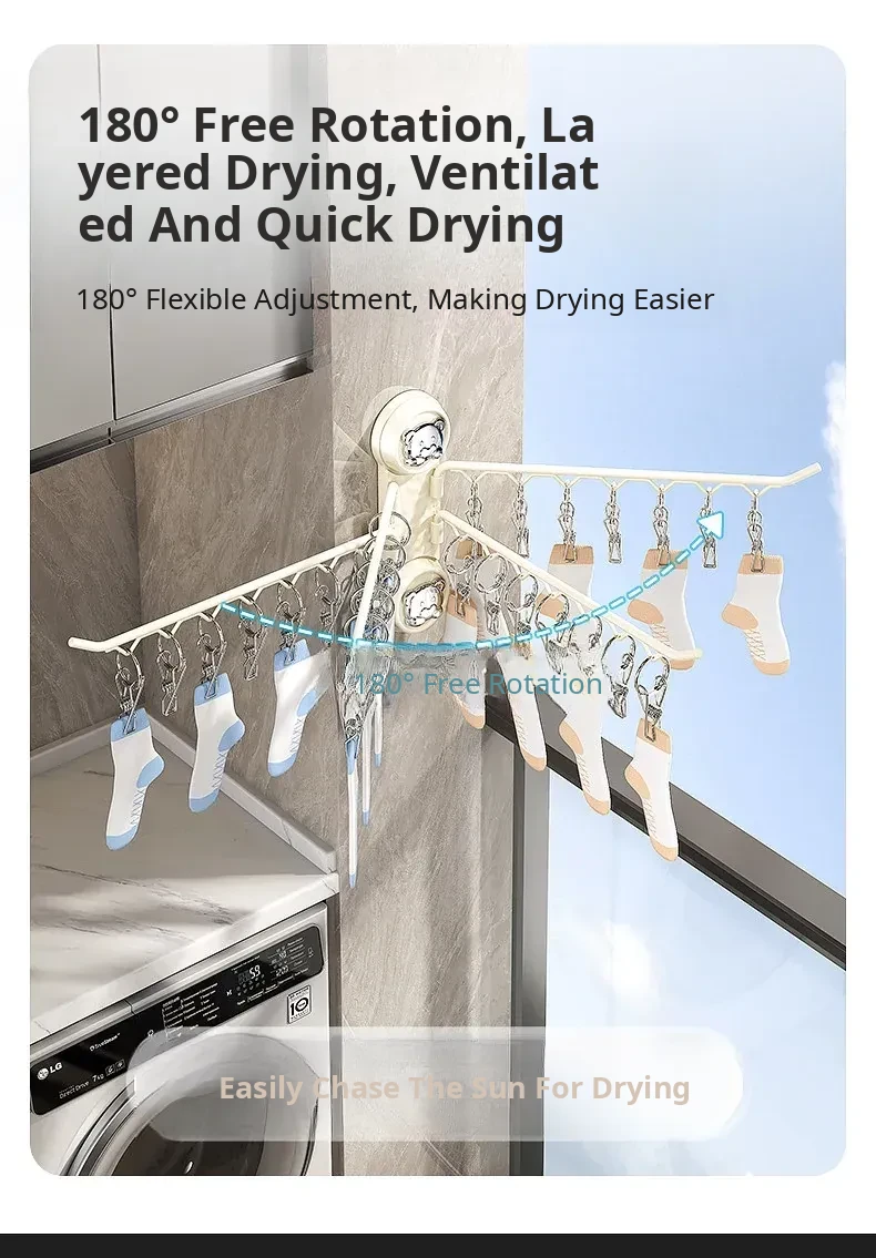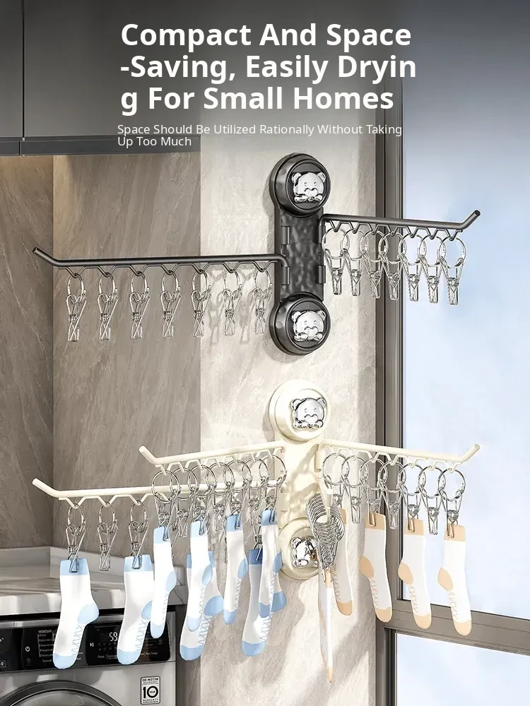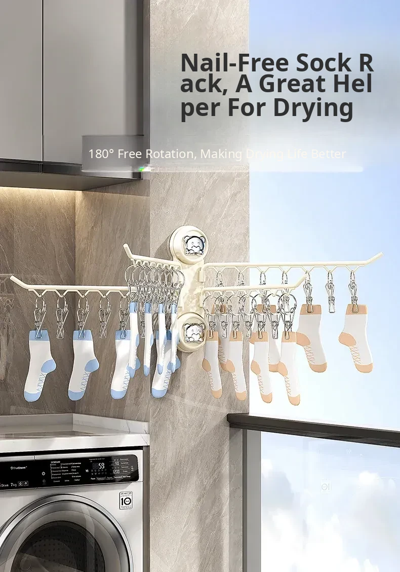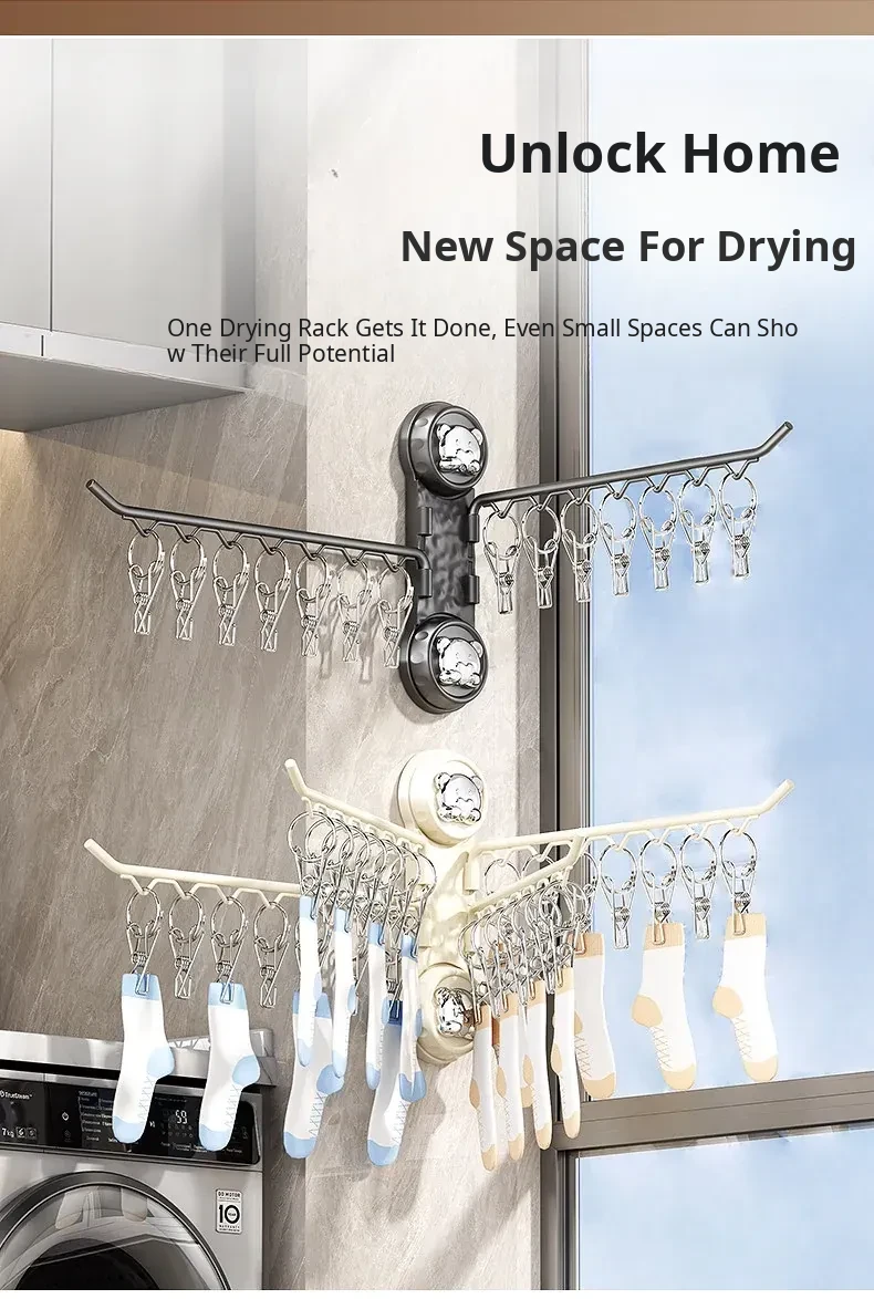 Multi-Functional Folding Sock Drying Rack with Suction Cups - Perfect for Balconies! Includes Rotating Clips for Socks, Underwear, and More - Your Ultimate Laundry Solution!