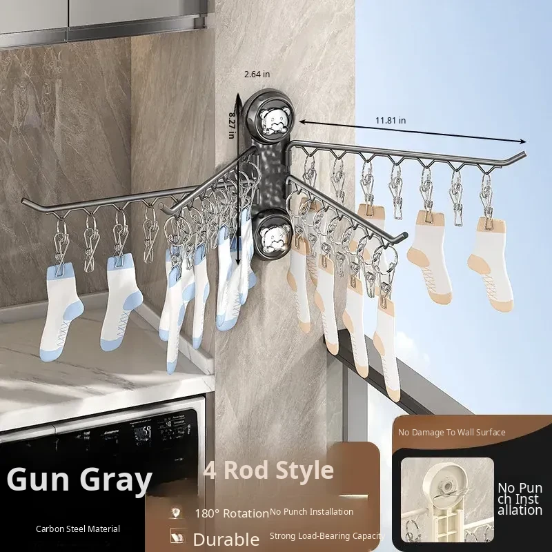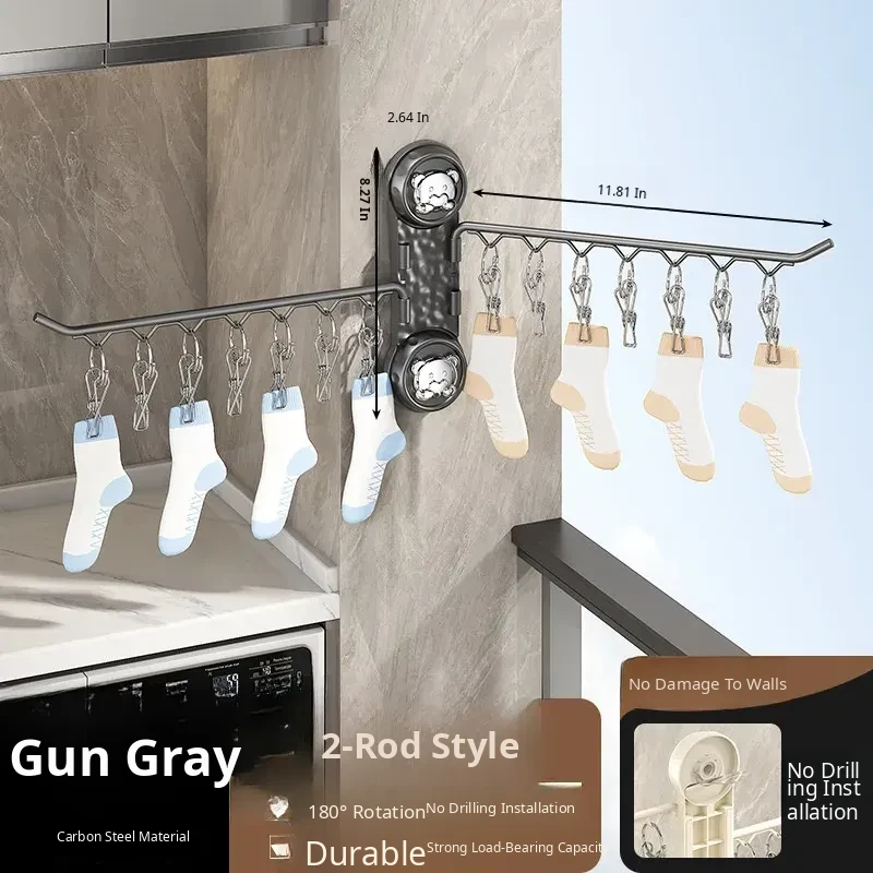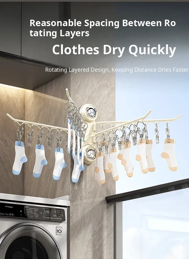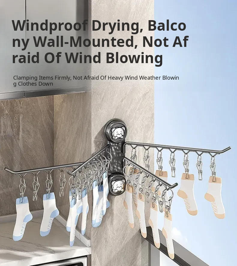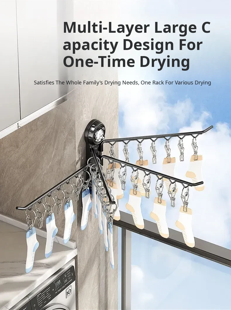 Multi-Functional Folding Sock Drying Rack with Suction Cups - Perfect for Balconies! Includes Rotating Clips for Socks, Underwear, and More - Your Ultimate Laundry Solution!