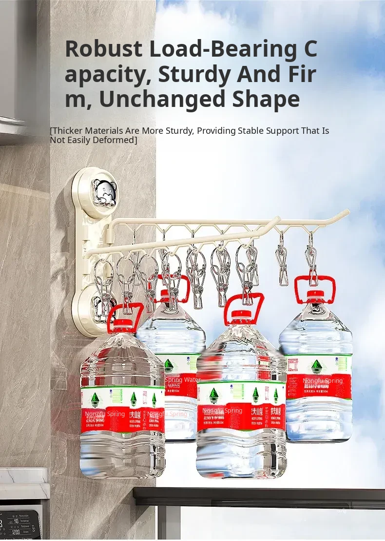 [Milk White] Suction Cup Drying Rack-2 Poles●14 Clips