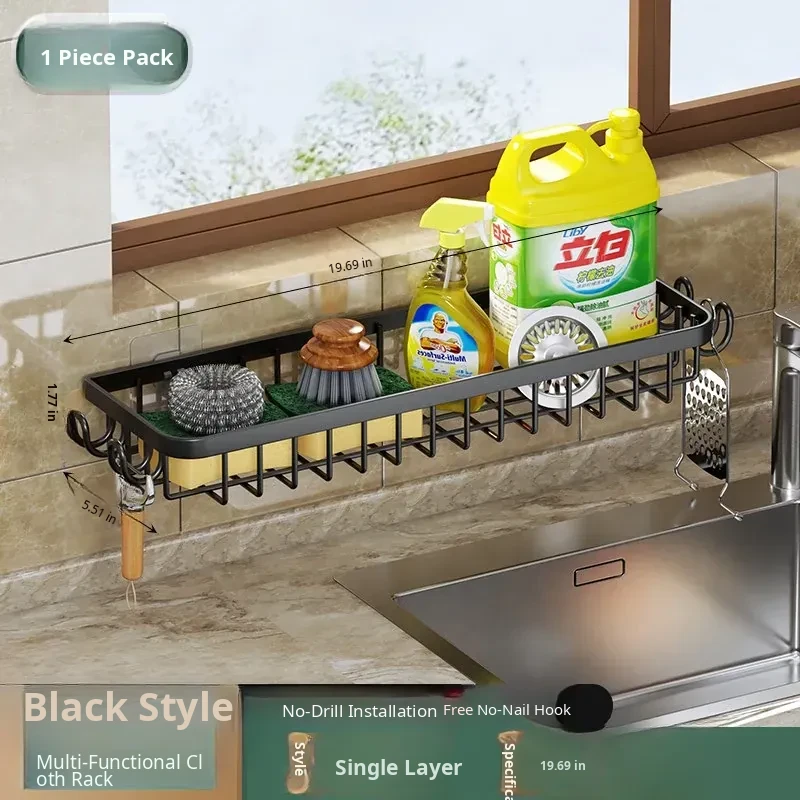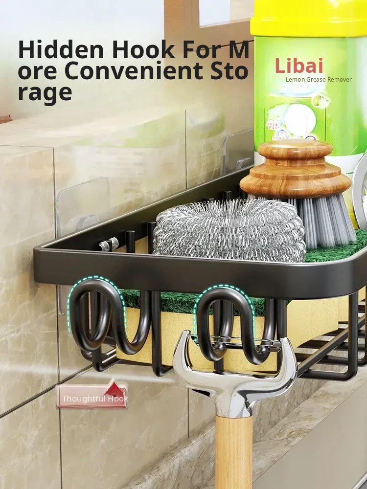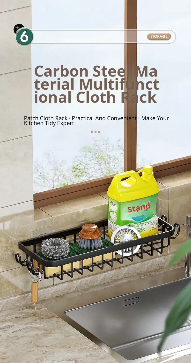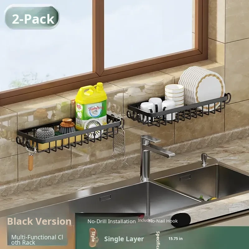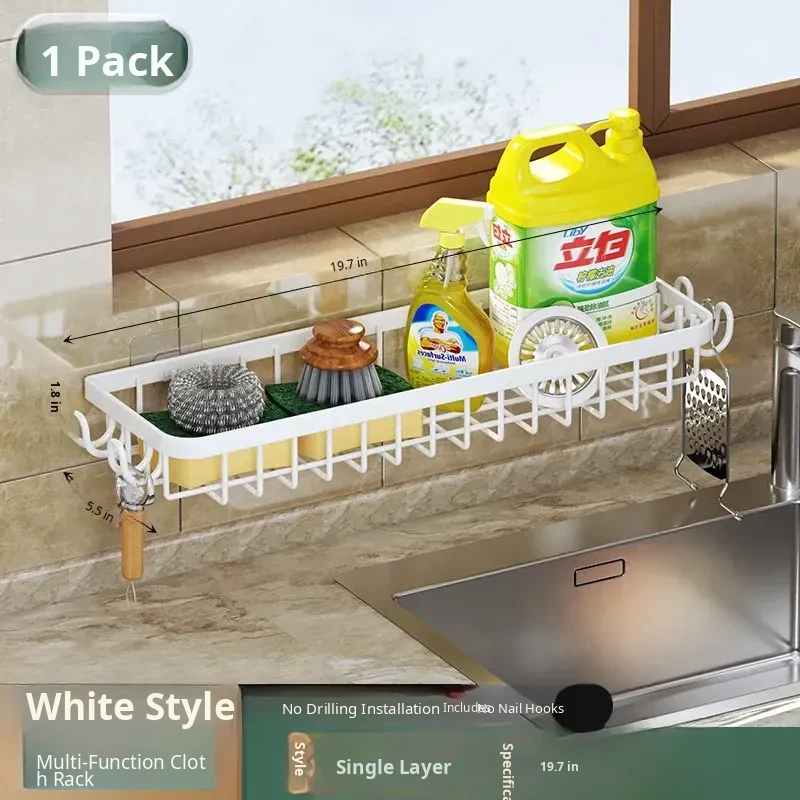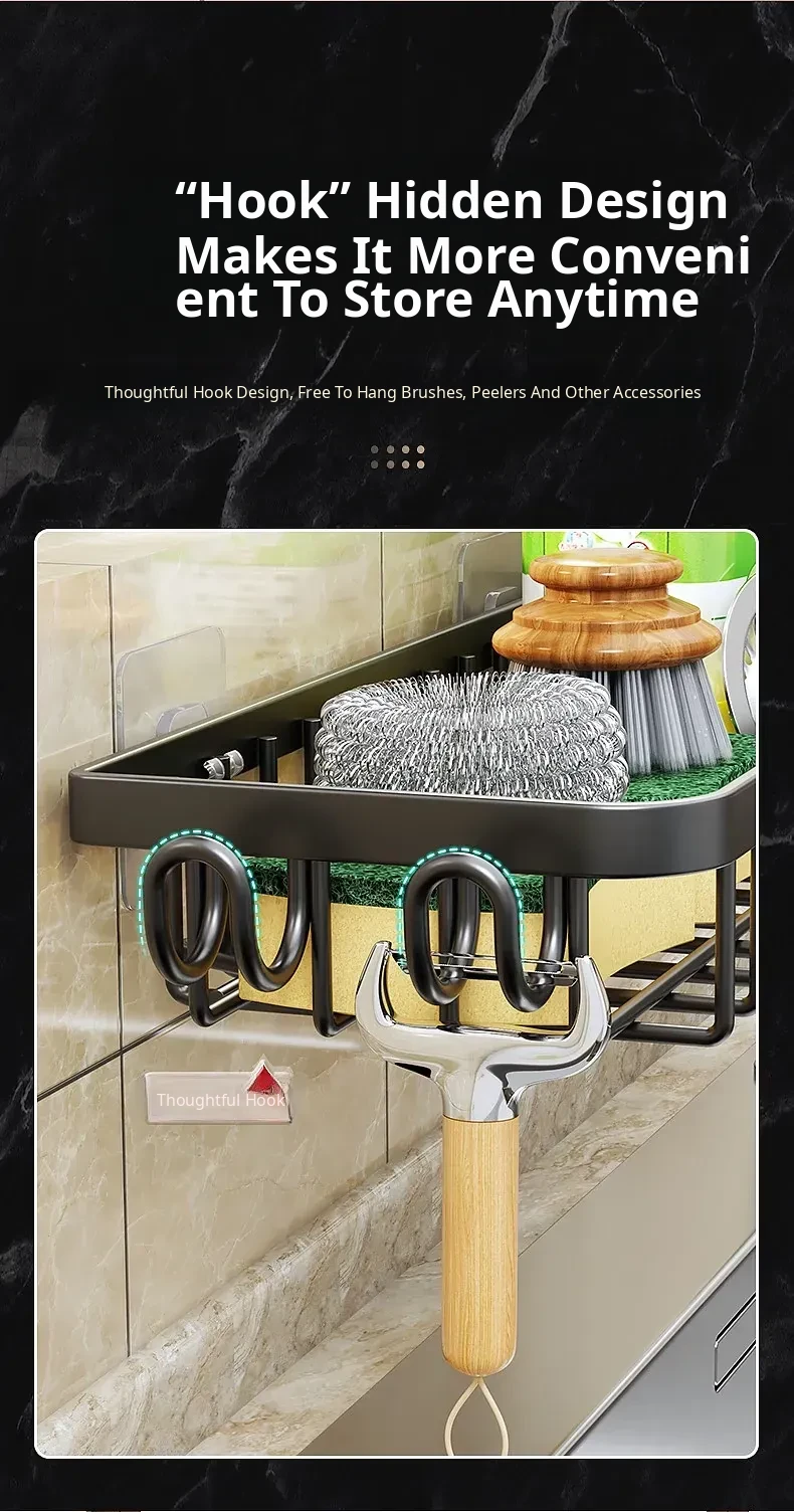 Multi-functional Kitchen Dish Cloth Rack - No Drill Storage Shelf with Hooks, Perfect for Draining and Organizing Sink Essentials!