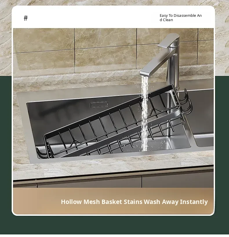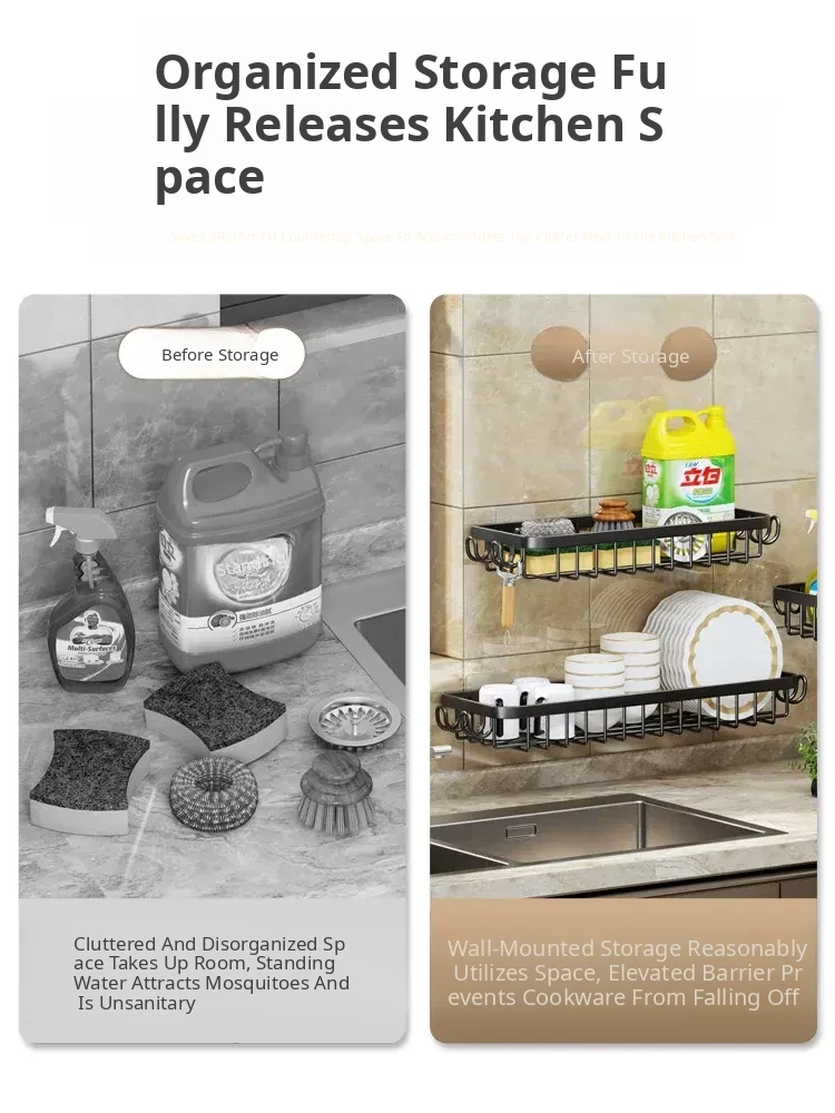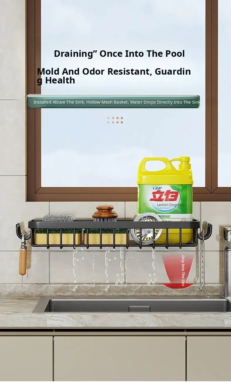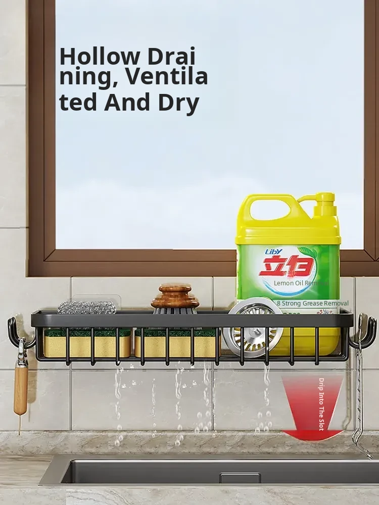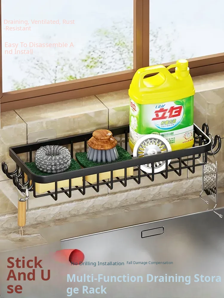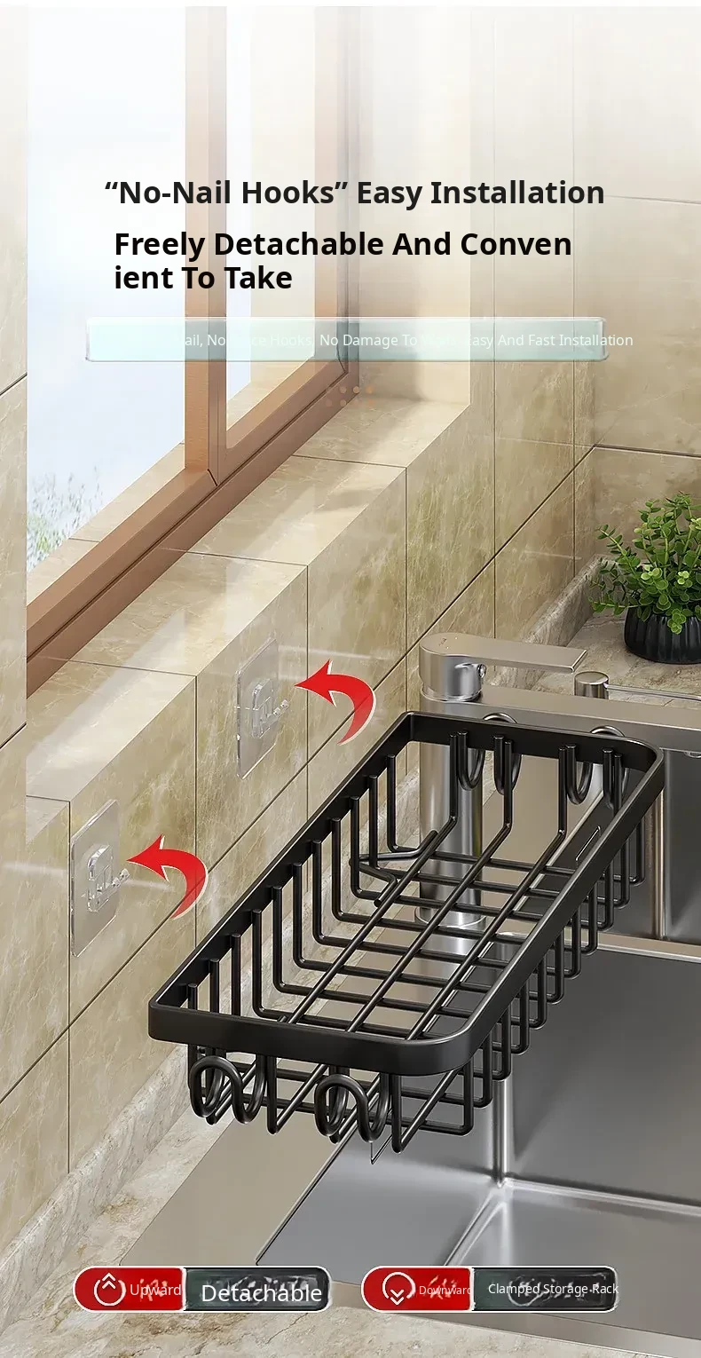 Multi-functional Kitchen Dish Cloth Rack - No Drill Storage Shelf with Hooks, Perfect for Draining and Organizing Sink Essentials!