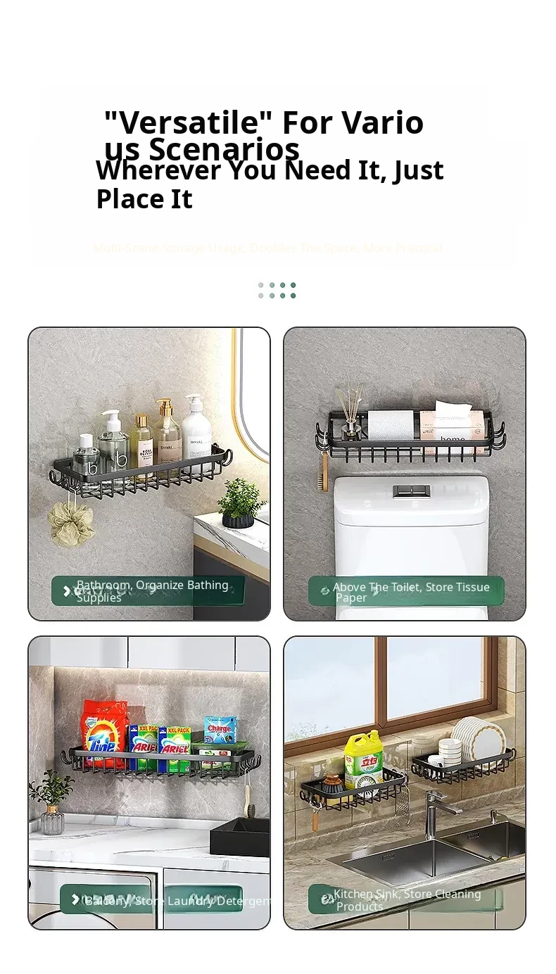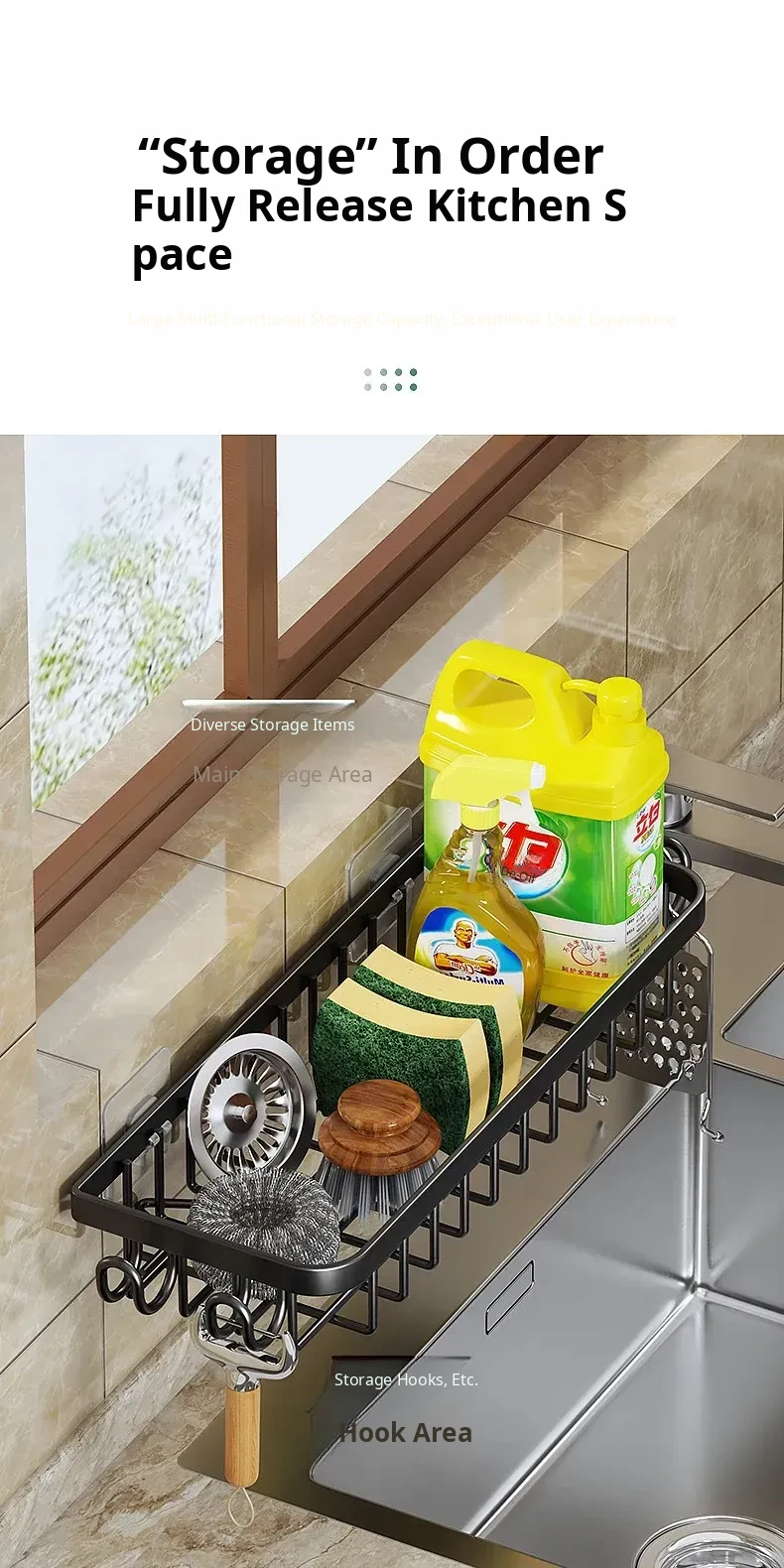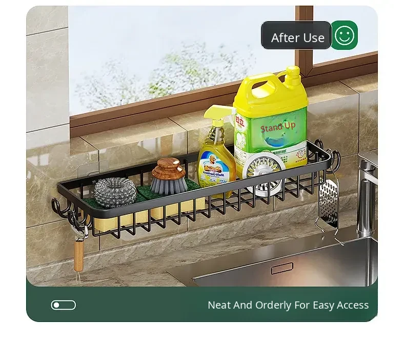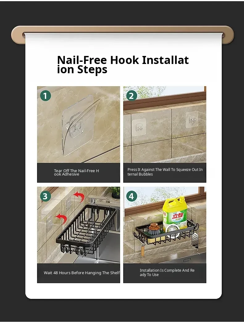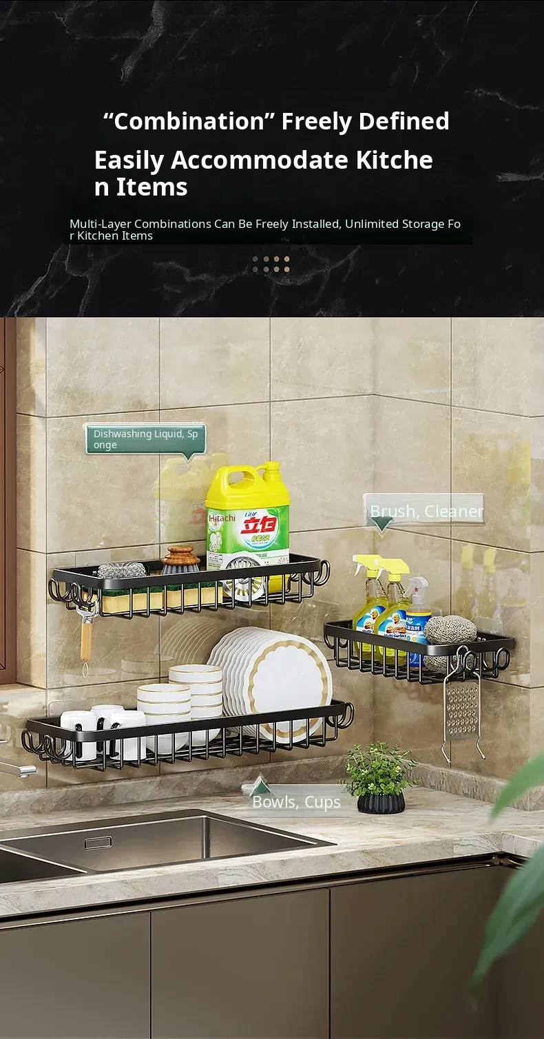 Multi-functional Kitchen Dish Cloth Rack - No Drill Storage Shelf with Hooks, Perfect for Draining and Organizing Sink Essentials!