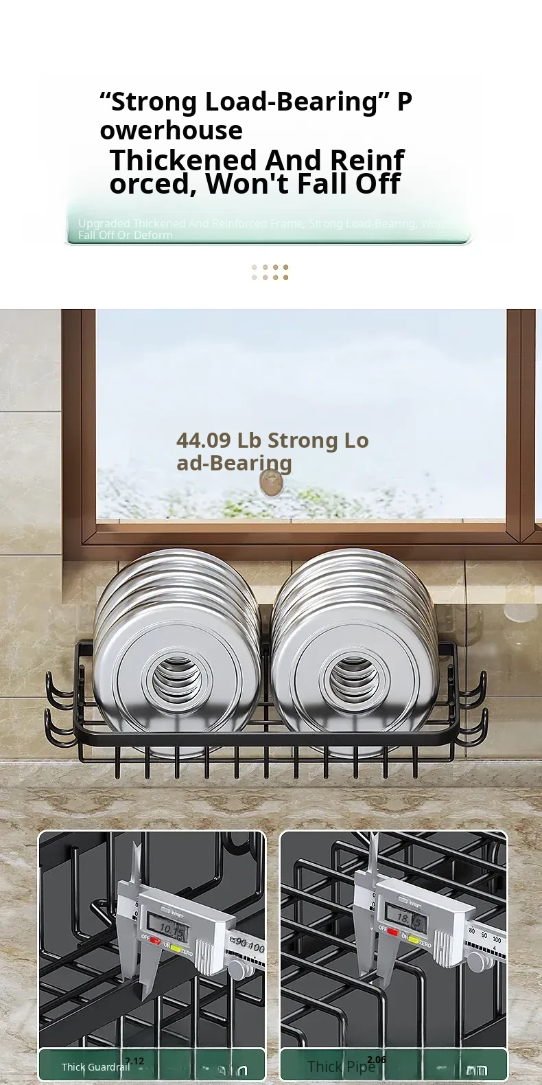 Black●15.75in Kitchen Storage Rack [with 4 Hooks]