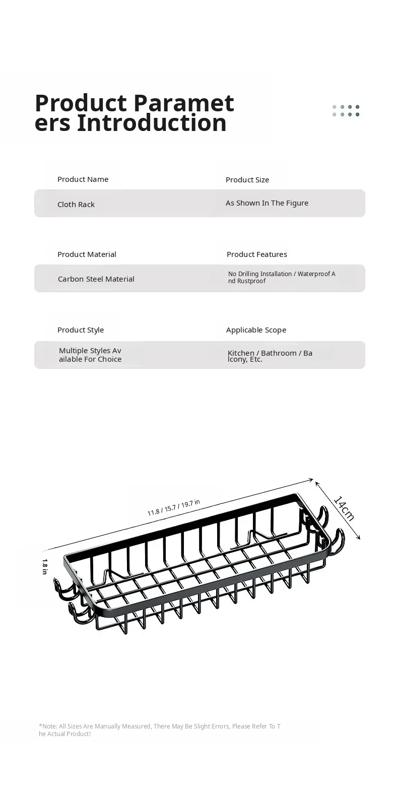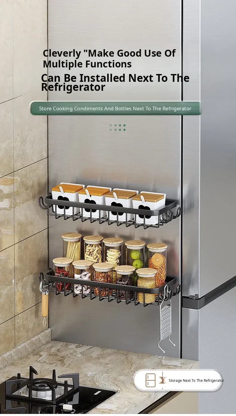 Black●19.69in Kitchen Storage Rack [with 4 Hooks]