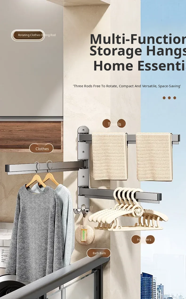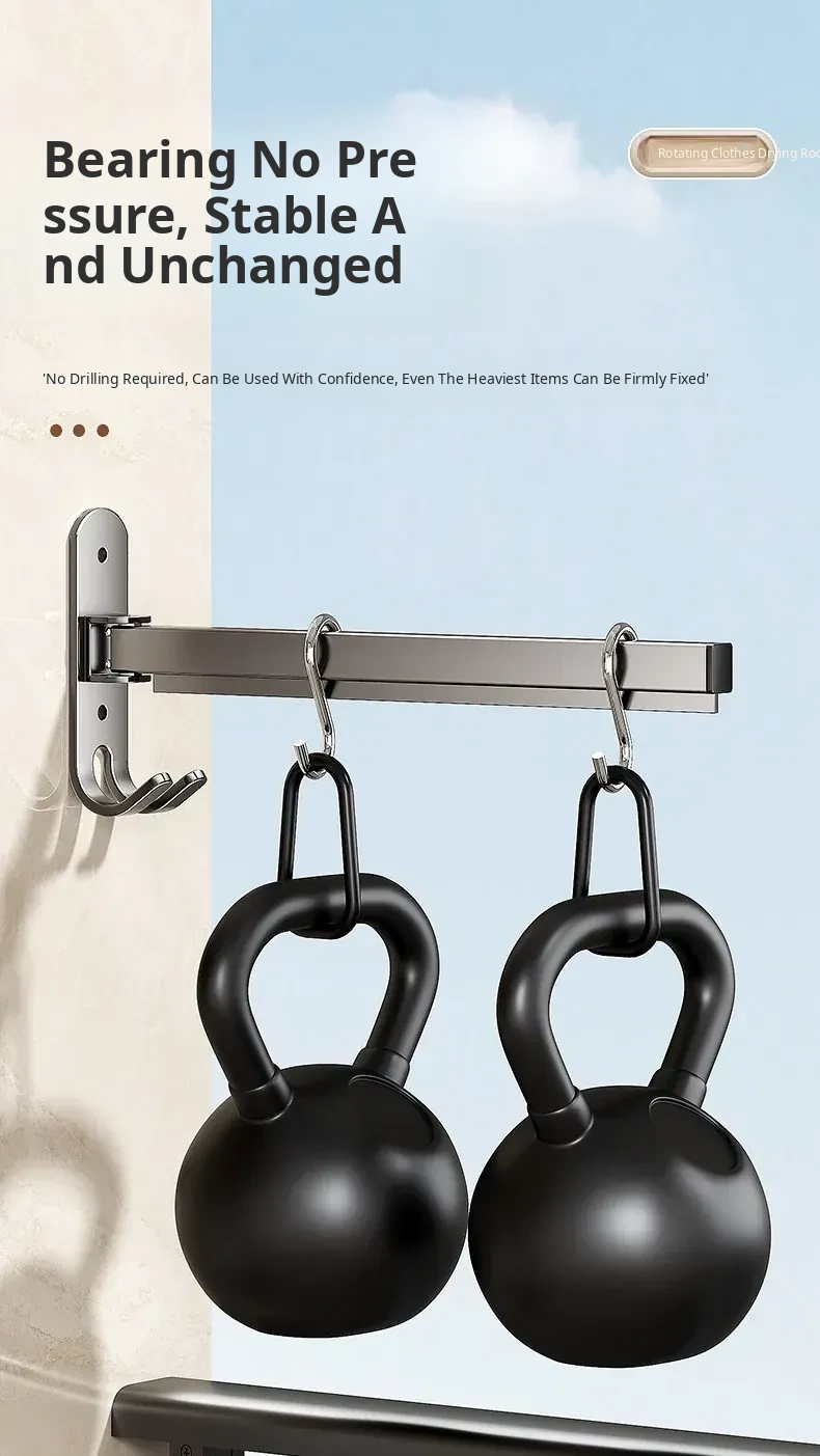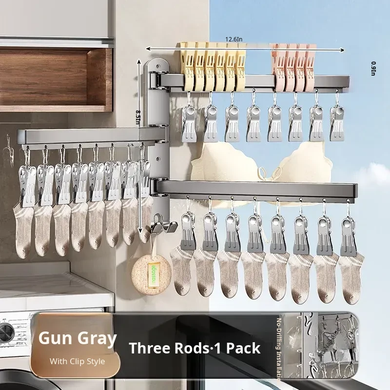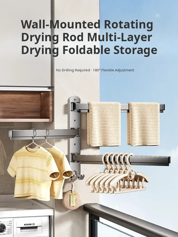 Multi-Functional No-Drill Wall-Mounted Clothes Hanger - Innovative Storage Solution for Home and Balcony with Multiple Clips for Effortless Drying and Organizing