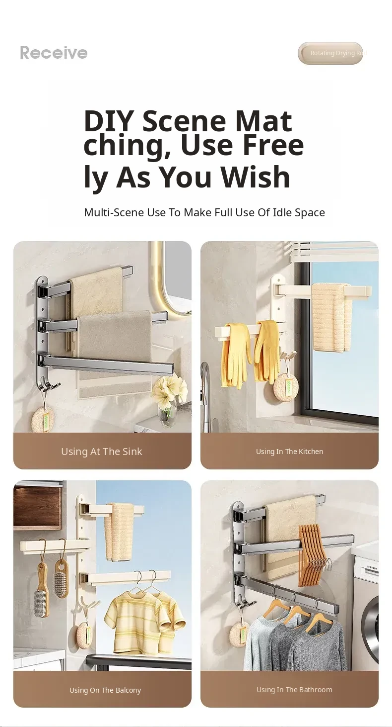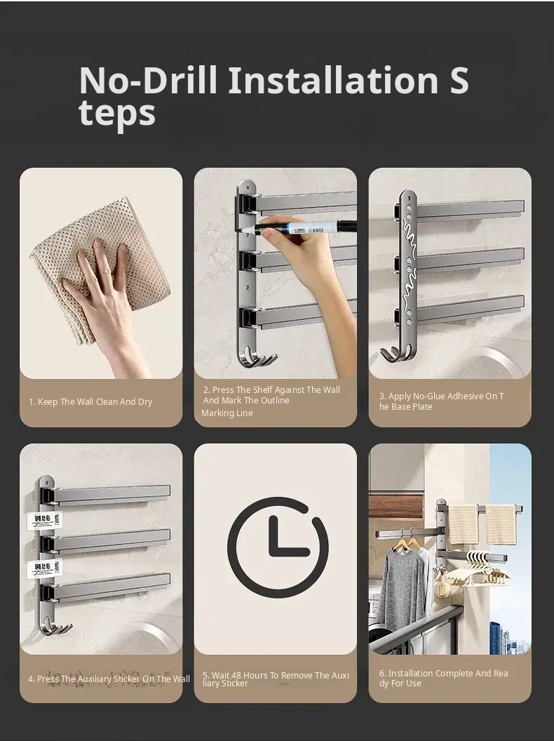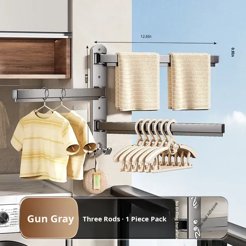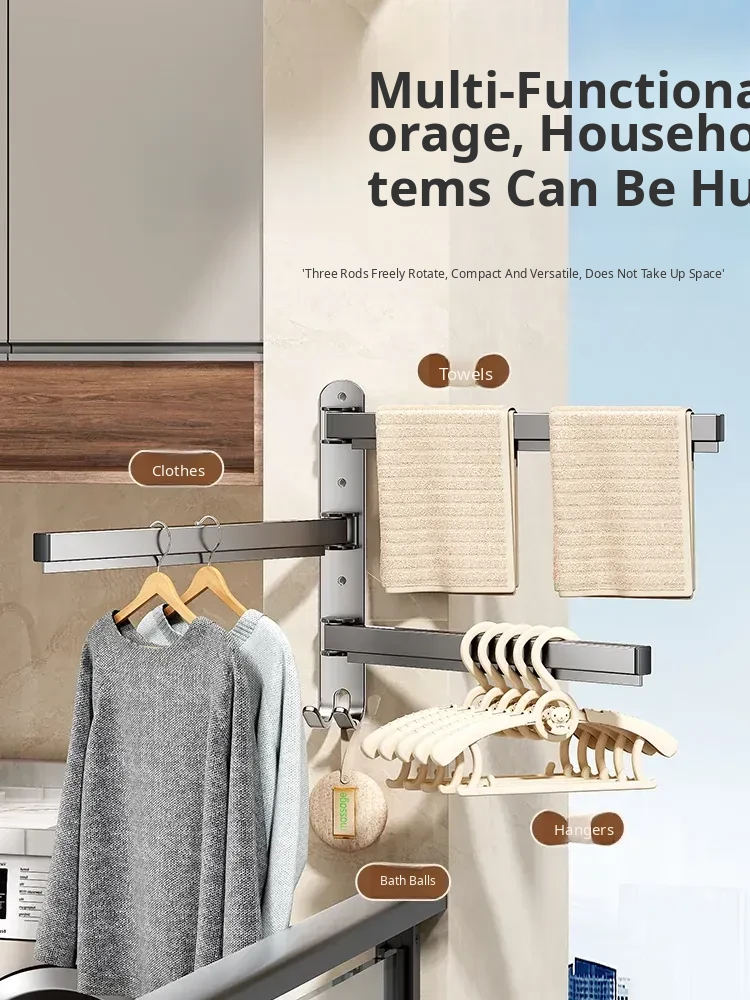 Multi-Functional No-Drill Wall-Mounted Clothes Hanger - Innovative Storage Solution for Home and Balcony with Multiple Clips for Effortless Drying and Organizing