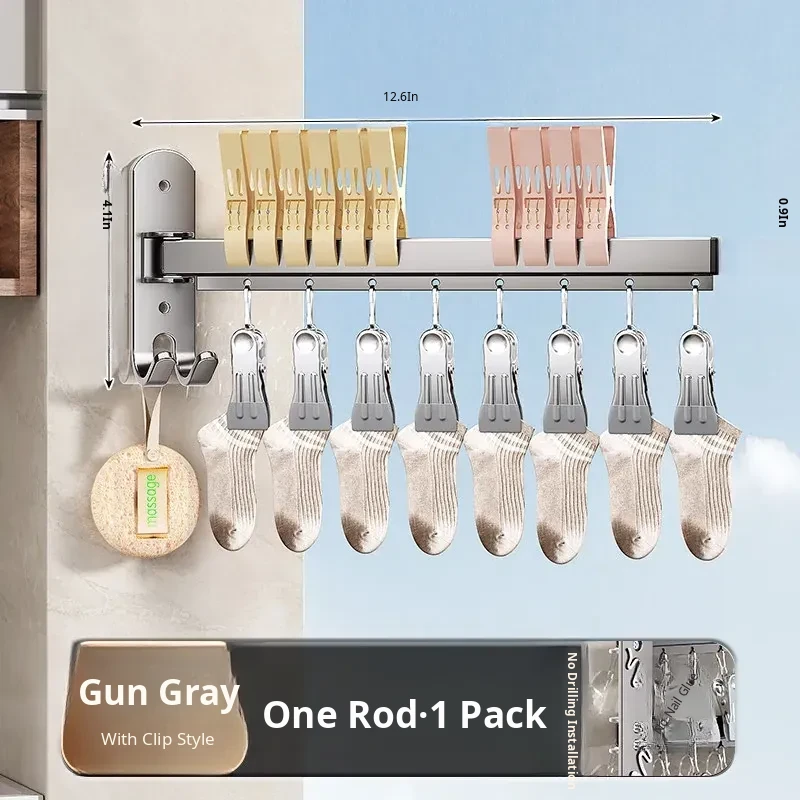 [Gun Gray with 8 Clips] Single Rod ❤ Sock Storage Rack-1 Pack