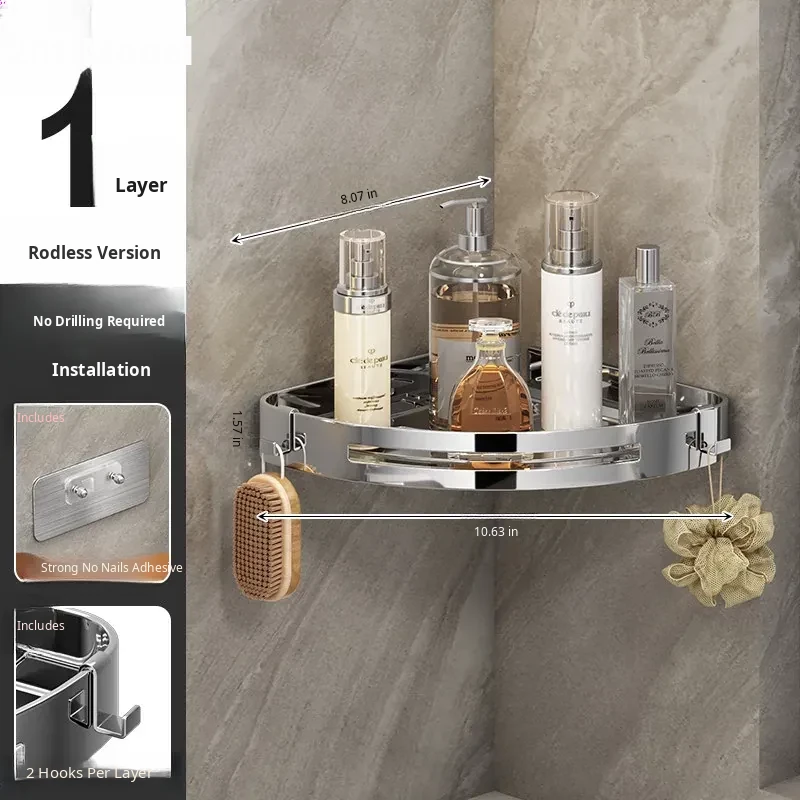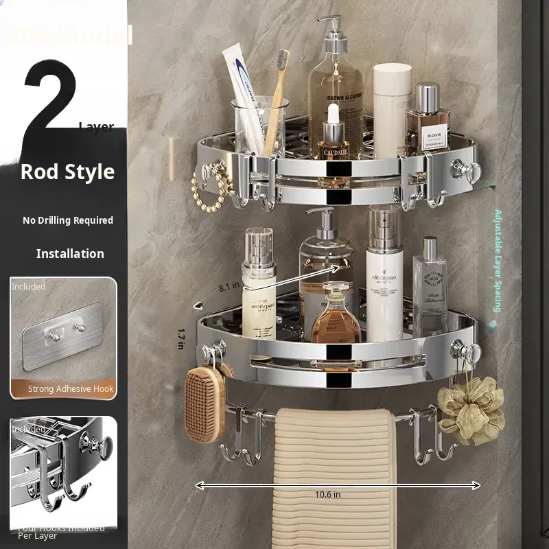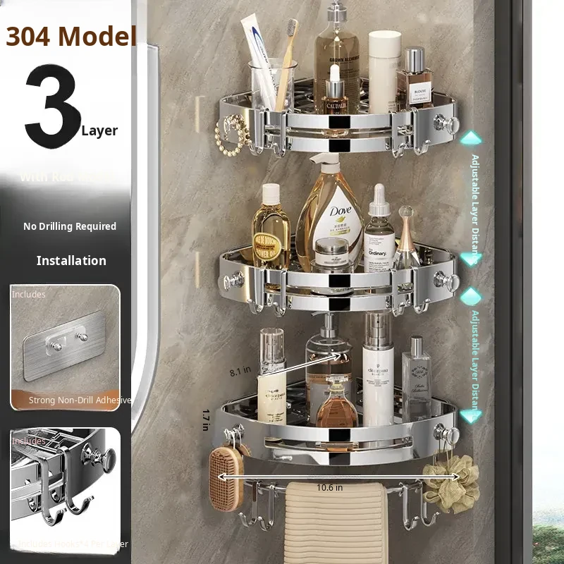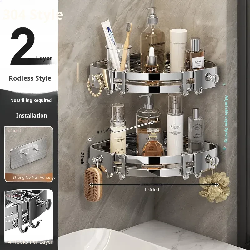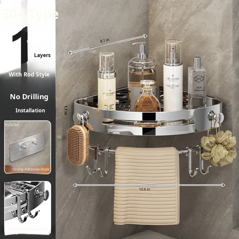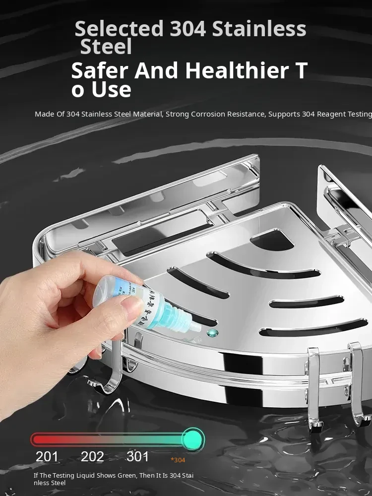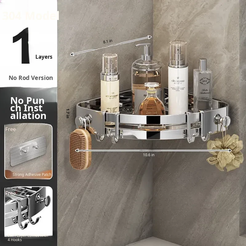 No-Drill Bathroom Corner Shelf - 304 Stainless Steel Wall-Mounted Storage Rack for Toilet and Washroom Organization