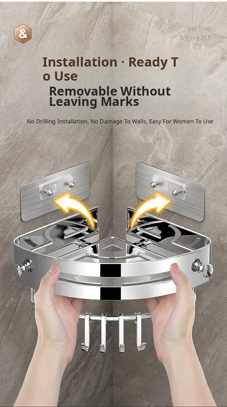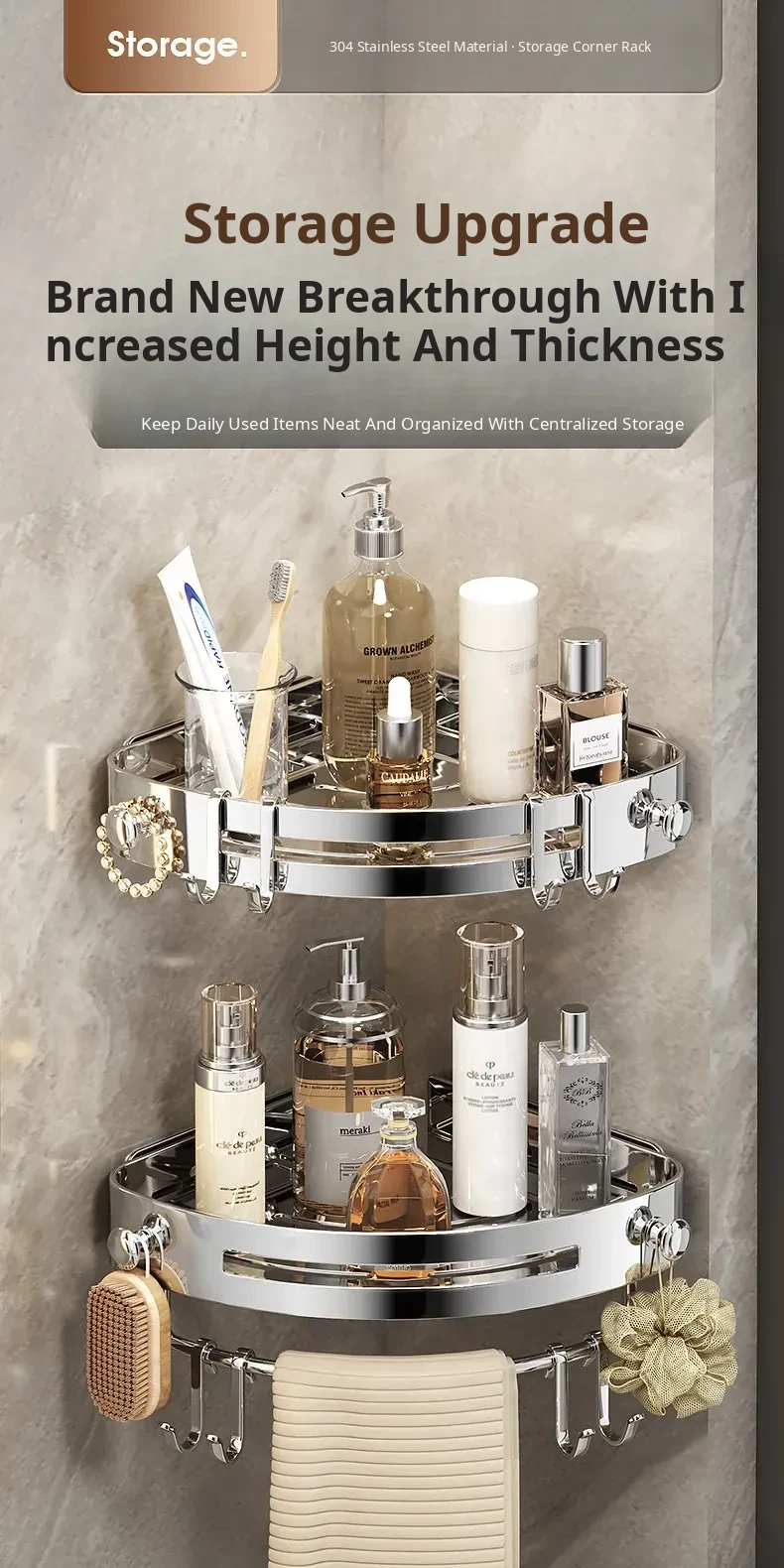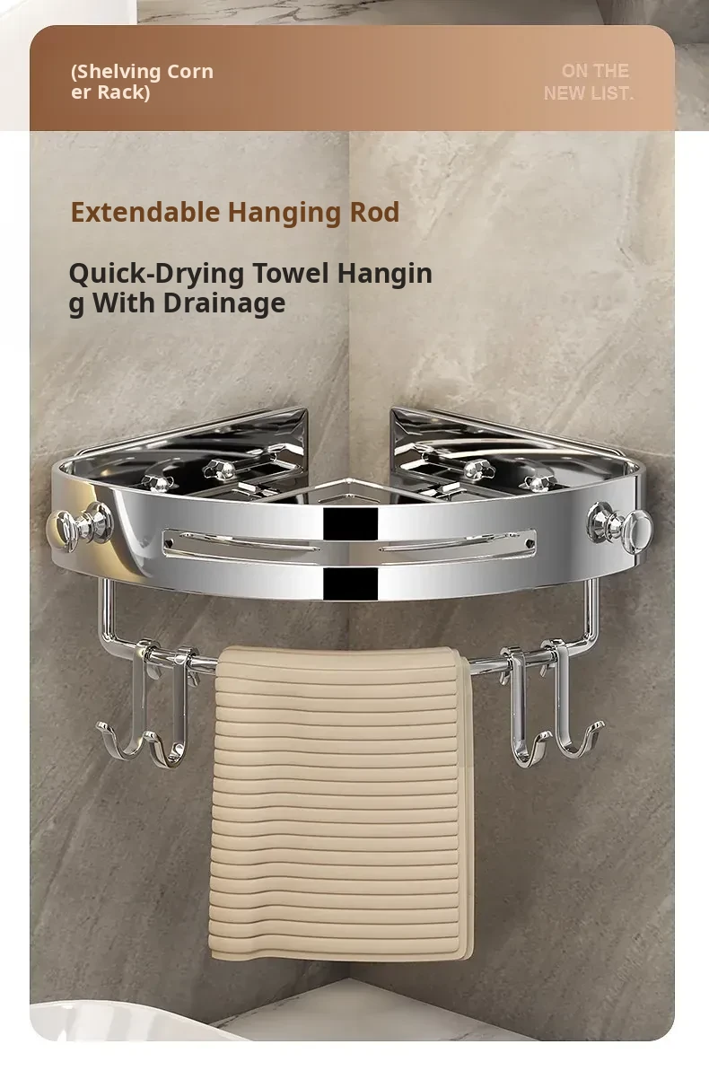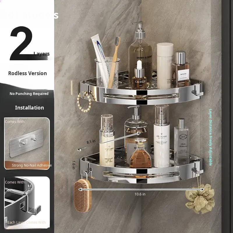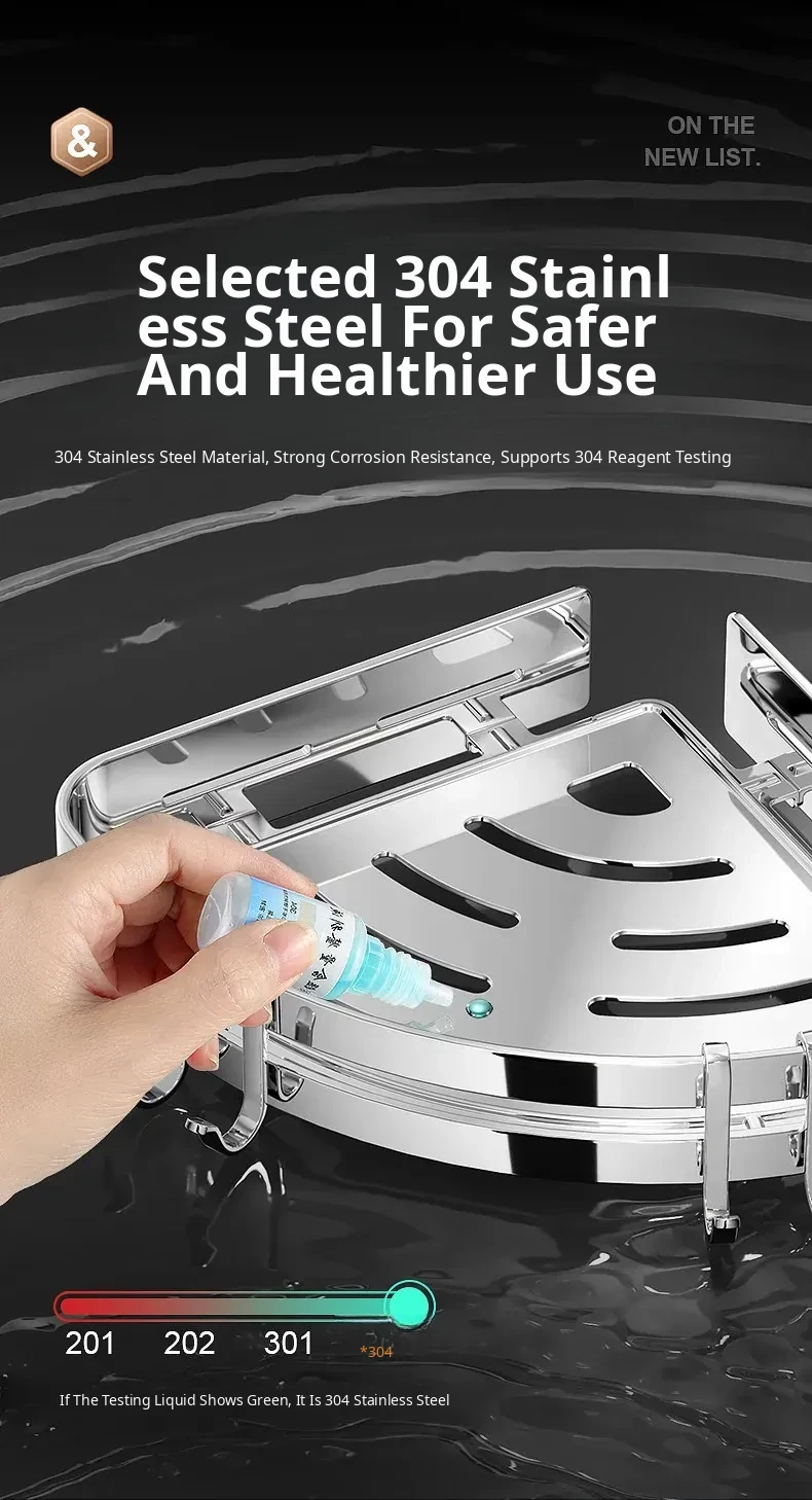 No-Drill Bathroom Corner Shelf - 304 Stainless Steel Wall-Mounted Storage Rack for Toilet and Washroom Organization