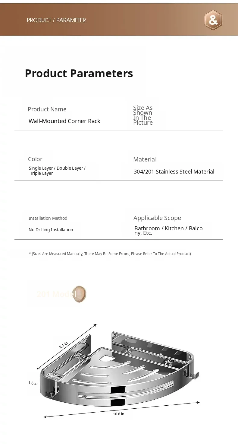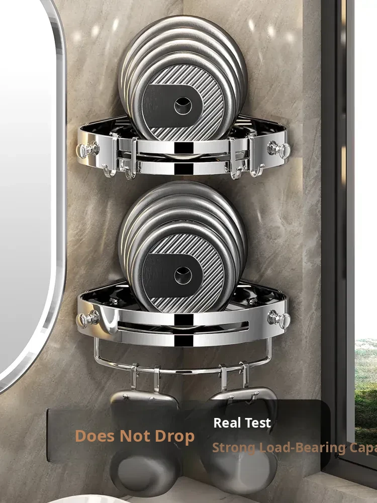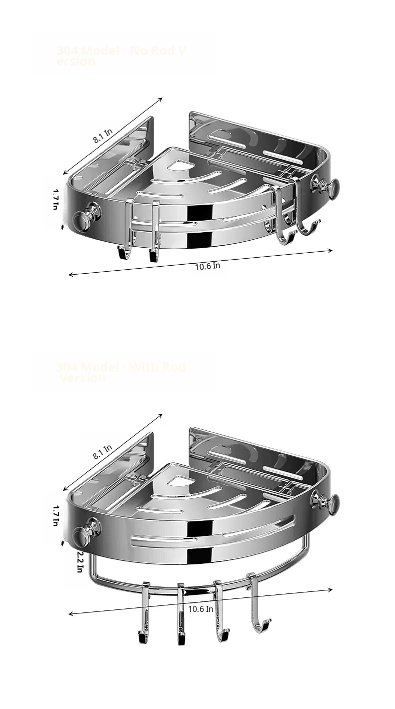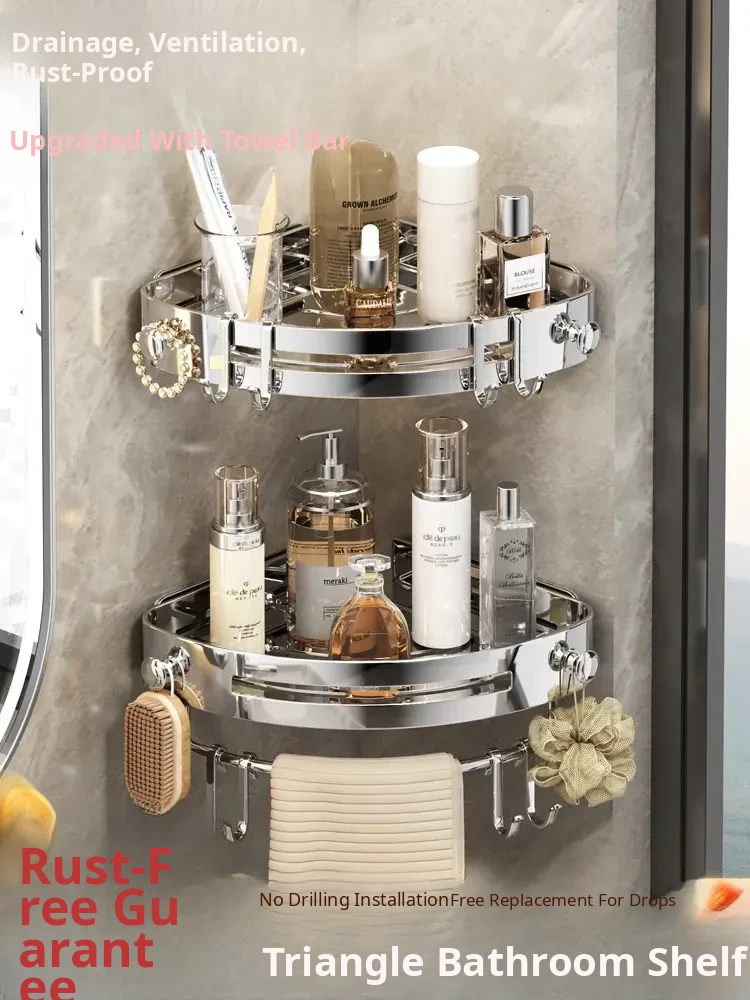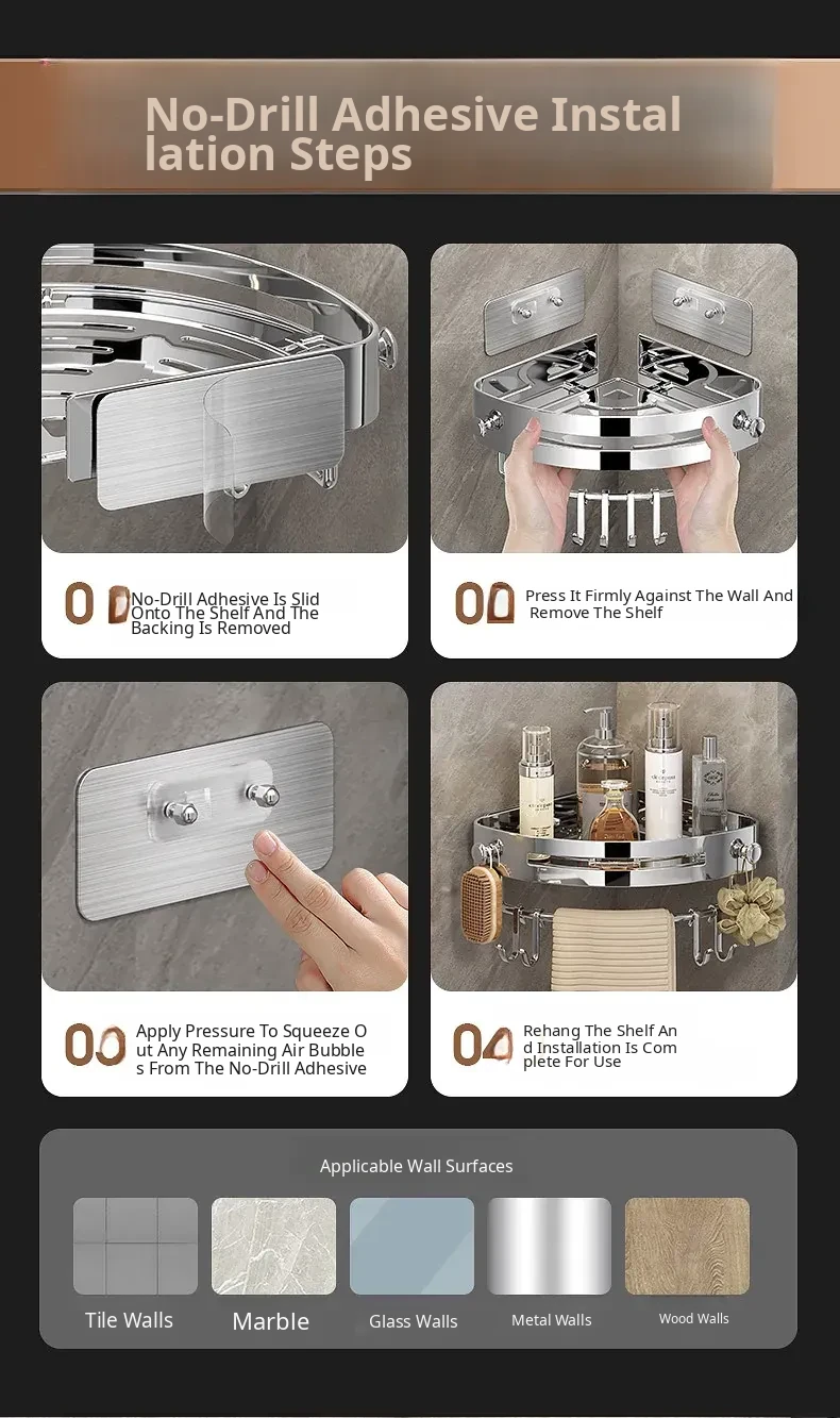 No-Drill Bathroom Corner Shelf - 304 Stainless Steel Wall-Mounted Storage Rack for Toilet and Washroom Organization