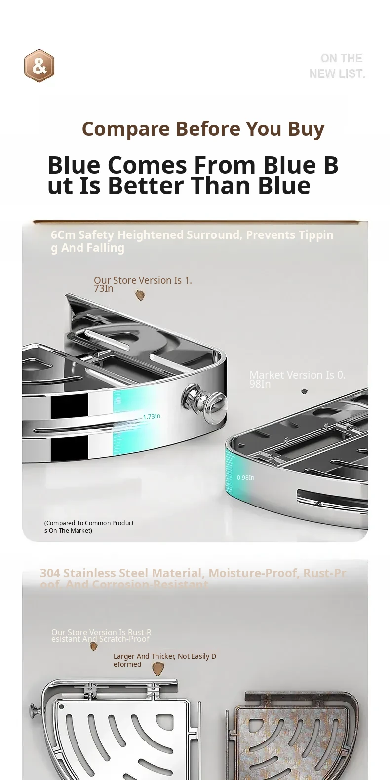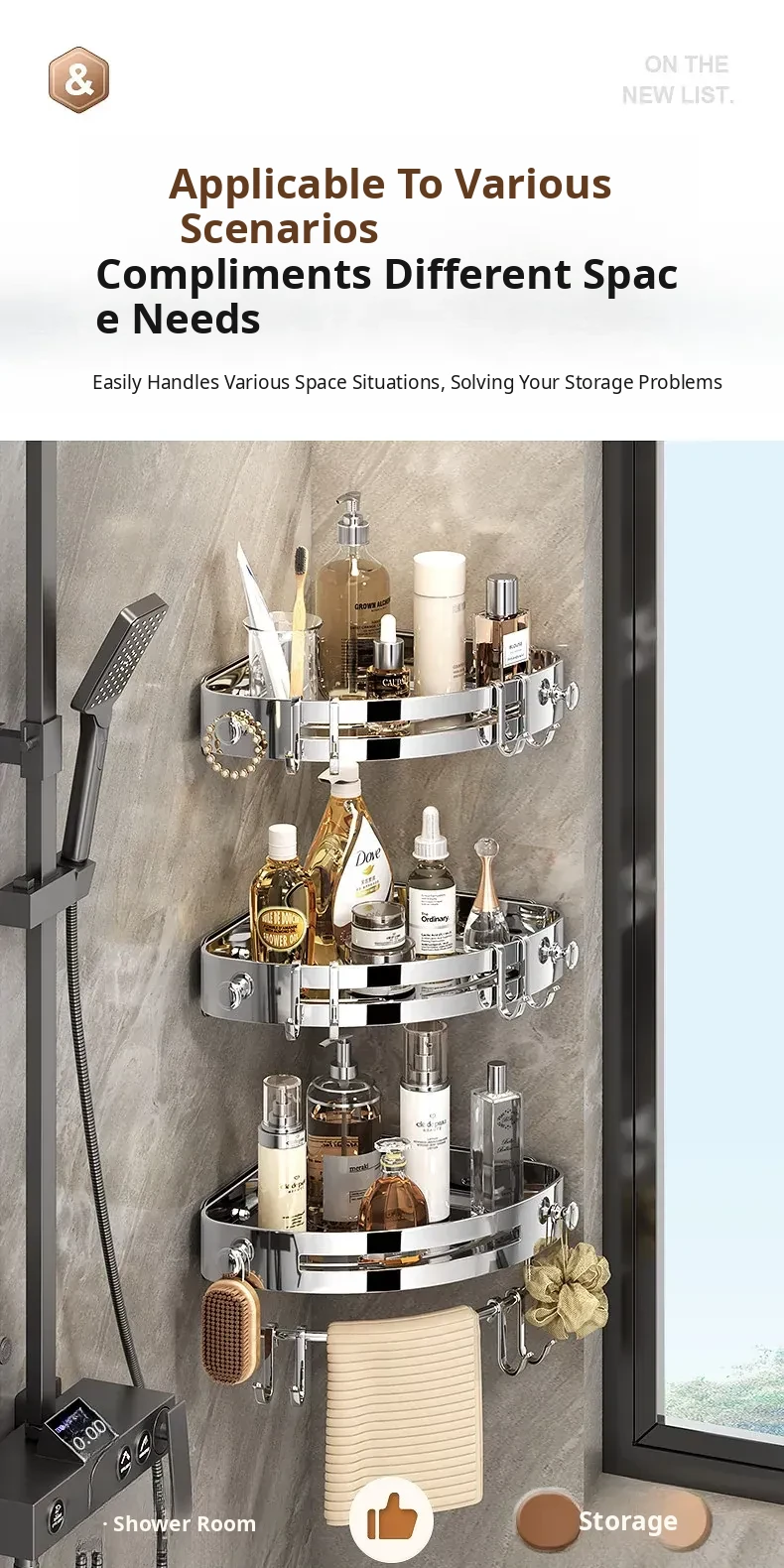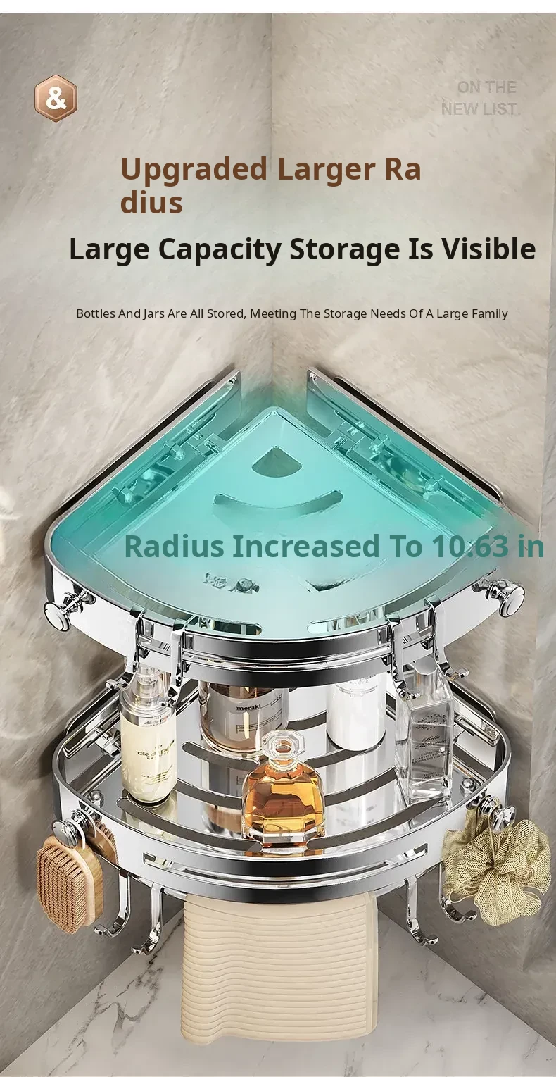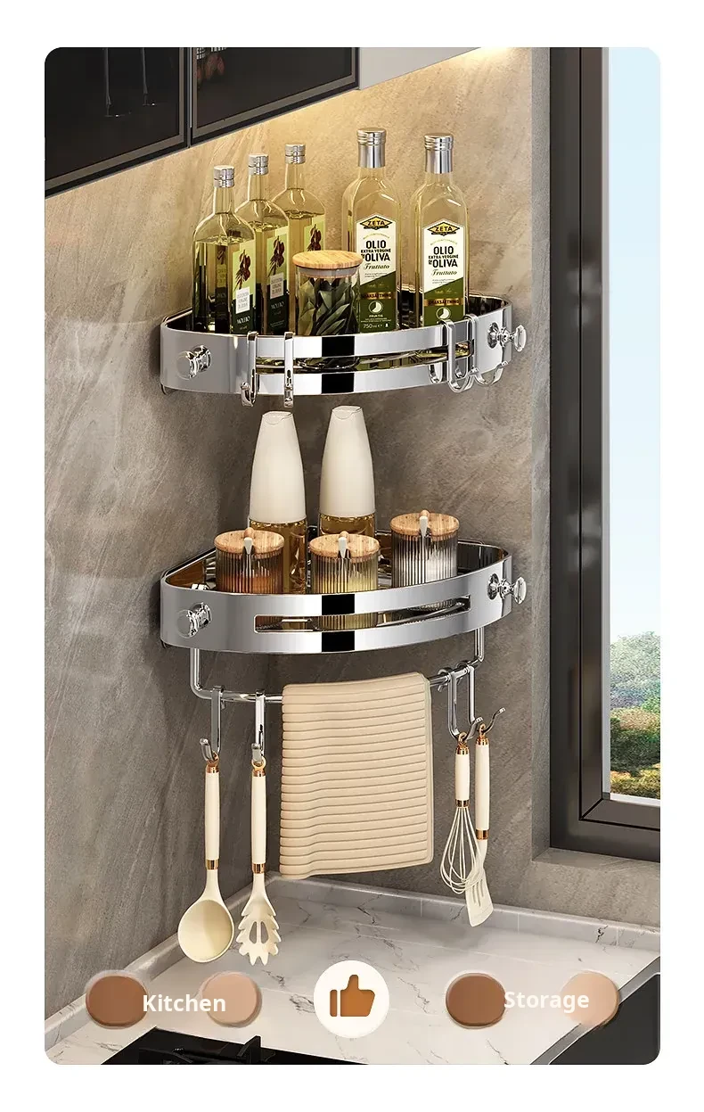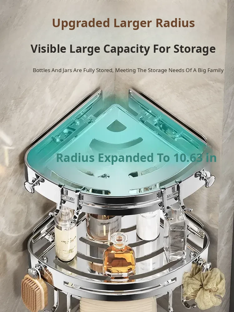 No-Drill Bathroom Corner Shelf - 304 Stainless Steel Wall-Mounted Storage Rack for Toilet and Washroom Organization