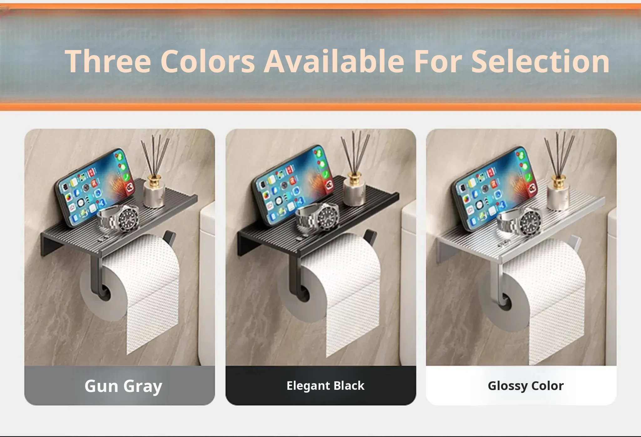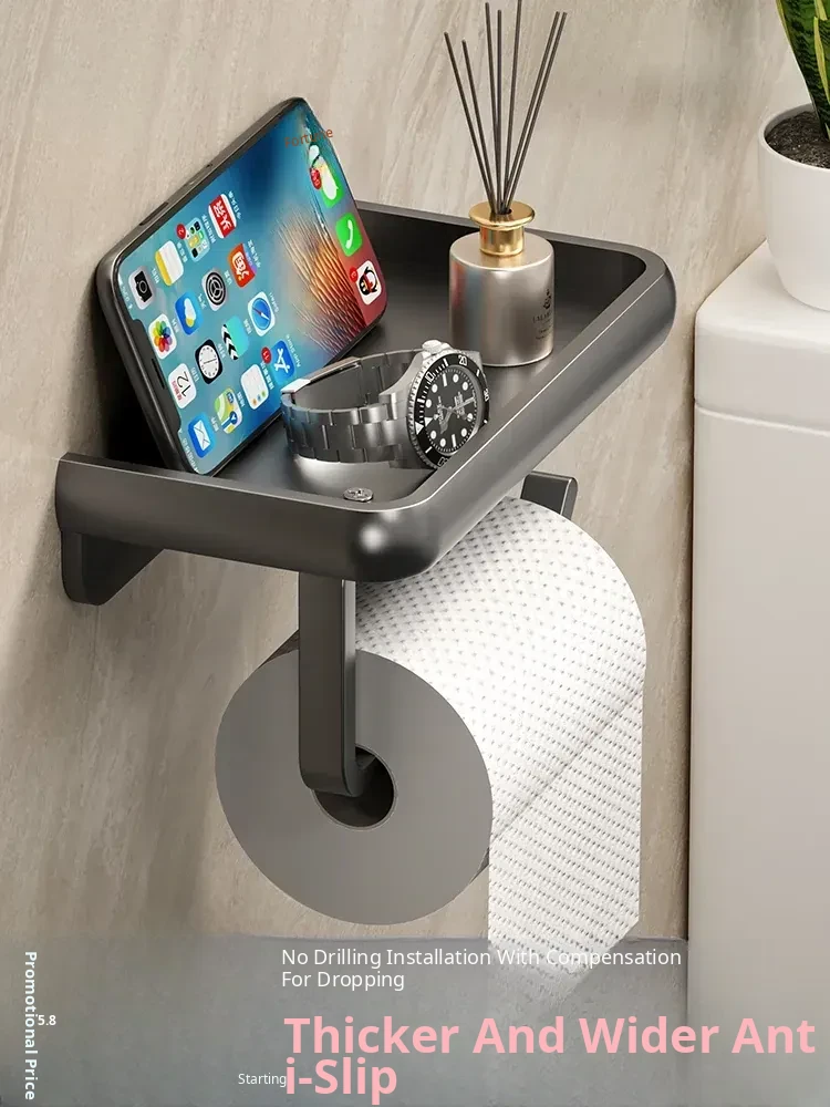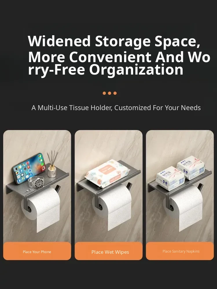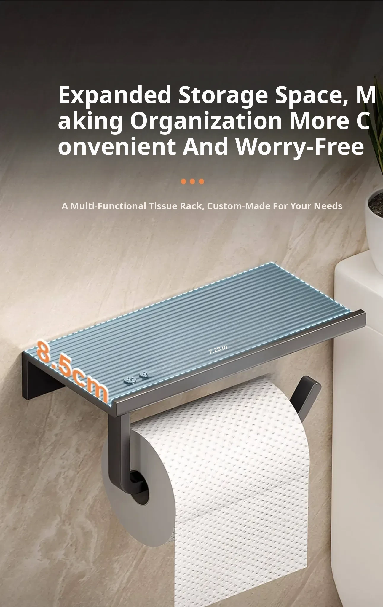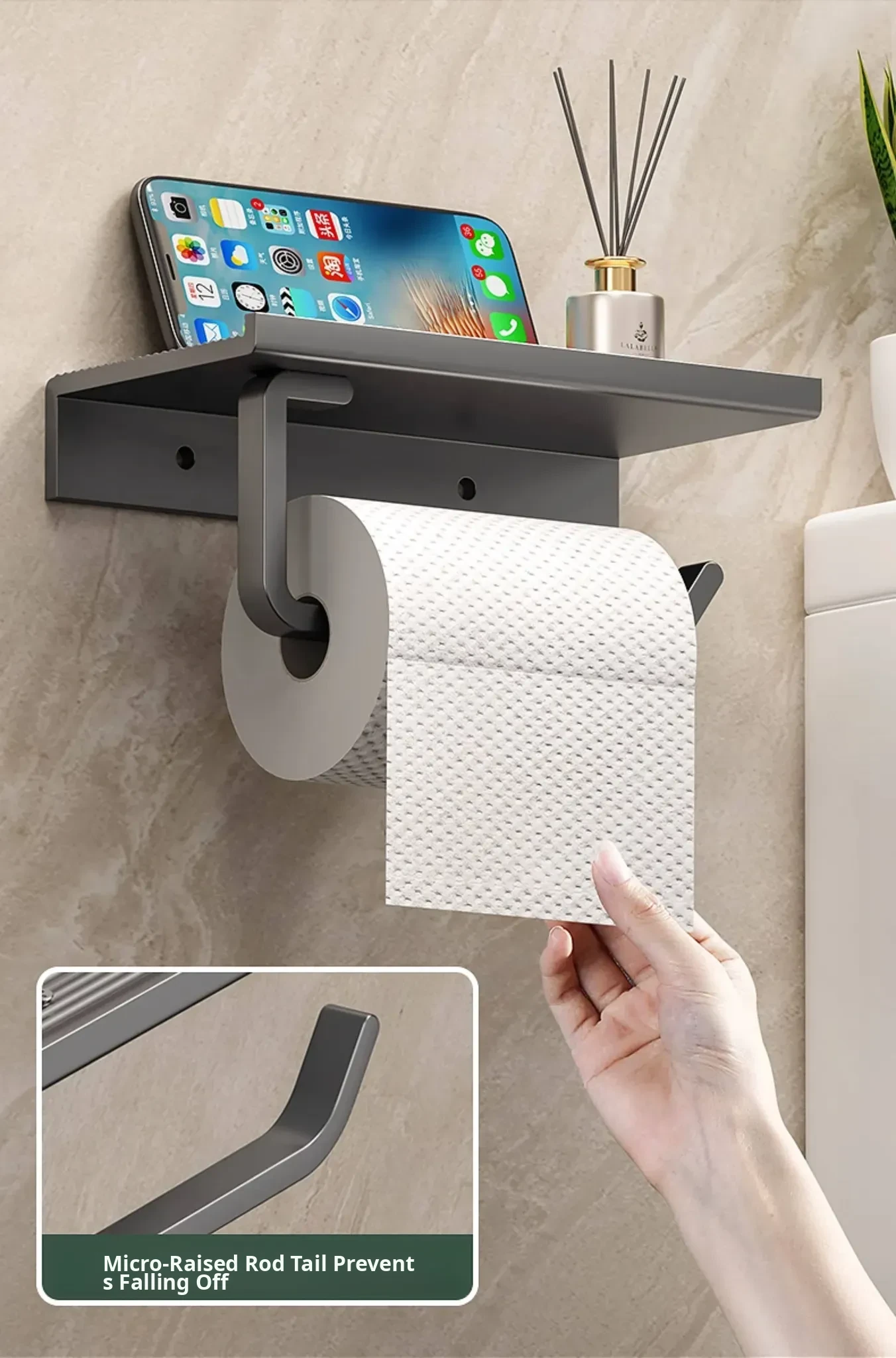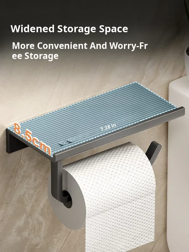 No-Drill Bathroom Phone Holder and Toilet Paper Storage Rack - Wall-Mounted Tissue Organizer for Convenient Access and Space-Saving Solutions