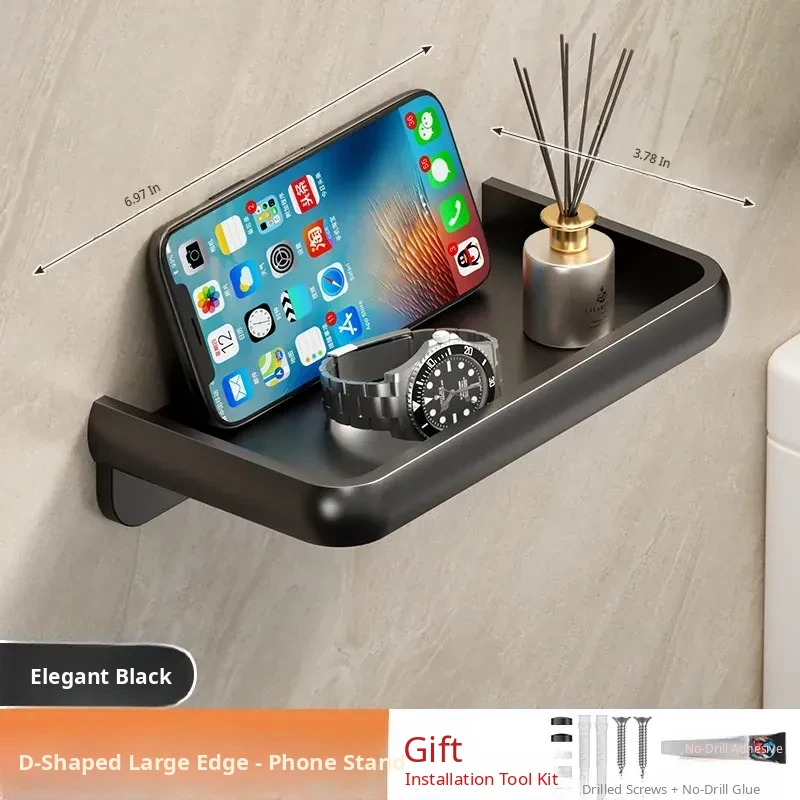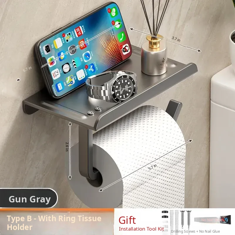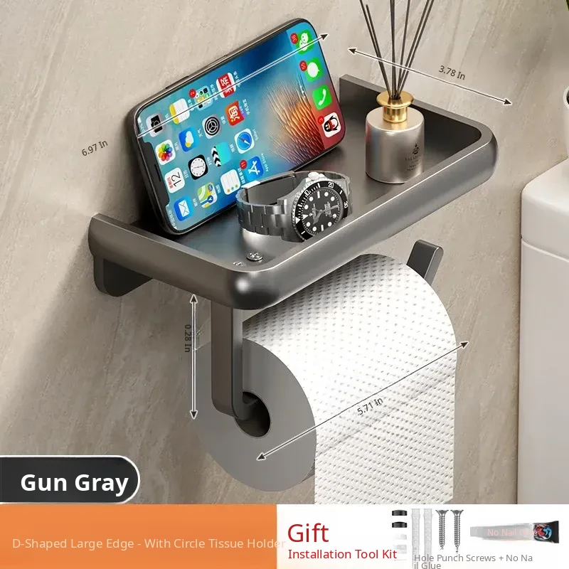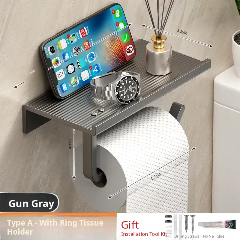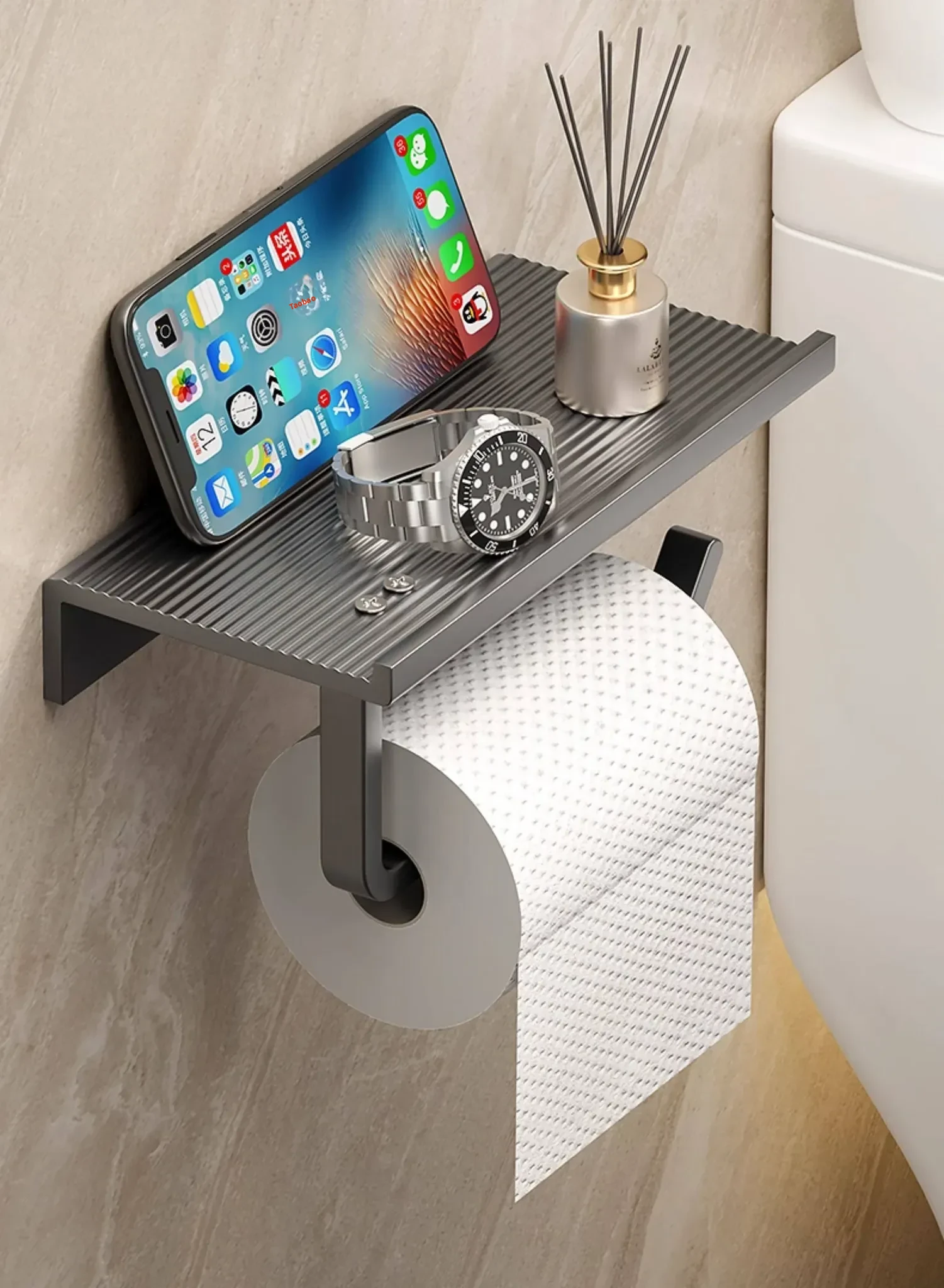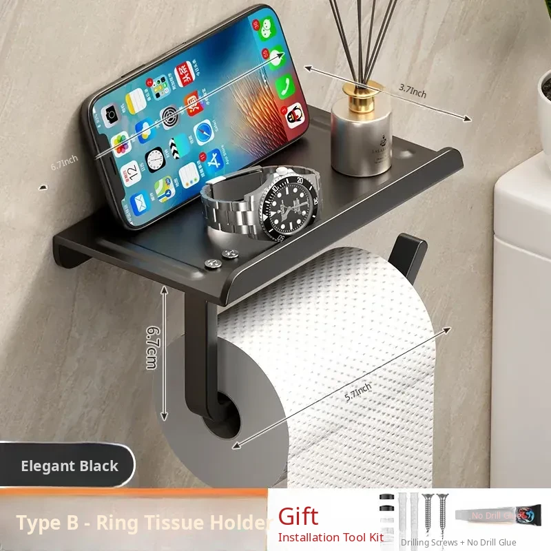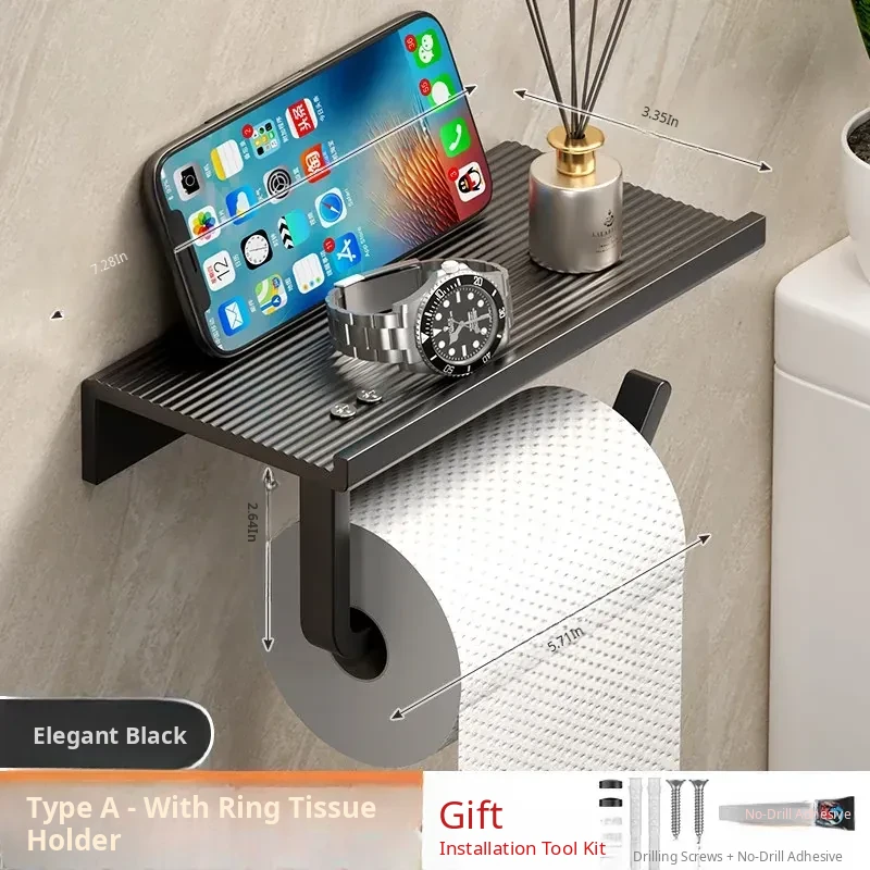 No-Drill Bathroom Phone Holder and Toilet Paper Storage Rack - Wall-Mounted Tissue Organizer for Convenient Access and Space-Saving Solutions