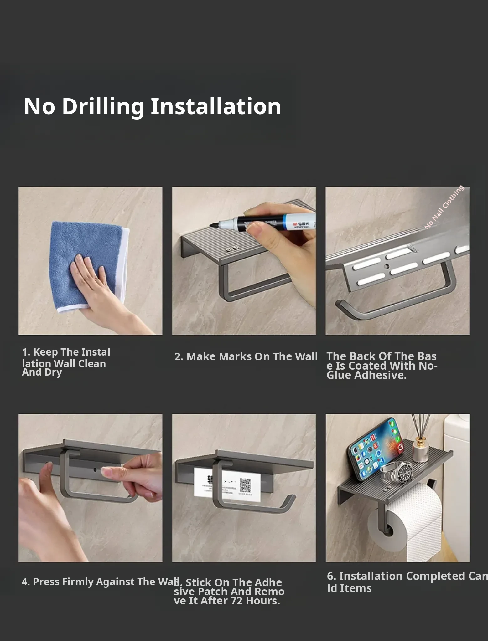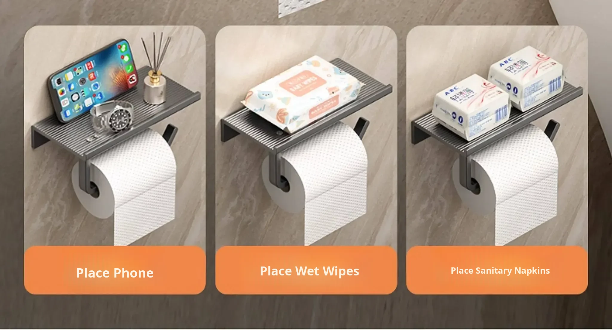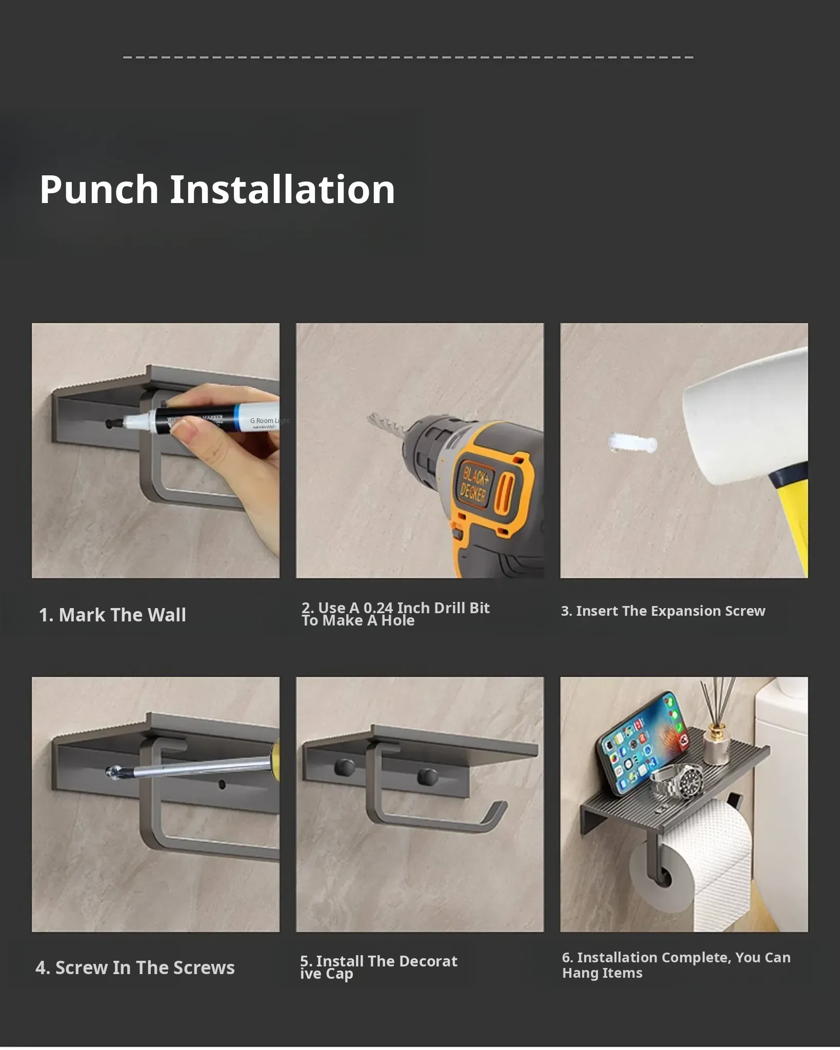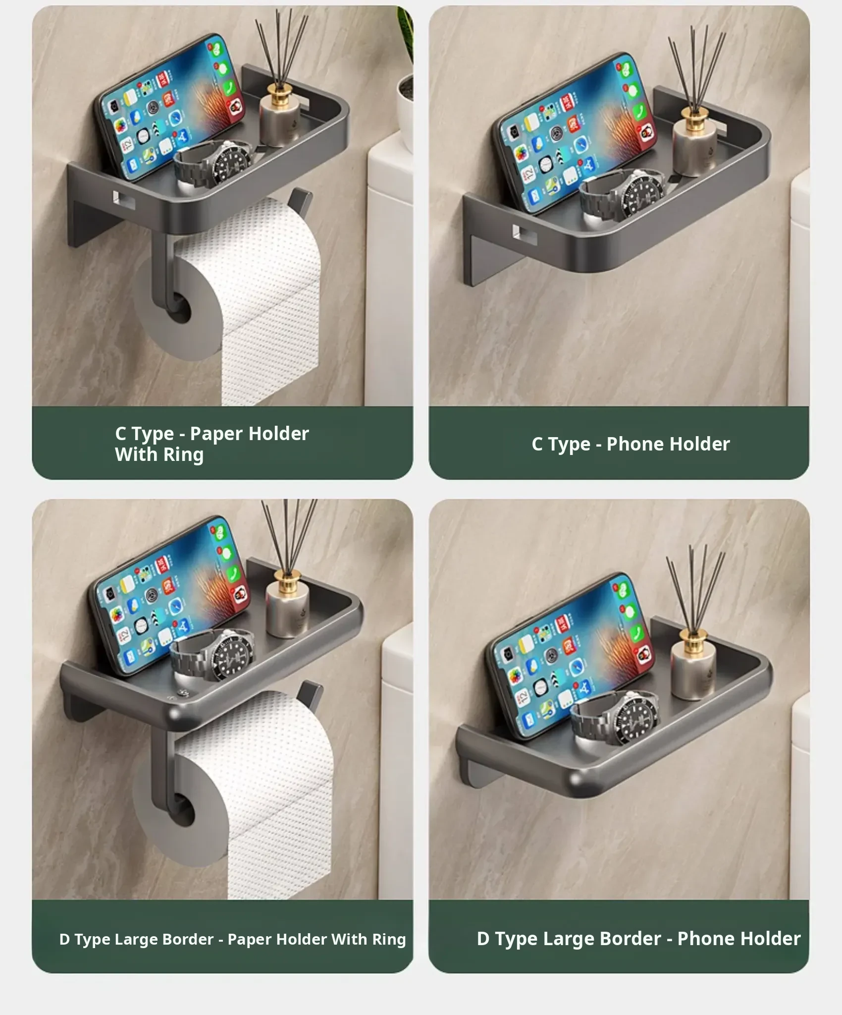 No-Drill Bathroom Phone Holder and Toilet Paper Storage Rack - Wall-Mounted Tissue Organizer for Convenient Access and Space-Saving Solutions