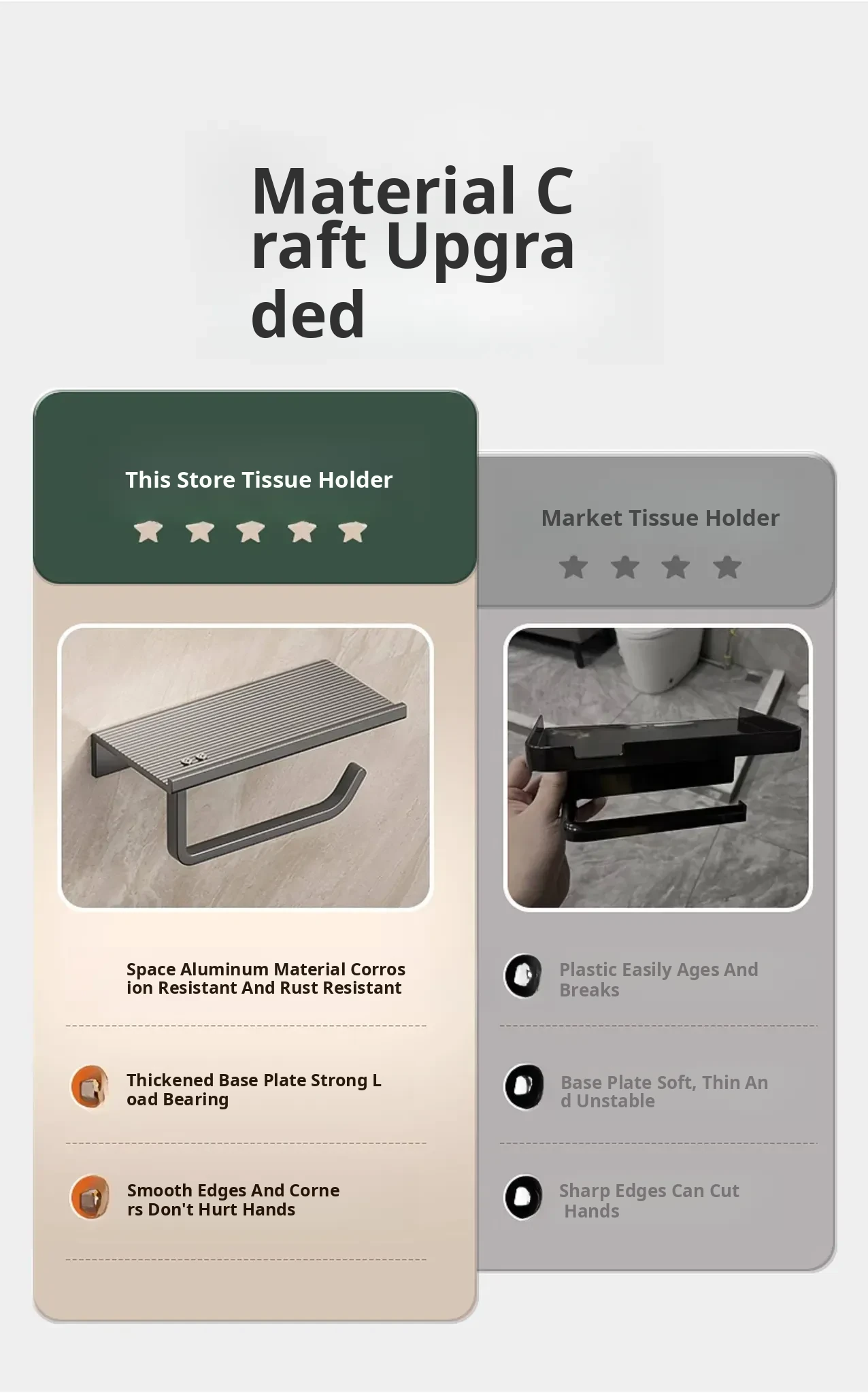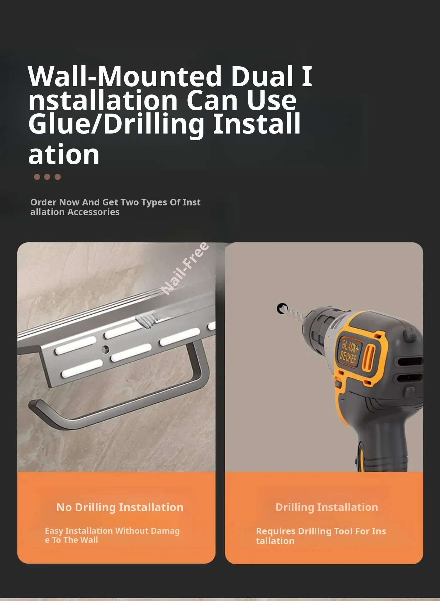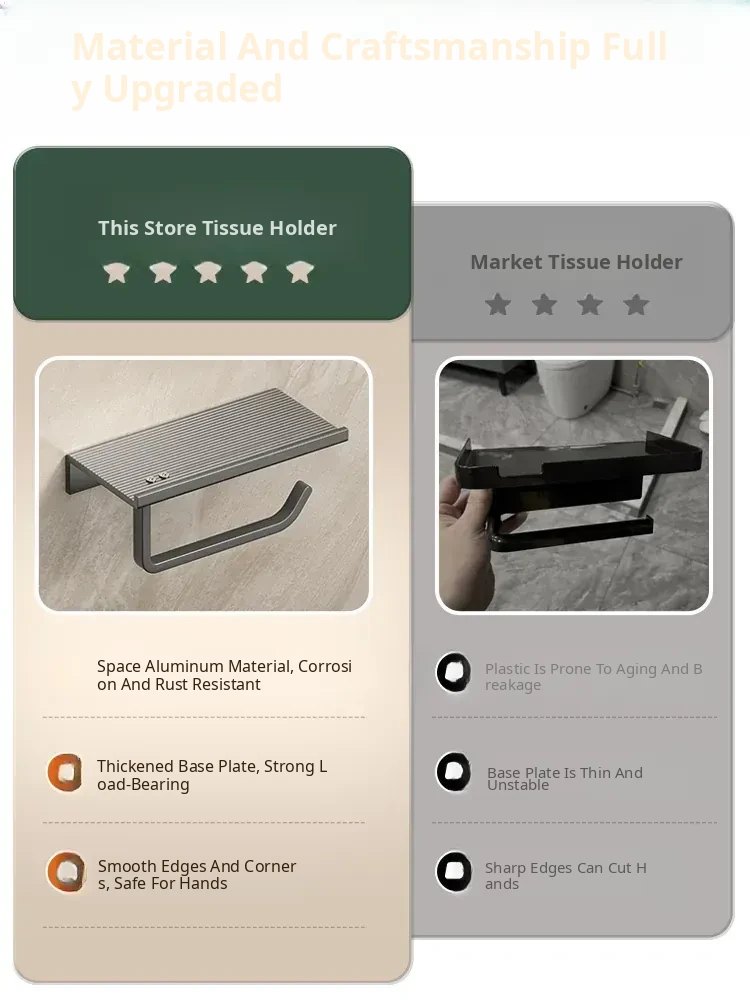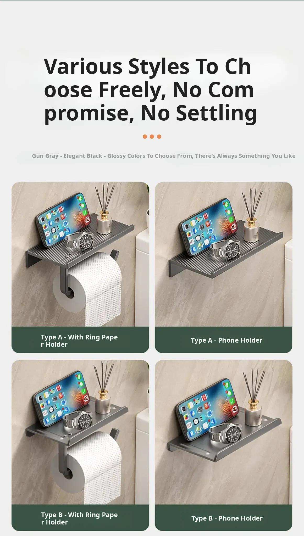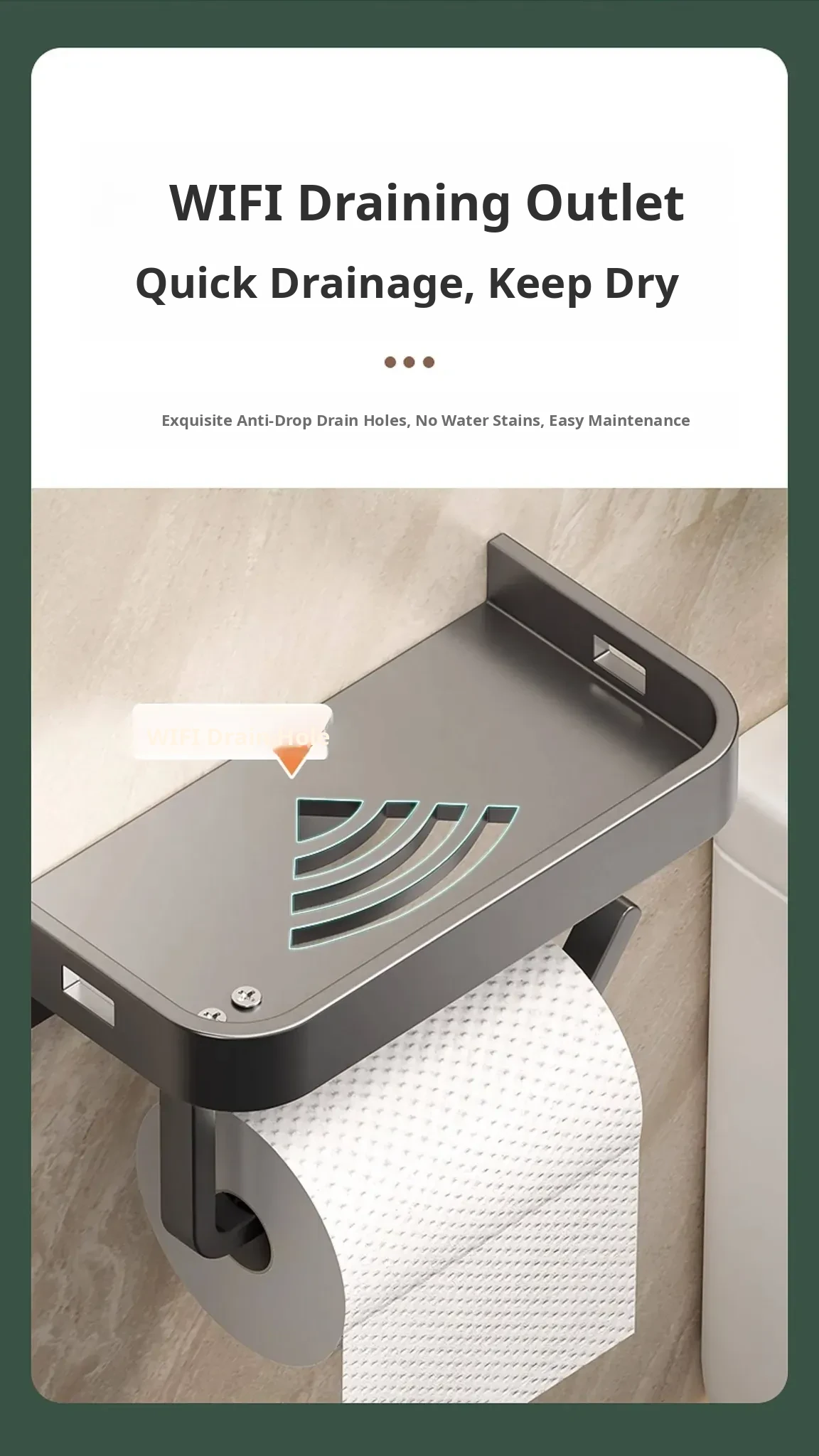 No-Drill Bathroom Phone Holder and Toilet Paper Storage Rack - Wall-Mounted Tissue Organizer for Convenient Access and Space-Saving Solutions