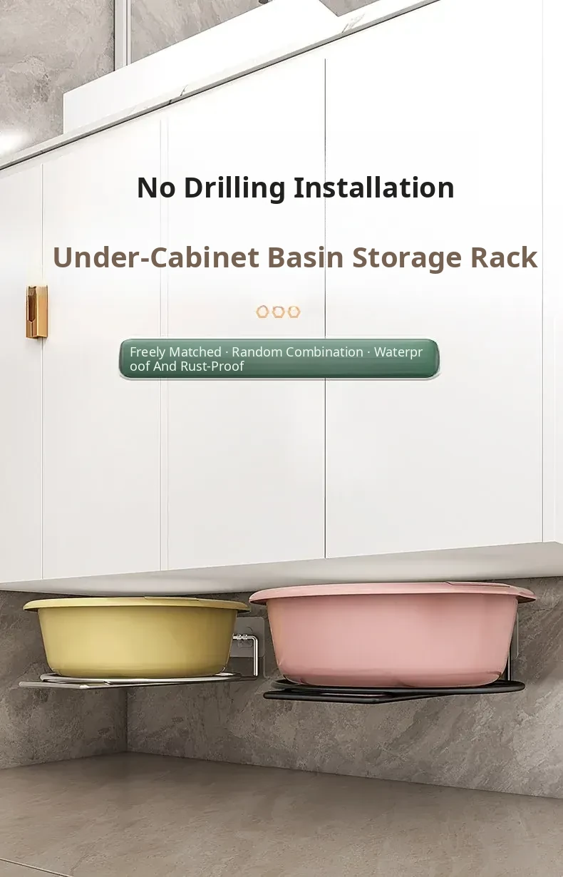 No-Drill Bathroom Sink Storage Rack - Convenient Hanging Hooks for Your Vanity - Ideal Organizer for Washbasin Accessories - Maximize Space with This Essential Bathroom Cabinet Solution!