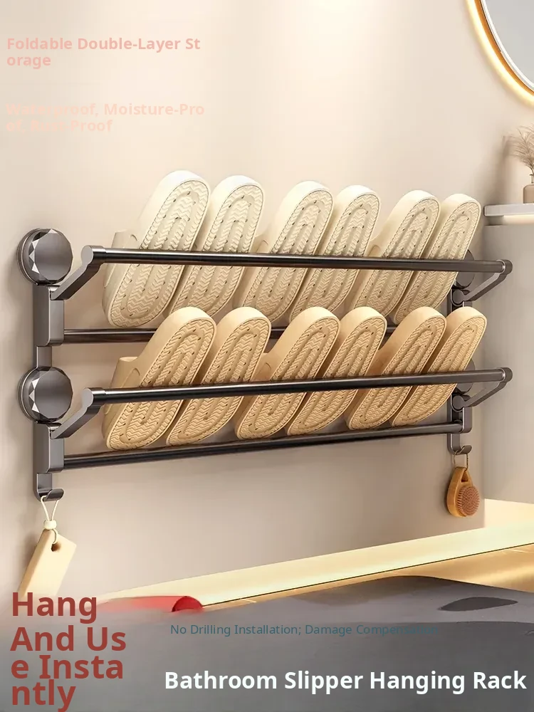 No-Drill Bathroom Slipper Rack – Wall-Mounted Shoe Organizer for Toilets, Draining Hooks for Clean and Convenient Shoe Storage in Your Bathroom!