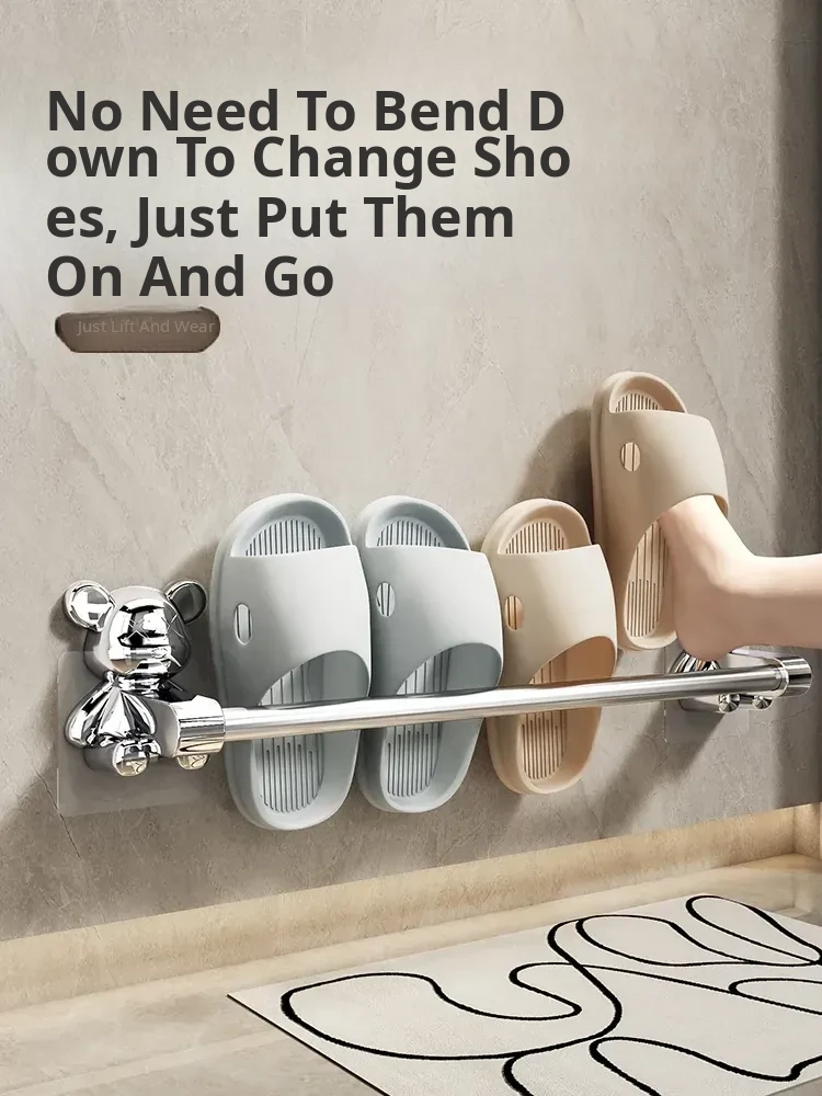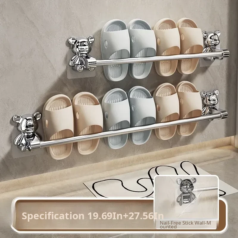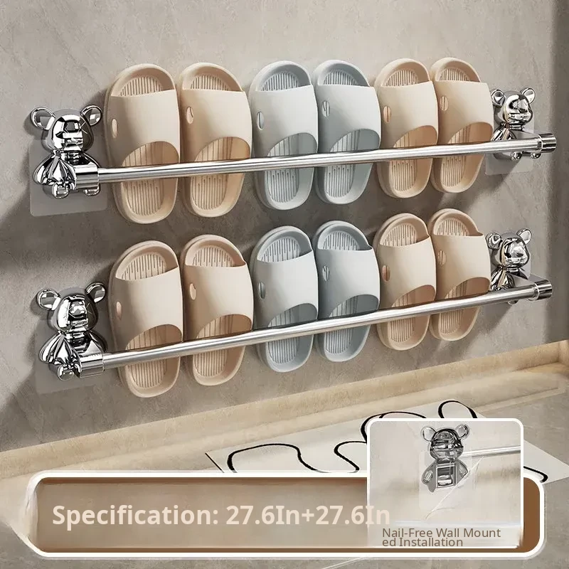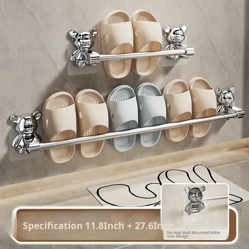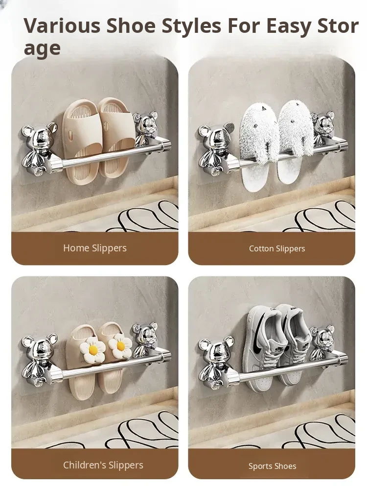 No-Drill Bathroom Slipper Rack - Wall-Mounted Shoe Storage Organizer for Wet Spaces - Perfect for Toilets and Showers, Draining Design Keeps Your Space Dry and Tidy!