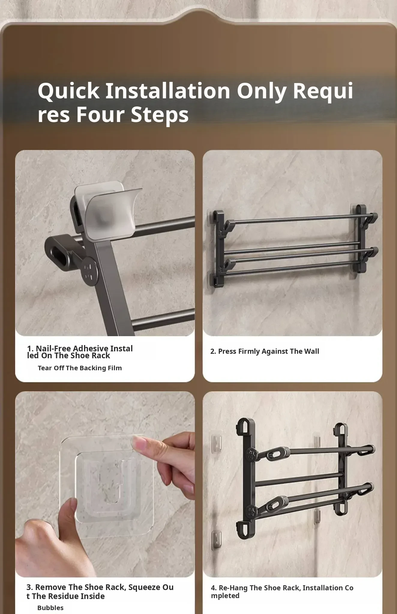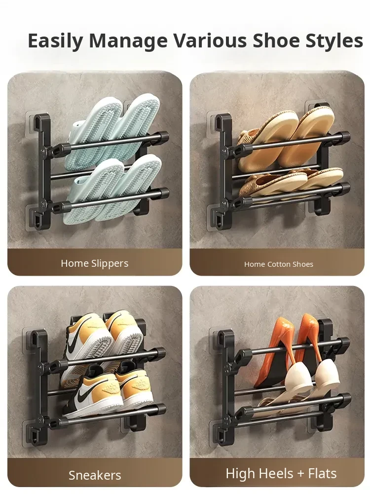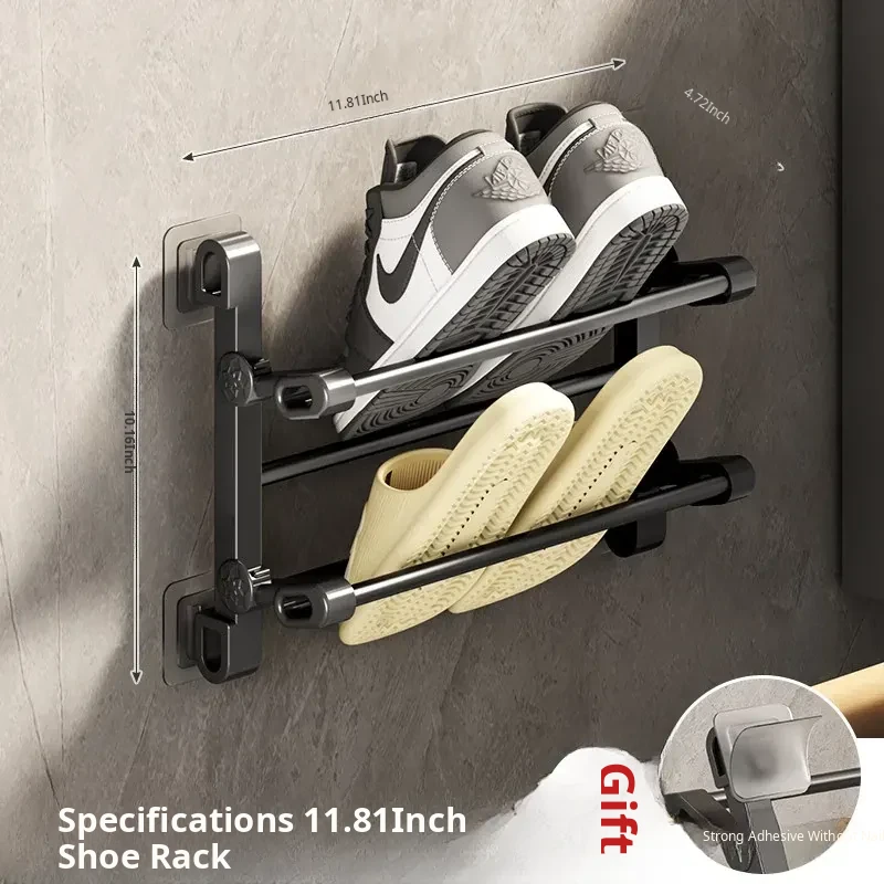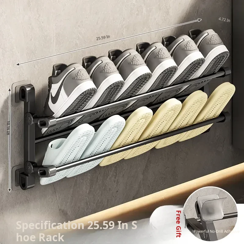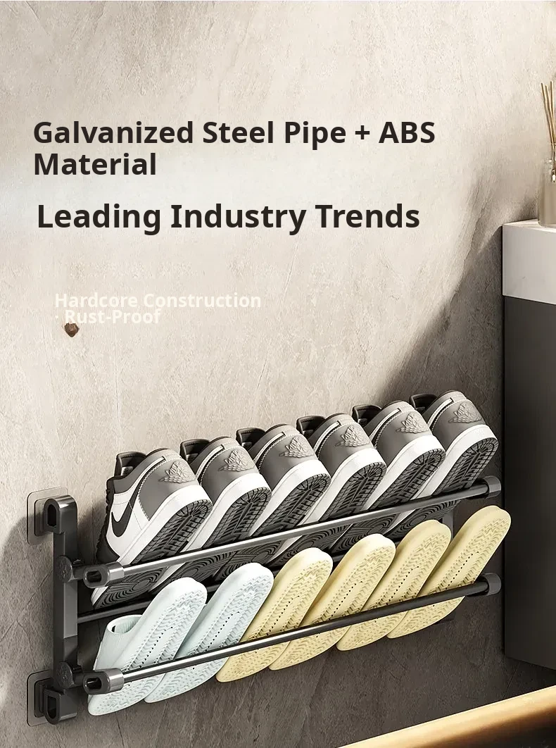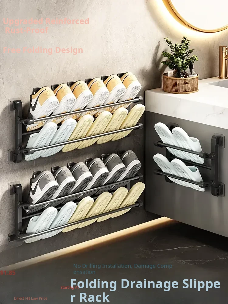 No-Drill Bathroom Slipper Rack - Wall-Mounted Storage Organizer for Toiletries and Shoes, Perfect for Space-Saving in Your Bathroom with Drainage Design