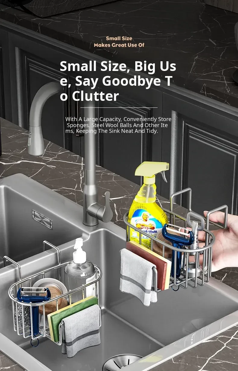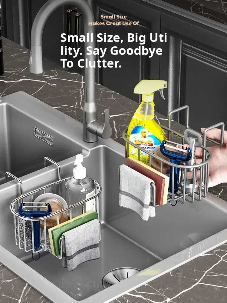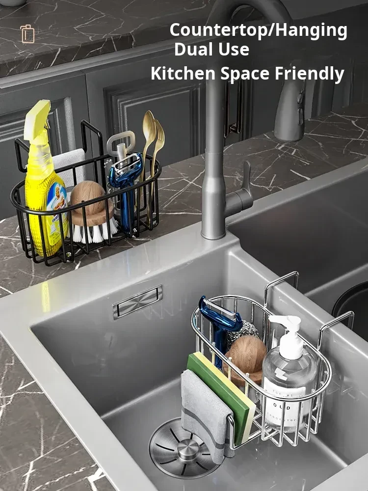 No-Drill Kitchen Sponge Holder - Space-Saving Sink Organizer for Dishcloths and Sponges - Essential Drain Rack for Home Use - Convenient Hanging Storage Solution