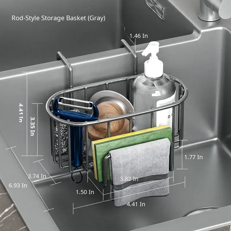 [Gun Ash] Sink Drain Basket + Hanging Rod