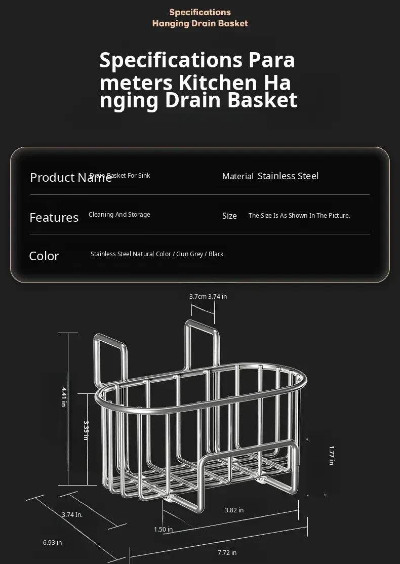 [Original Color] Sink Drain Basket + Hanging Rod