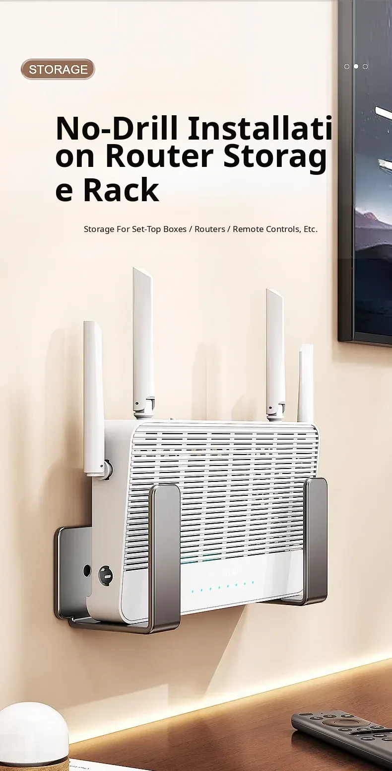 No-Drill Router Wall Mount Shelf - Space-Saving WiFi Organizer for Home, Perfect for Cable Management and Set-Top Box Storage!