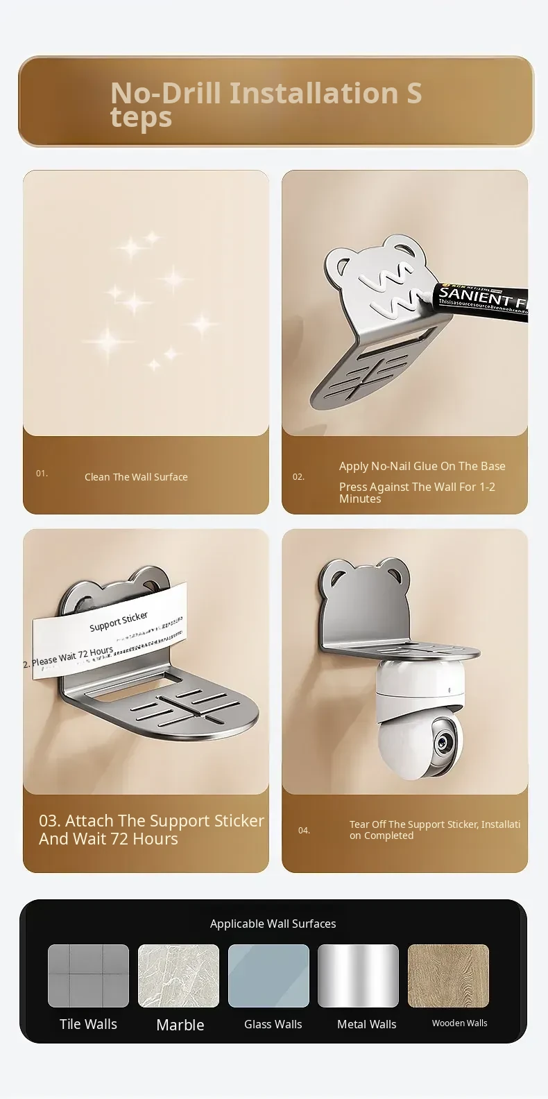 No-Drill Wall Mount Bracket for Cameras and Set-Top Boxes – Versatile Indoor/Outdoor Router and Device Holder for Home Use