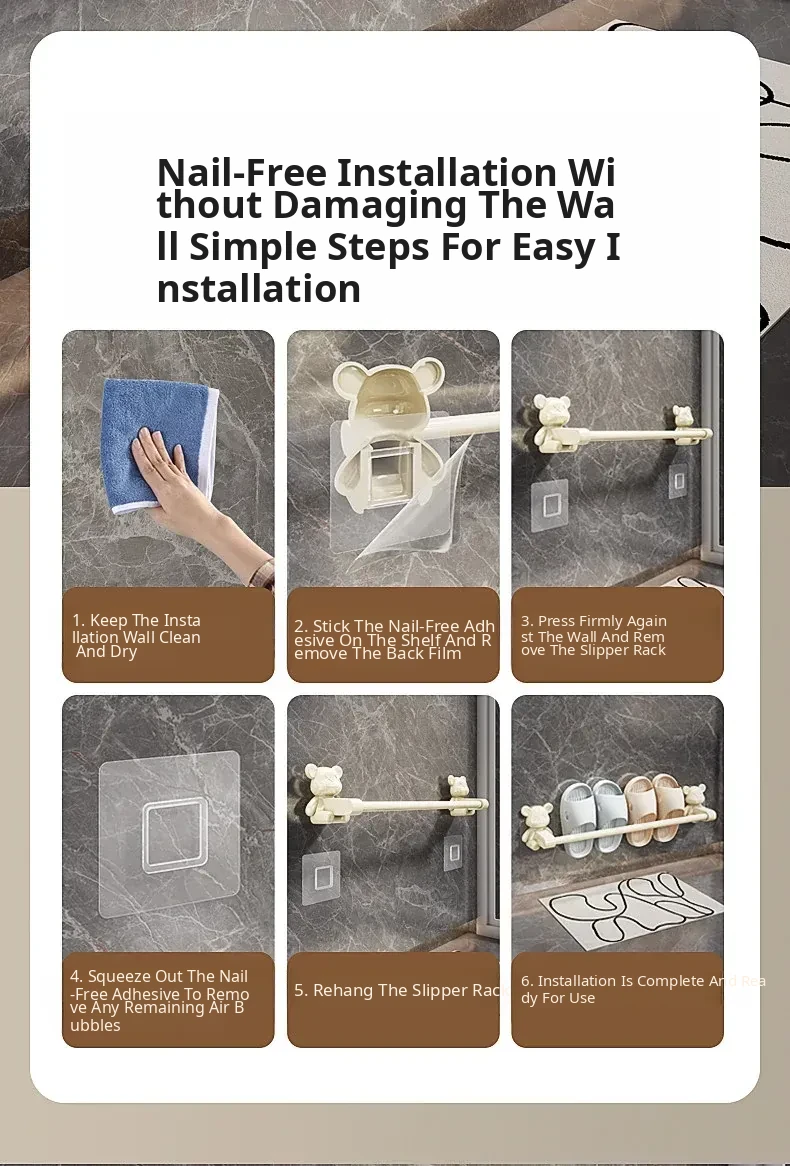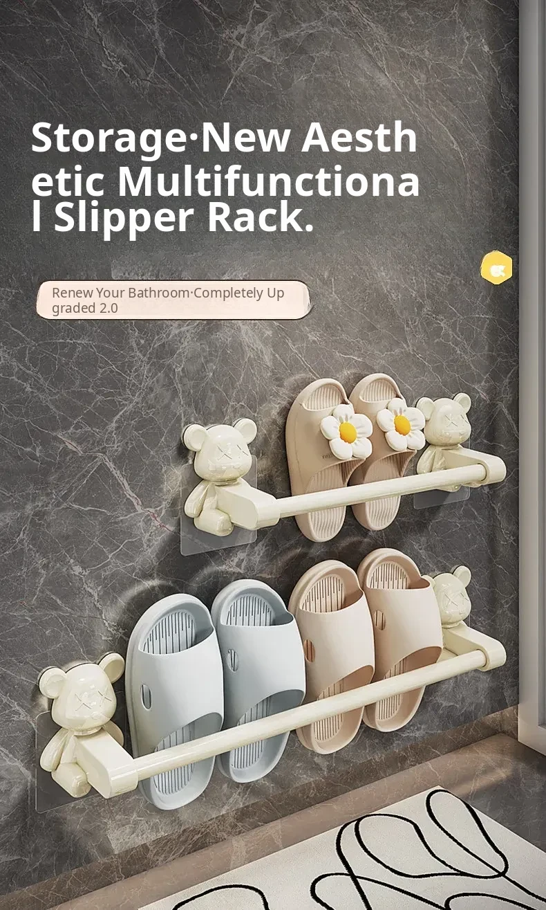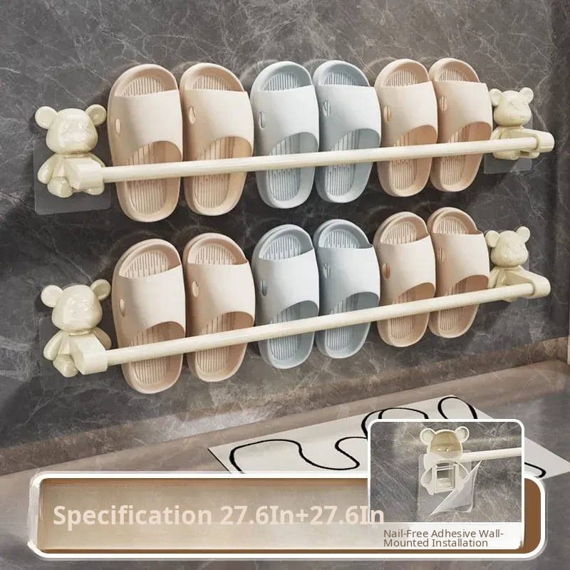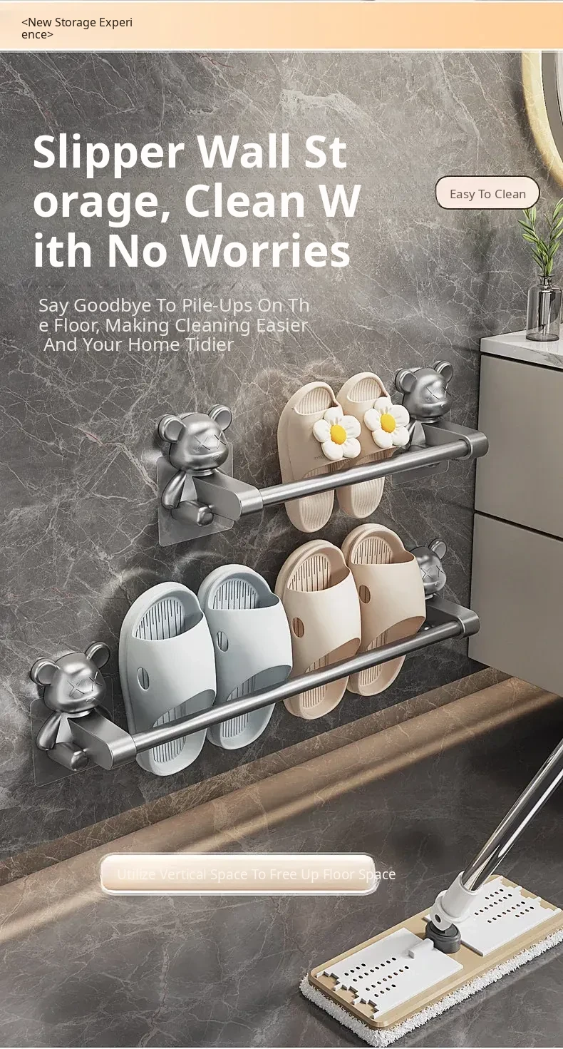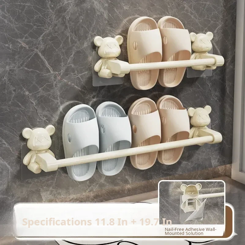 No-Drill Wall-Mounted Bathroom Slipper Rack - Space-Saving Shoe Organizer for Toilets, Draining Design for Wet Slippers, Perfect for a Tidy and Efficient Bathroom!